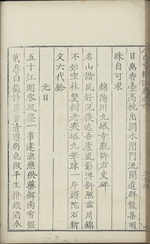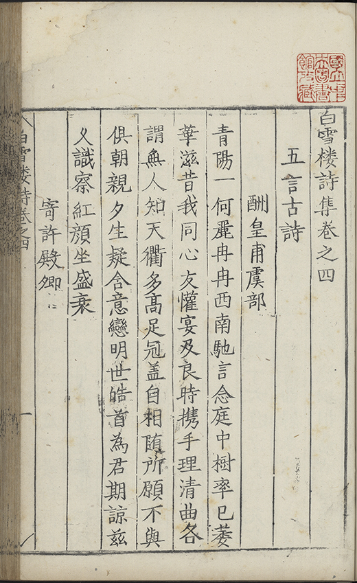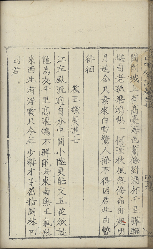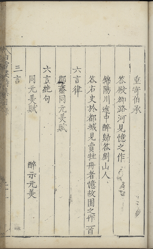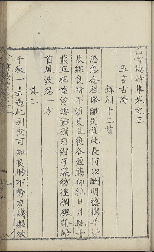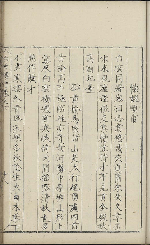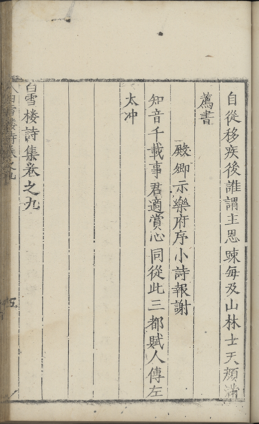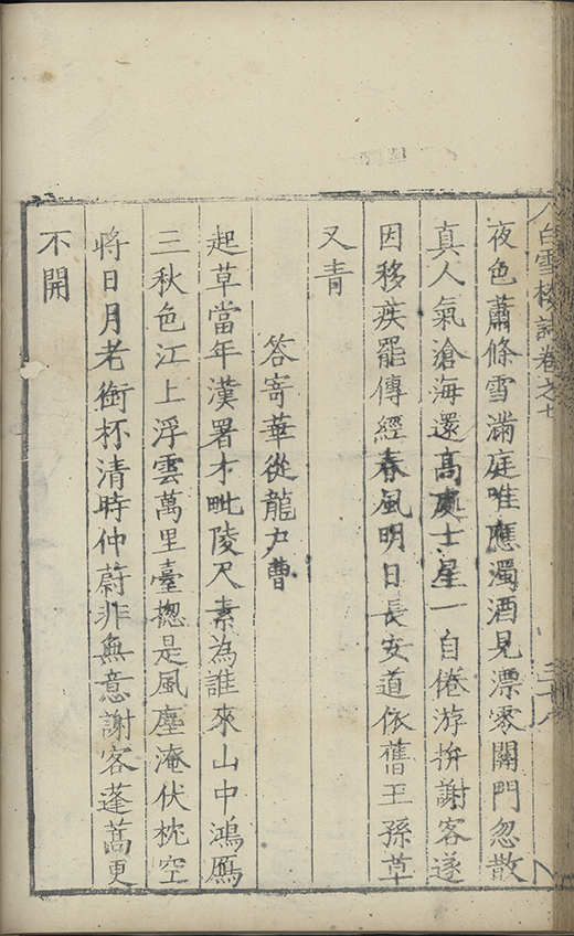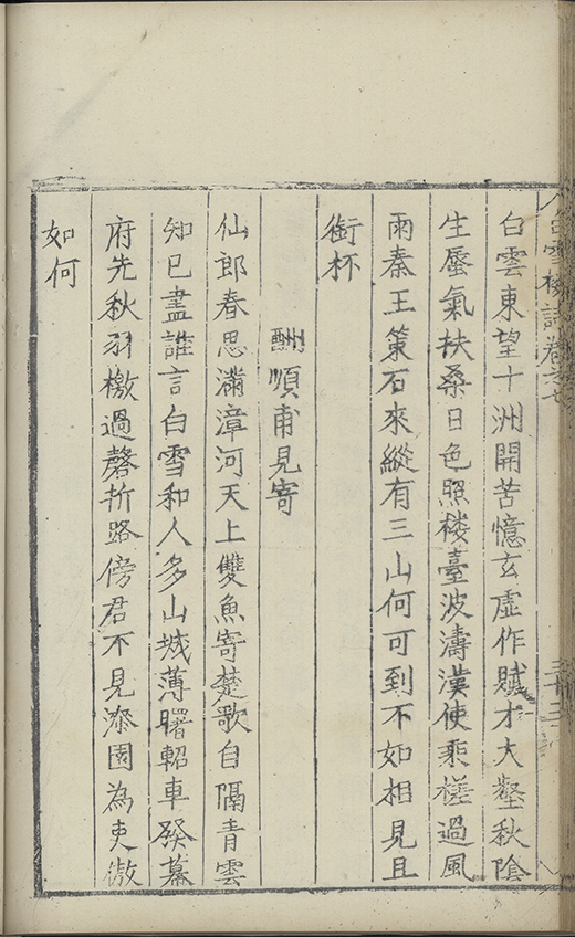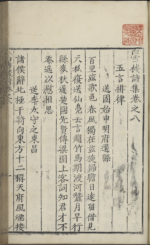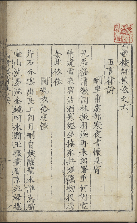 其全詩刻之題曰白雪楼詩集詩凢𠰥干首分