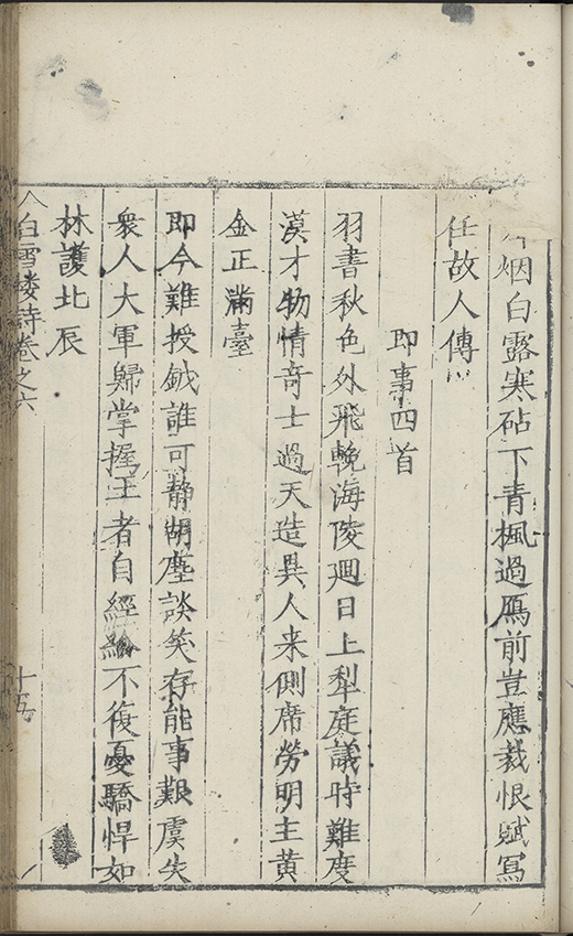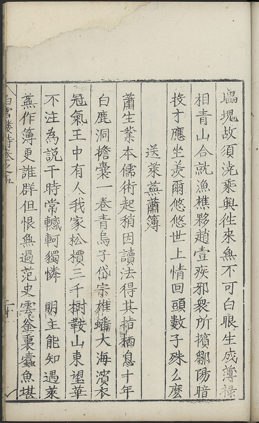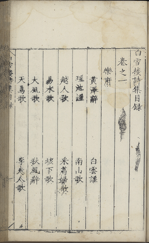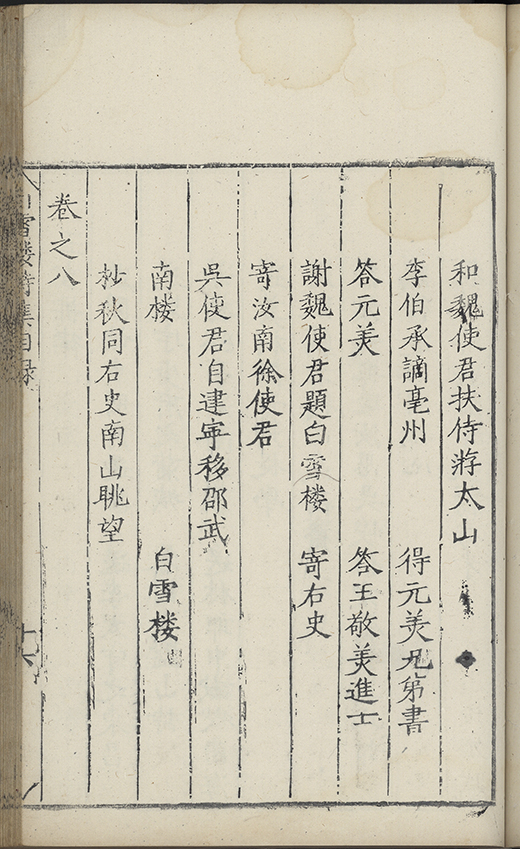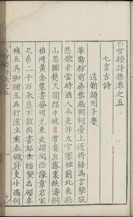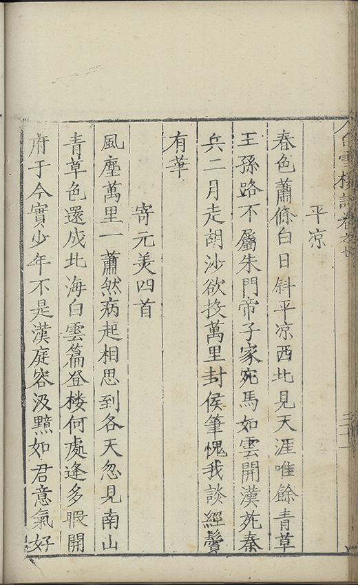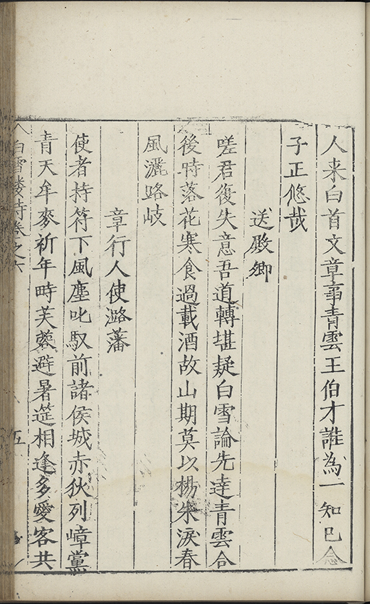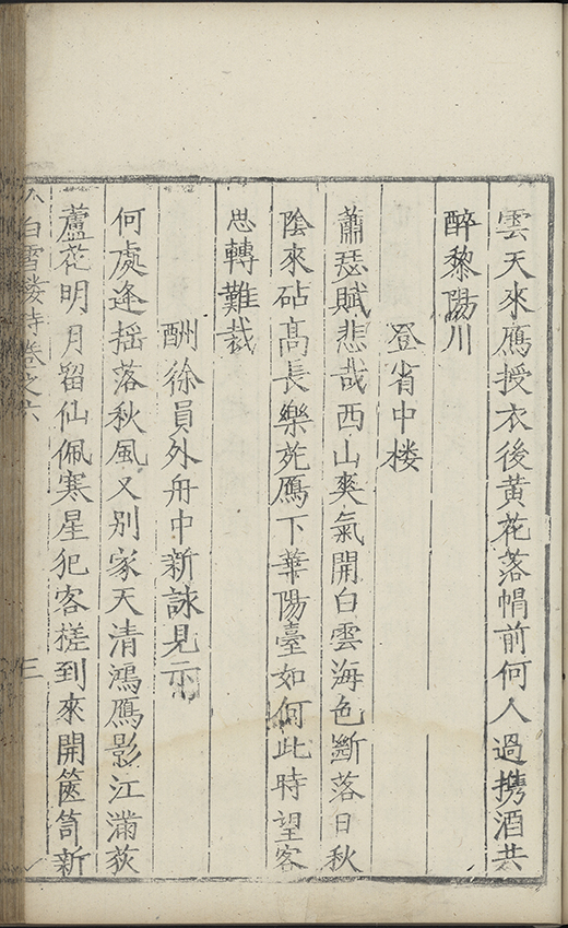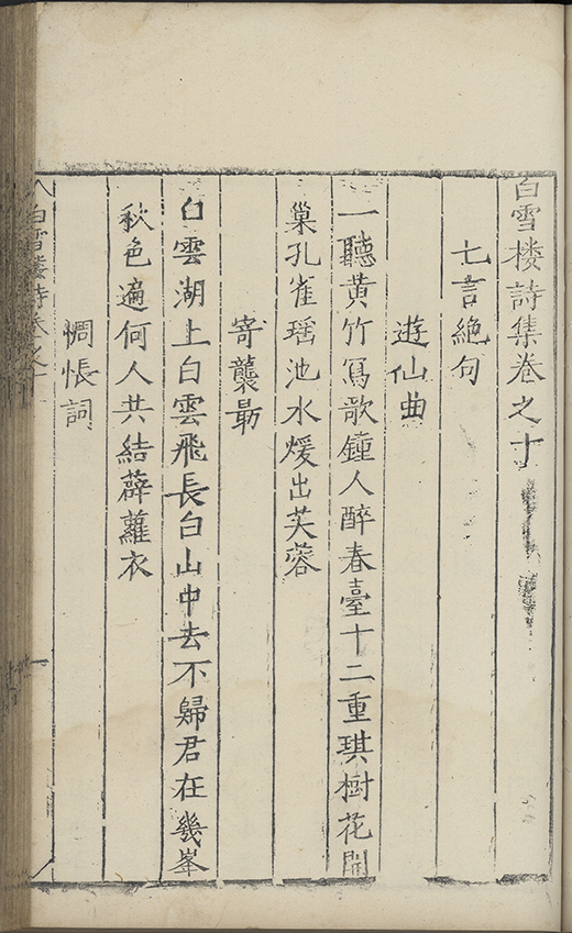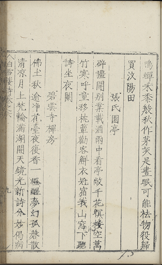其全詩刻之題曰白雪楼詩集詩凢𠰥干首分