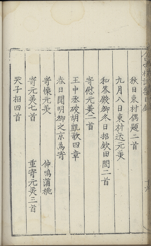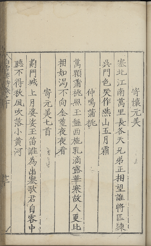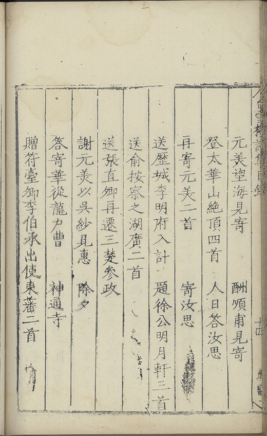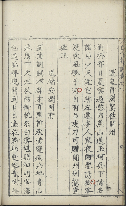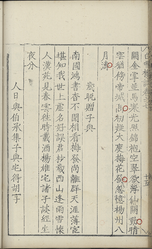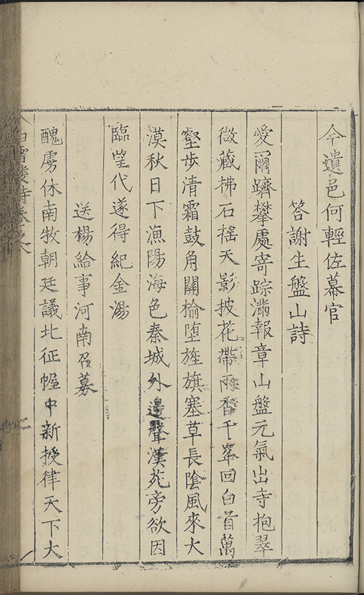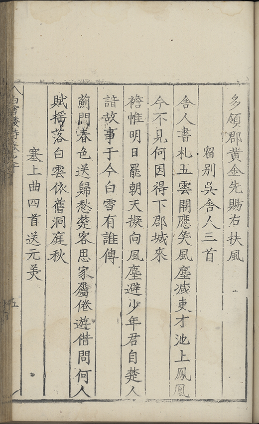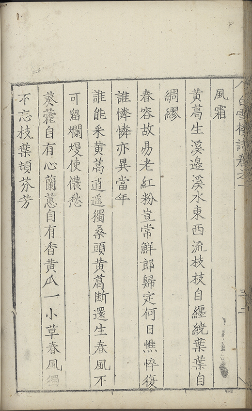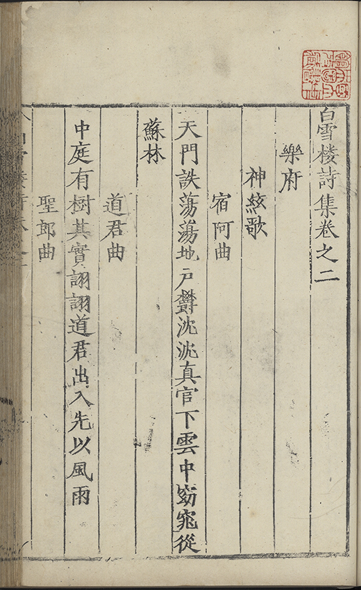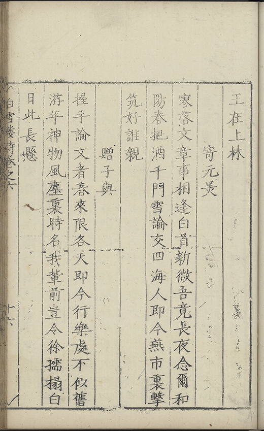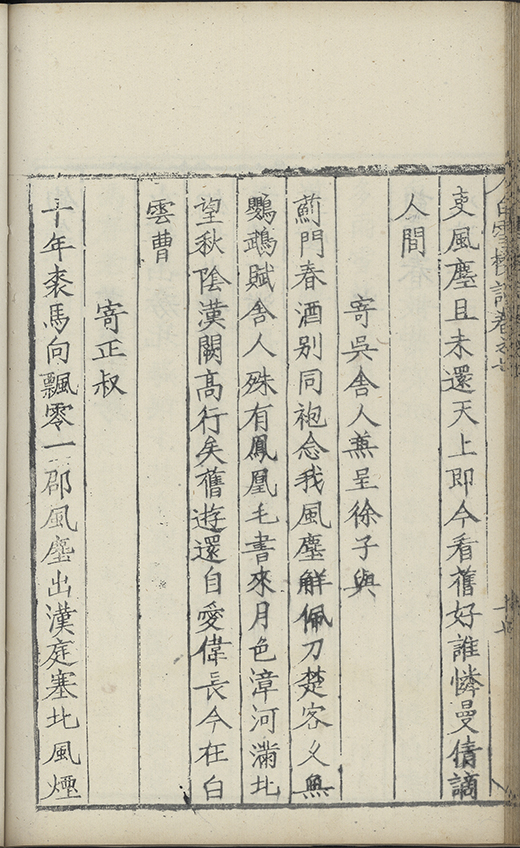 其全詩刻之題曰白雪楼詩集詩凢𠰥干首分