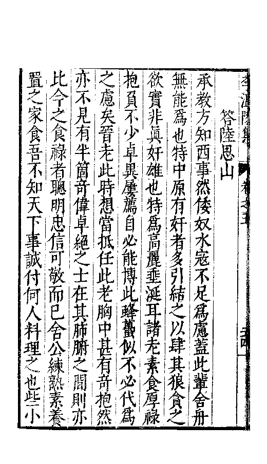 中丞綏定後攜我共登臨所喜聞謠俗非干懷壯心