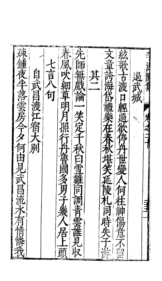 疎鍾夜半落雲房今夕何由見武昌流水有情憐我