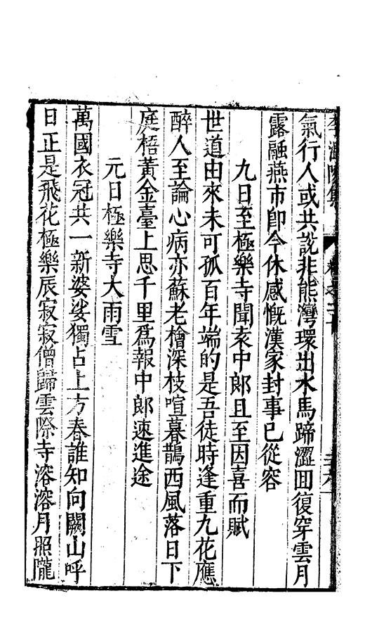 日正是飛花極樂辰寂寂僧歸雲際寺溶溶月照隴