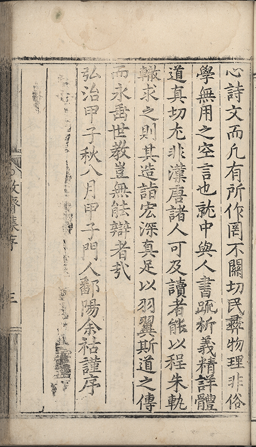 弘治甲子秋八月甲子門人鄱陽余祜謹序