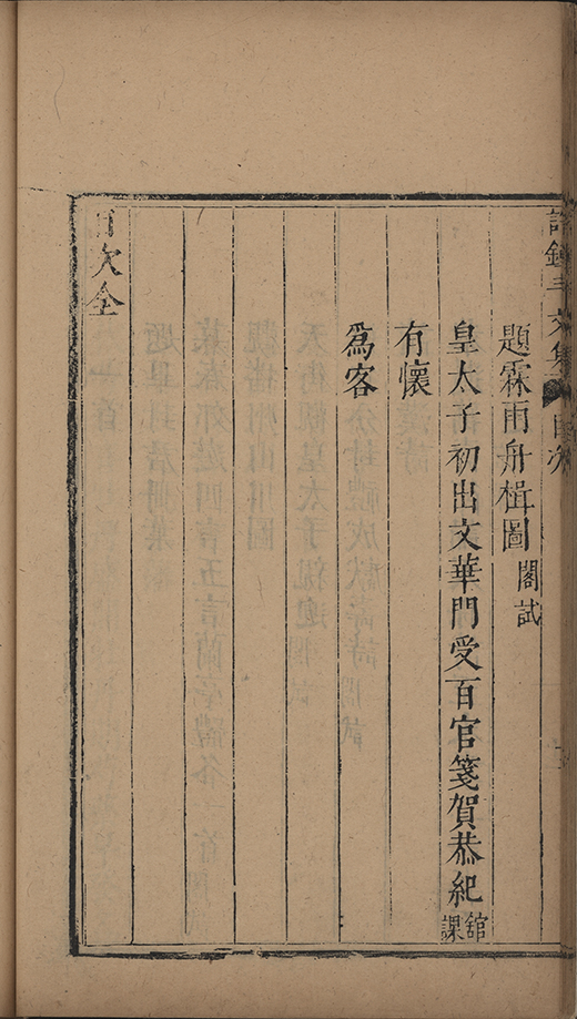 皇太子初出文華門受百官箋賀恭紀(五言排律)