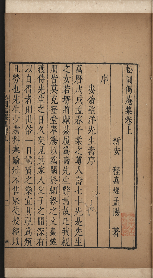 萬曆戊戍孟春子柔之尊人壽七十先是先生