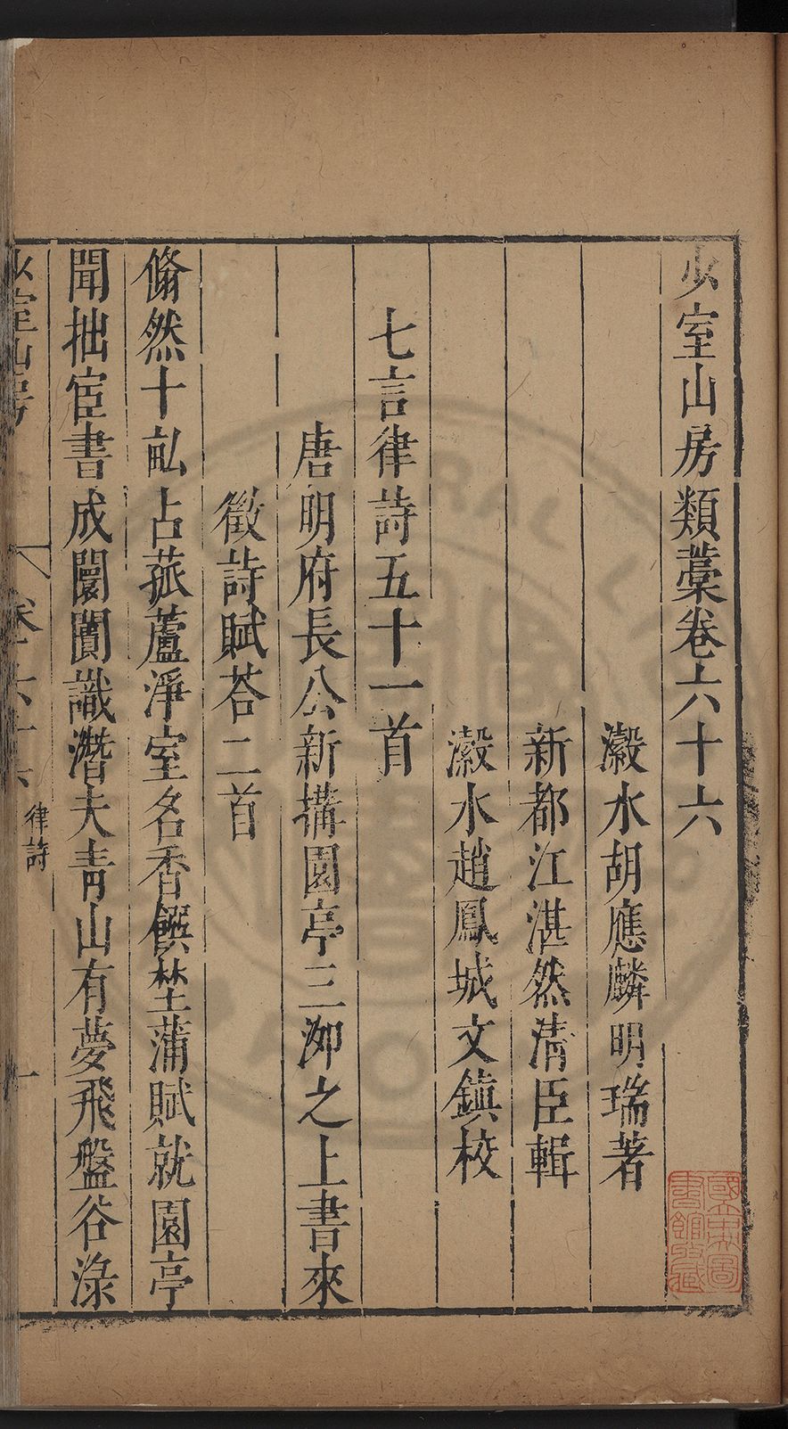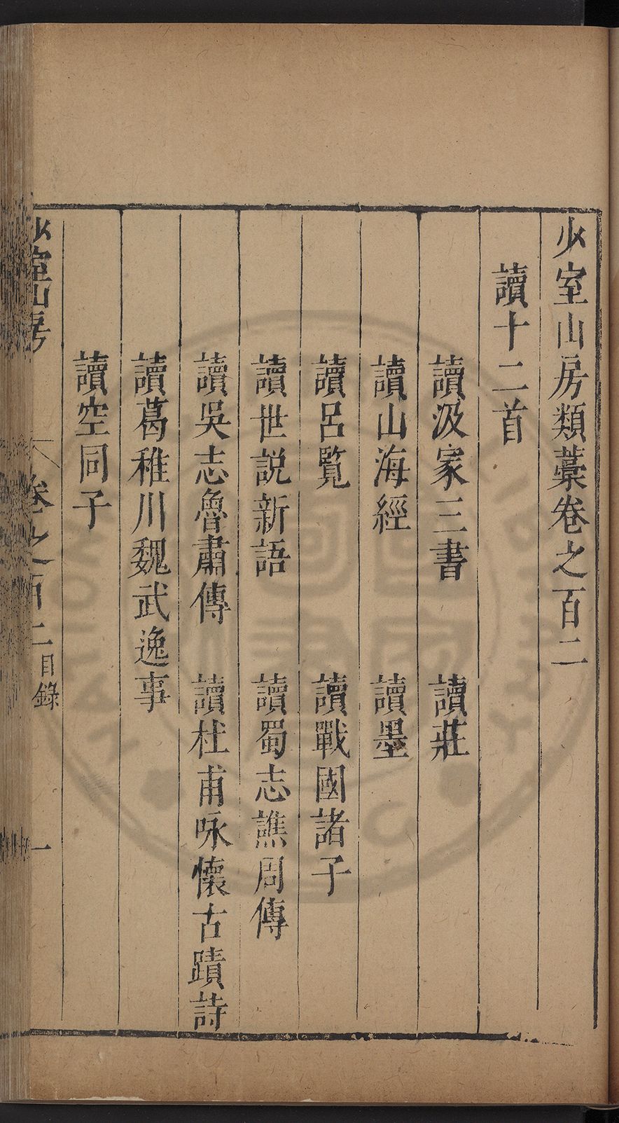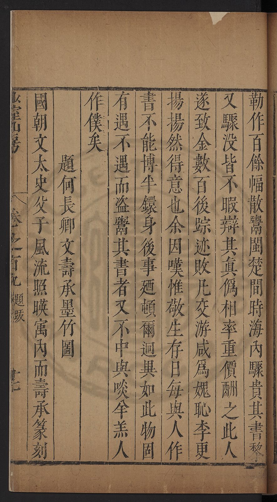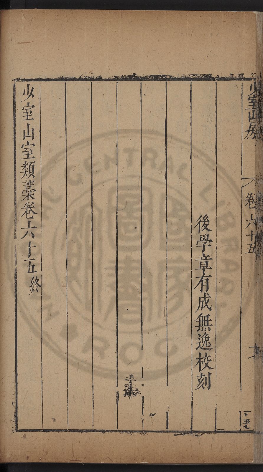(萬曆戊午三月七之日弟幼清啜洞荼分甘趙文鎮園筍扵碧桃花下讐杖百一卷至二十卷完政其字者二十有九刊補□衍者十三字江清臣記)