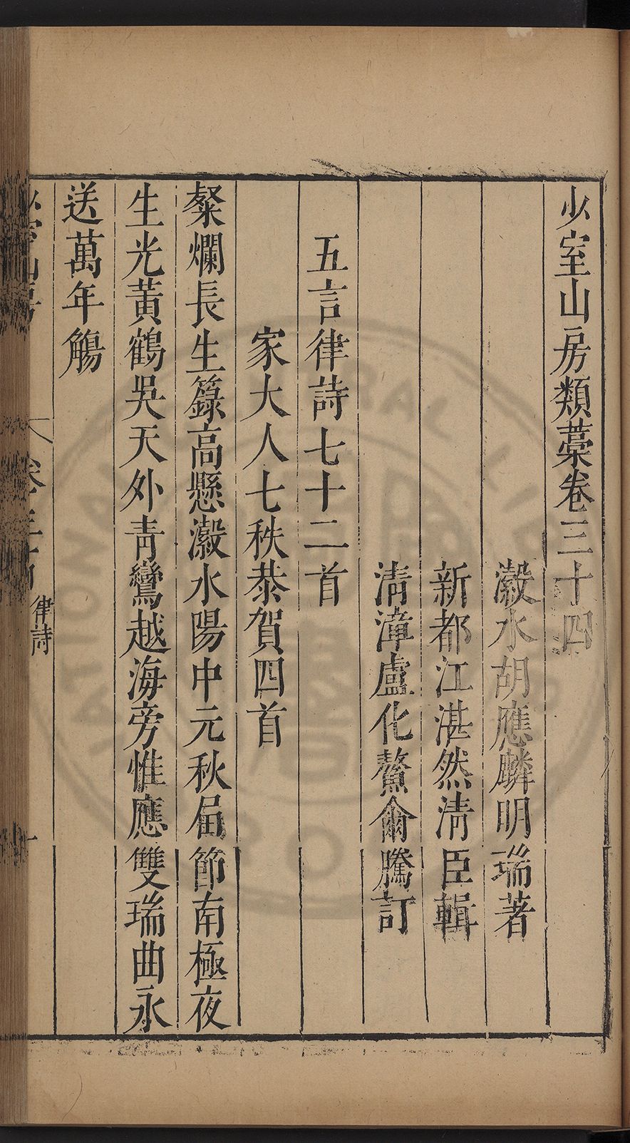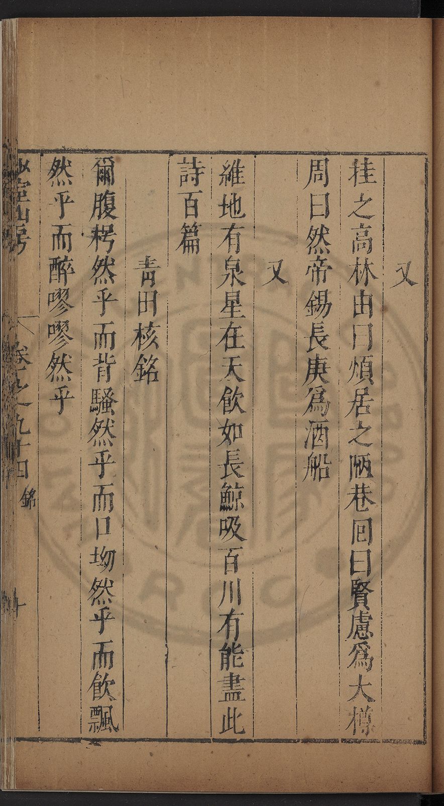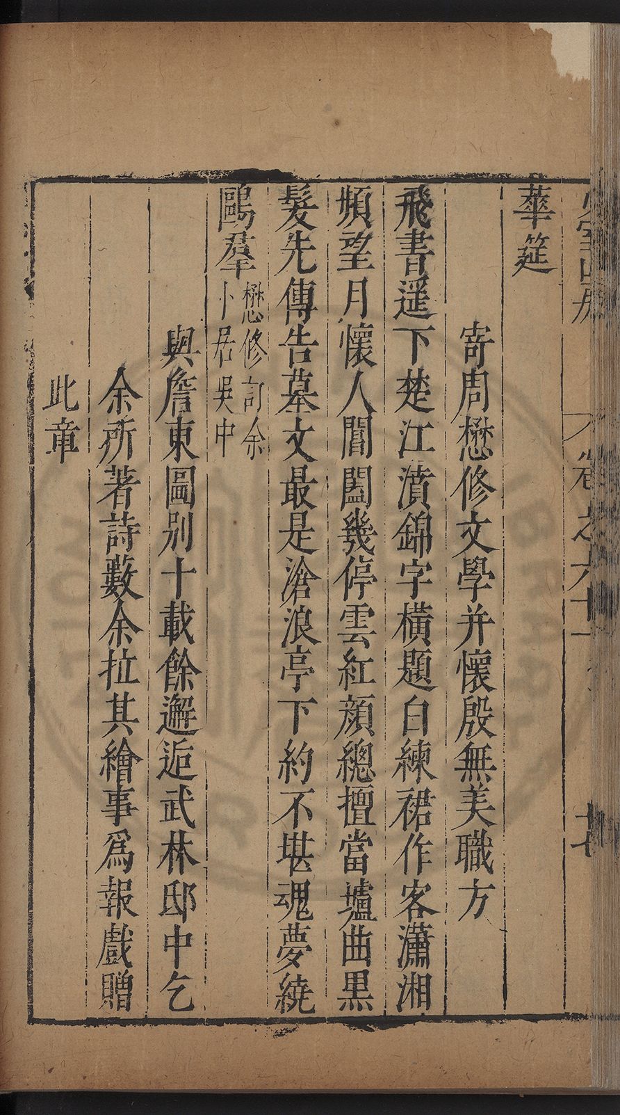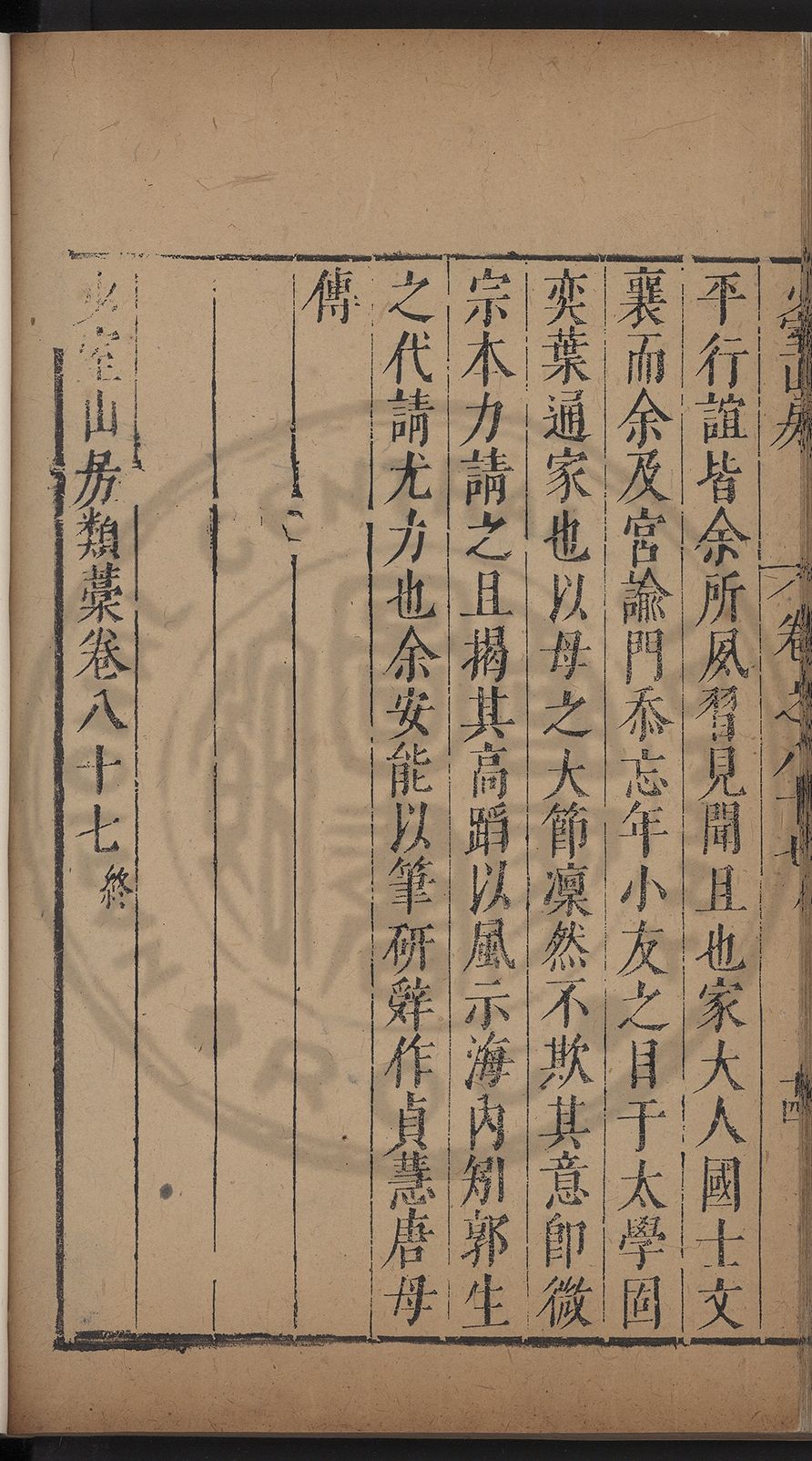 (萬曆戊午三月七之日弟幼清啜洞荼分甘趙文鎮園筍扵碧桃花下讐杖百一卷至二十卷完政其字者二十有九刊補□衍者十三字江清臣記)