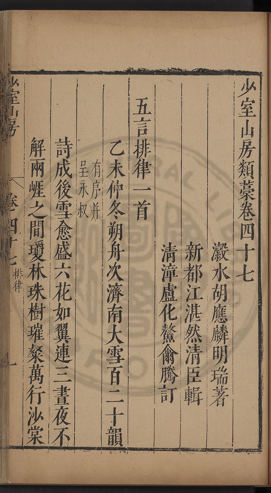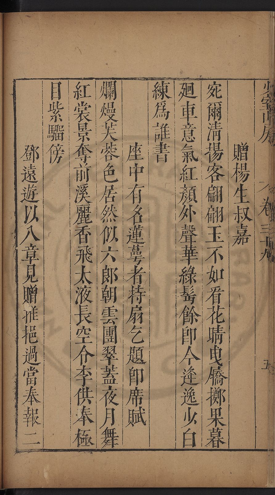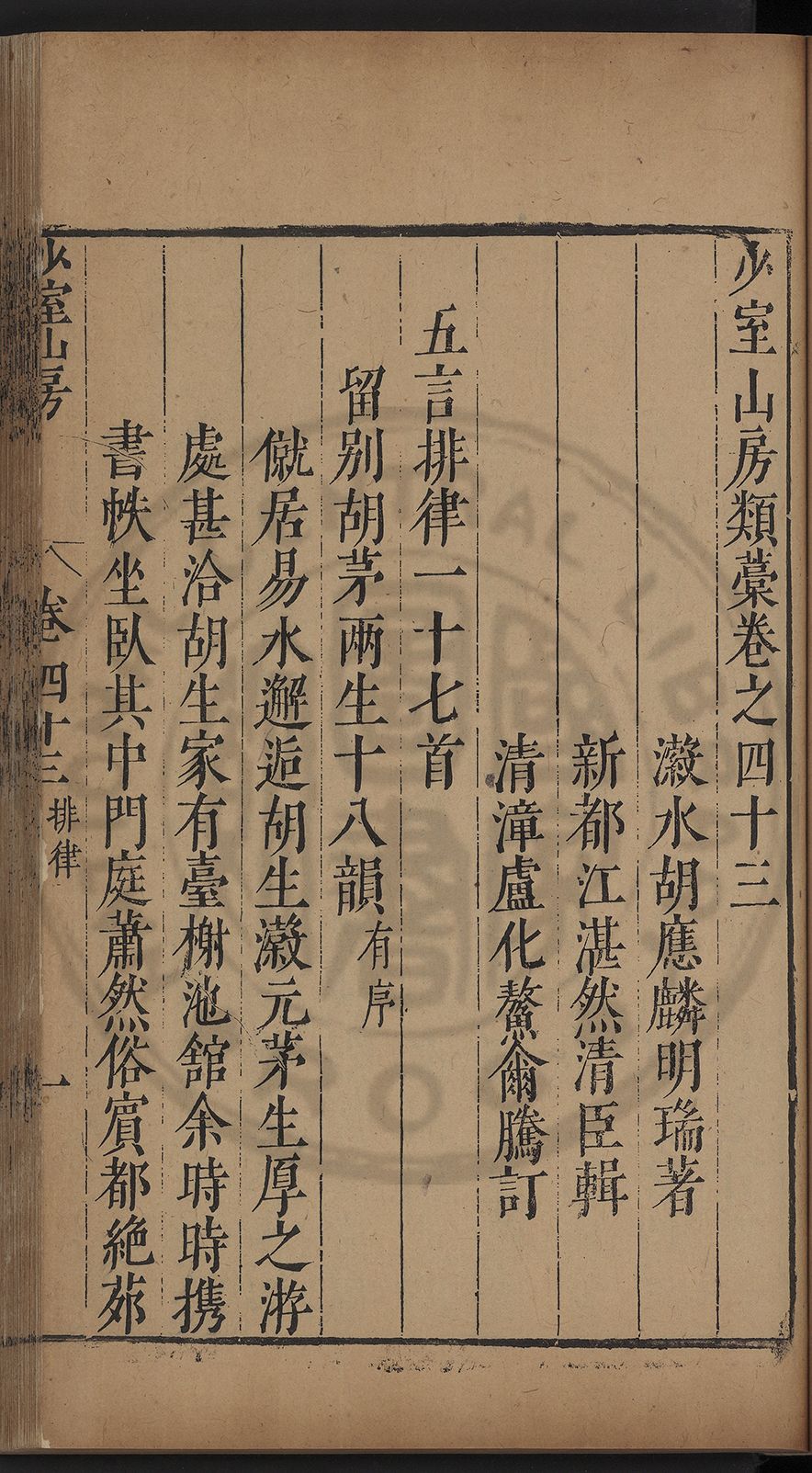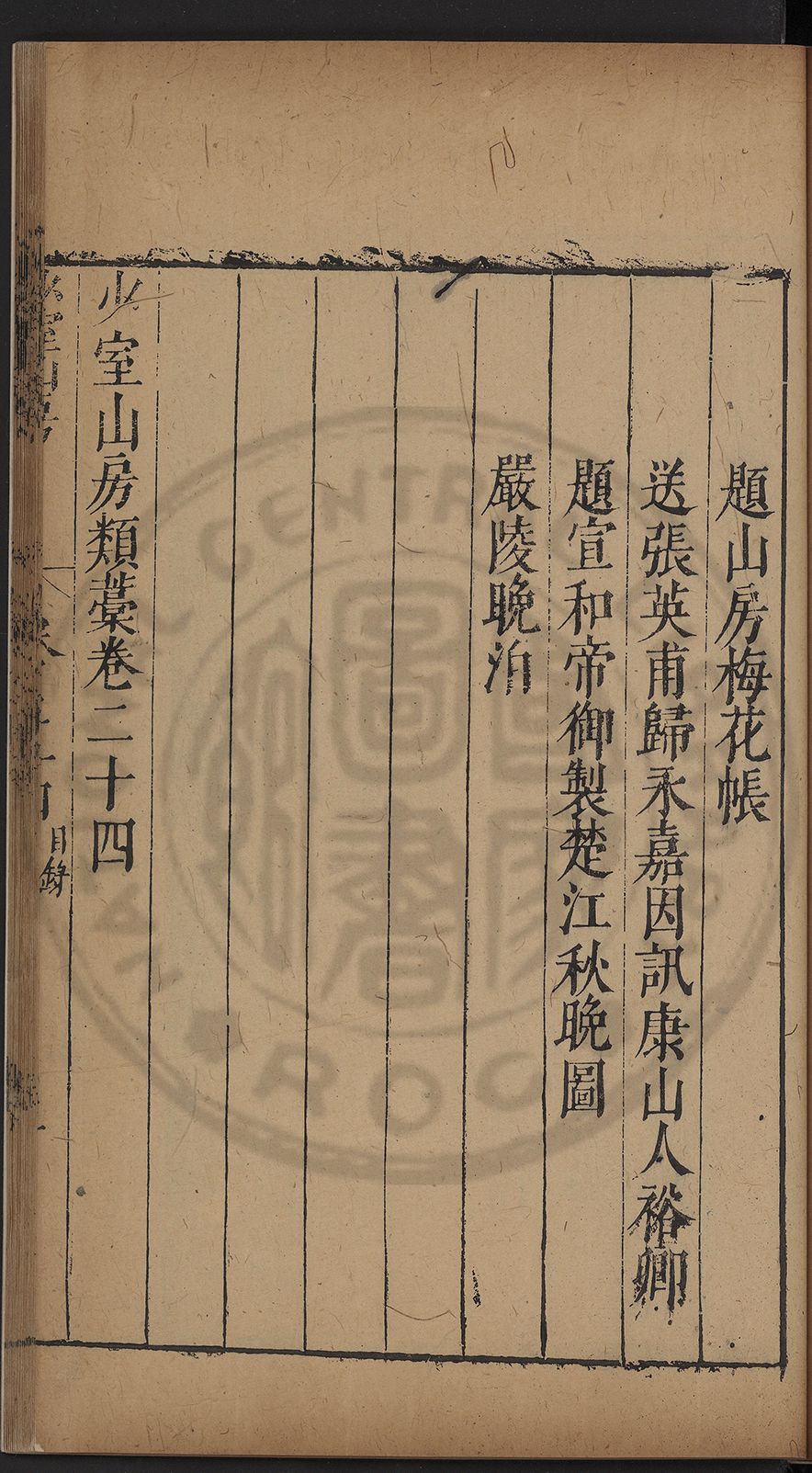 (萬曆戊午三月七之日弟幼清啜洞荼分甘趙文鎮園筍扵碧桃花下讐杖百一卷至二十卷完政其字者二十有九刊補□衍者十三字江清臣記)