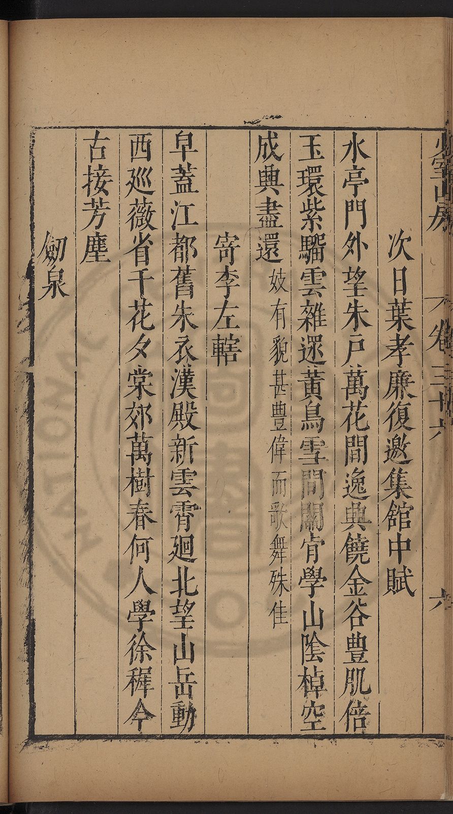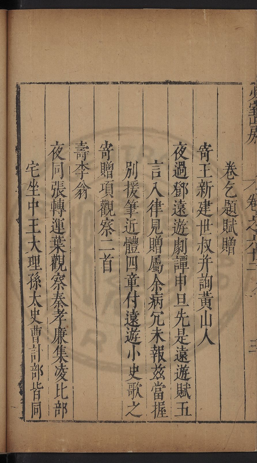 栢府崇遷九域佇澄清之化蘭臺獨坐千官廻