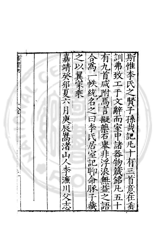 嘉靖癸卯夏六月庚辰嵩渚山人李濂川父志