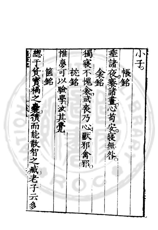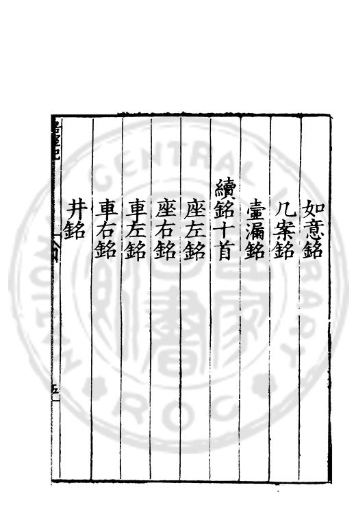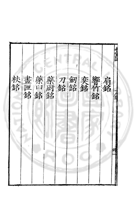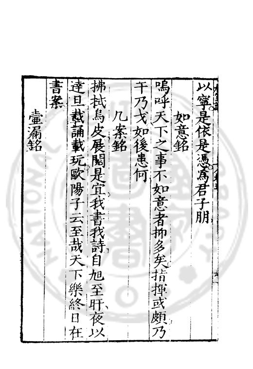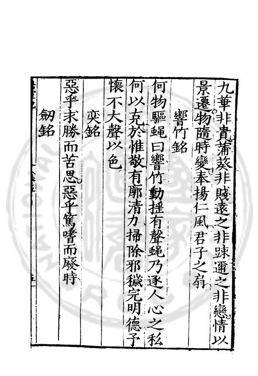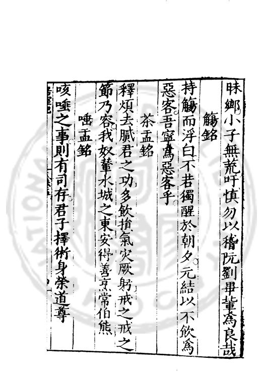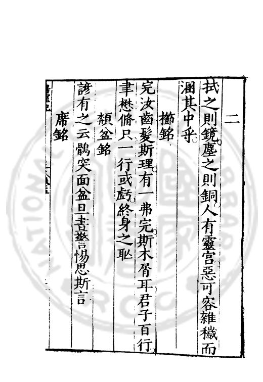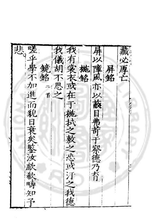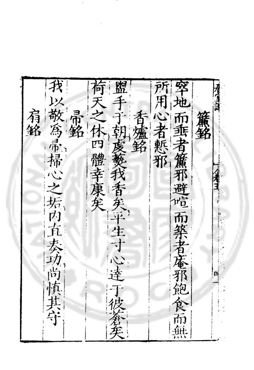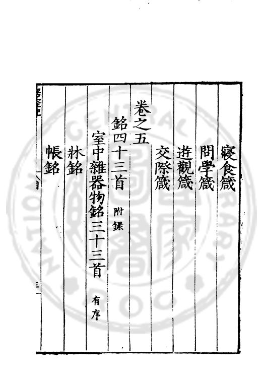 訓弗致工于文辭而室中諸器物箴銘凡五十