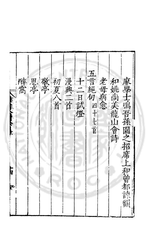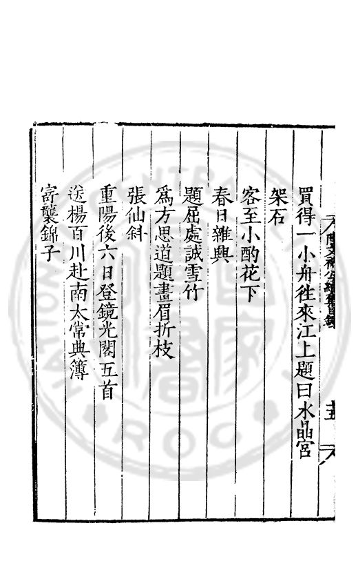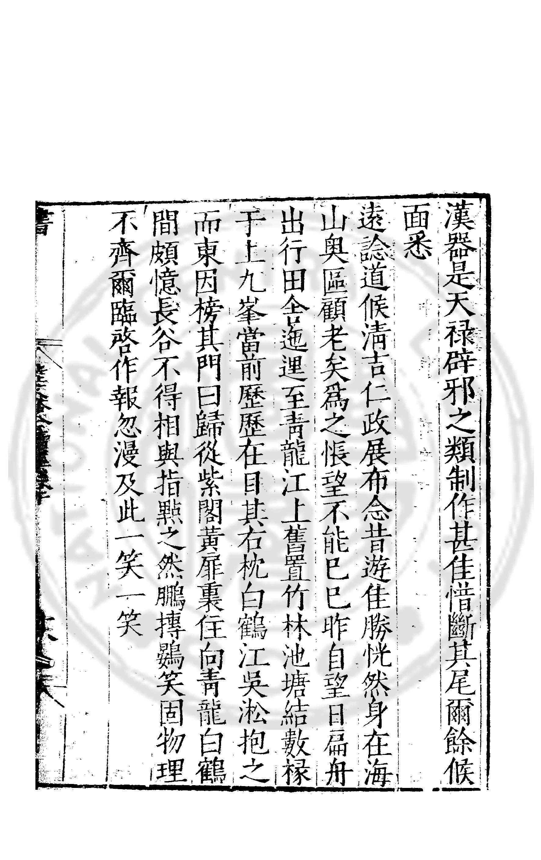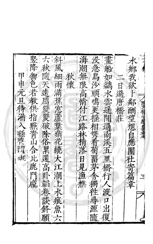 出行田舍拖□至青龍江上舊置竹林池塘結數椽