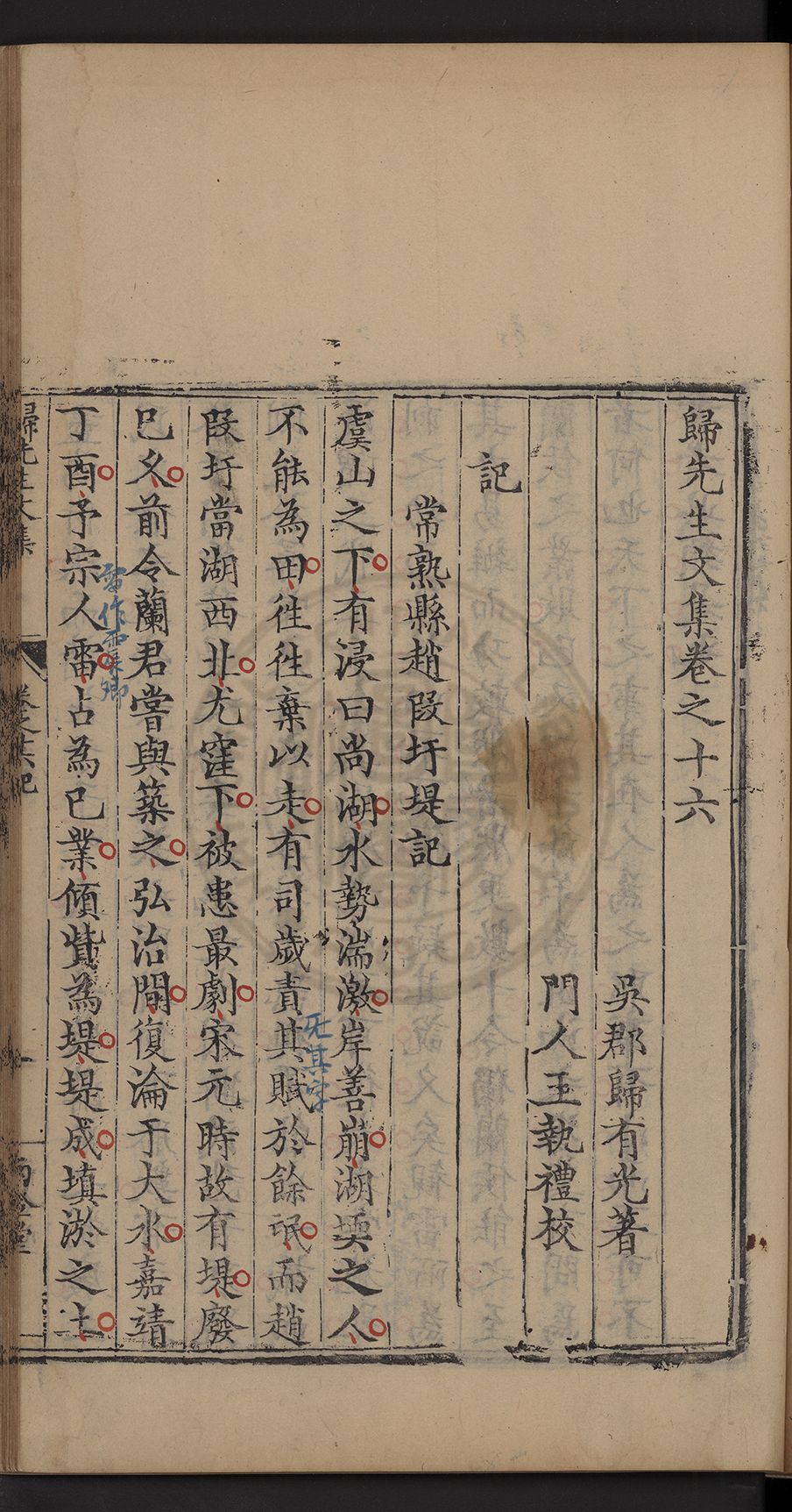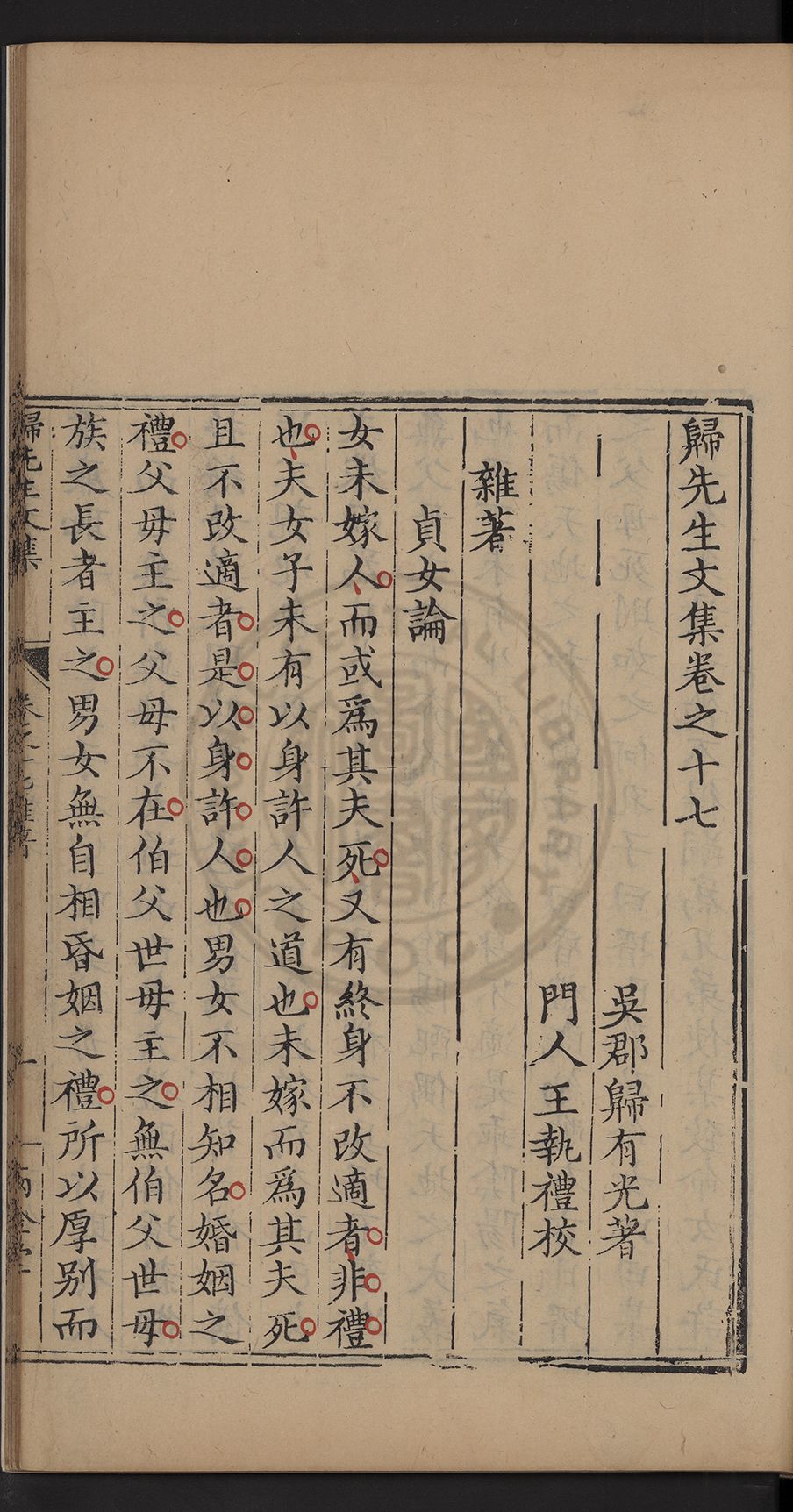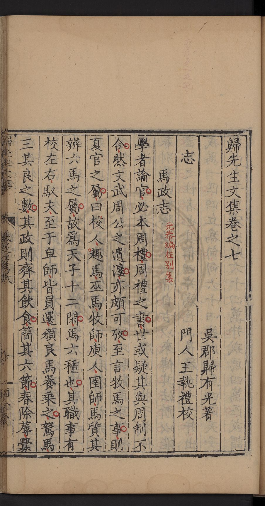 歸震川集卅二卷附錄一卷明萬歴刊本全書已經吴門汪堯峯先生