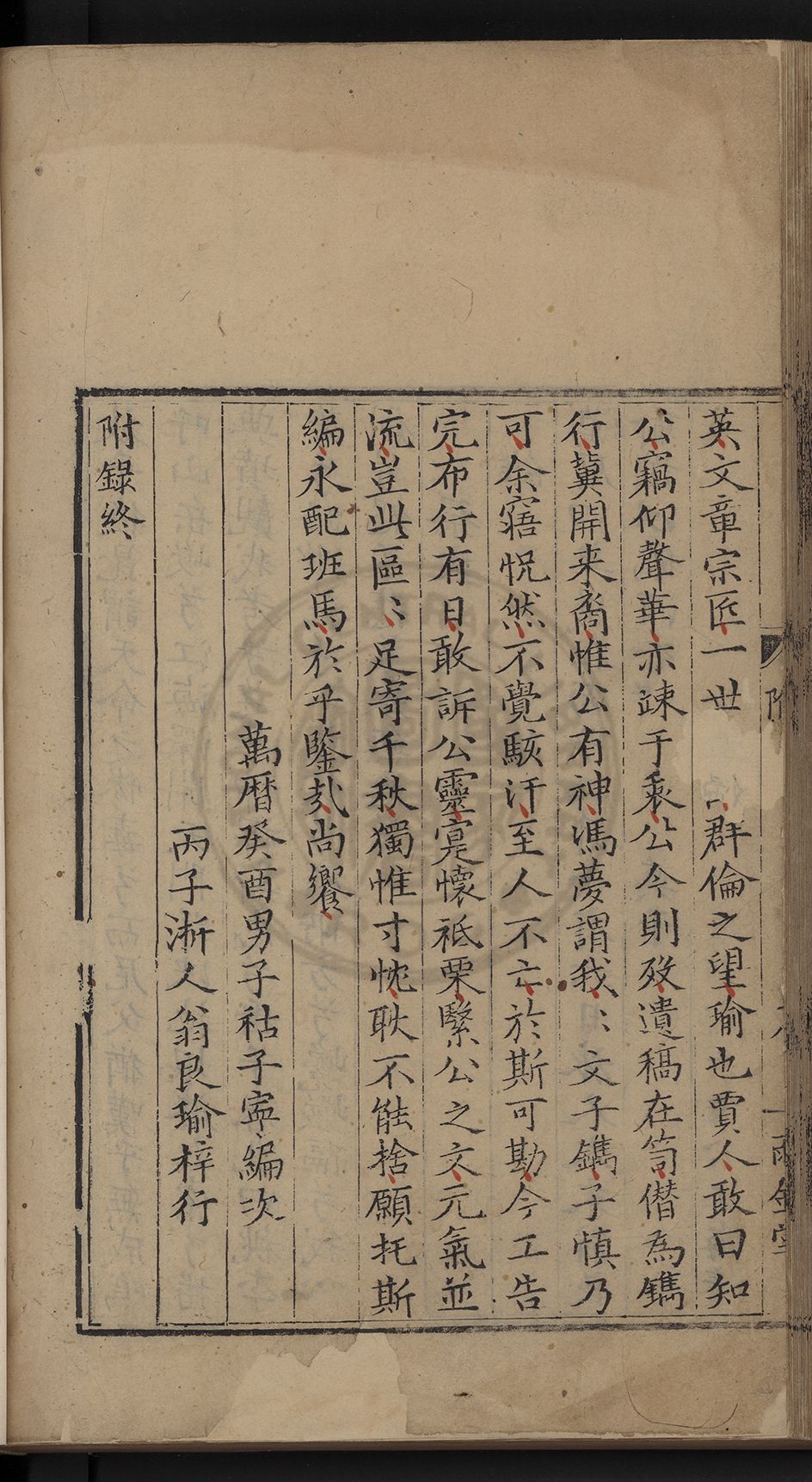 萬曆四年歲在丙子二月時有六日旅人太末翁良