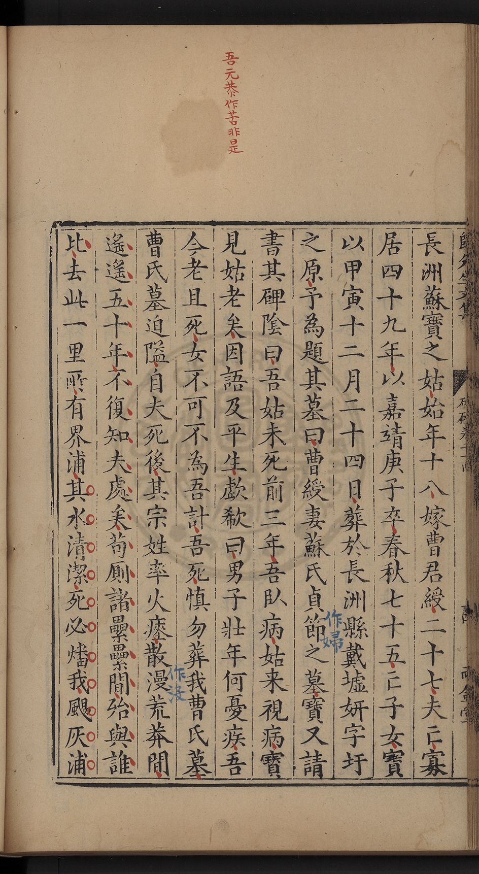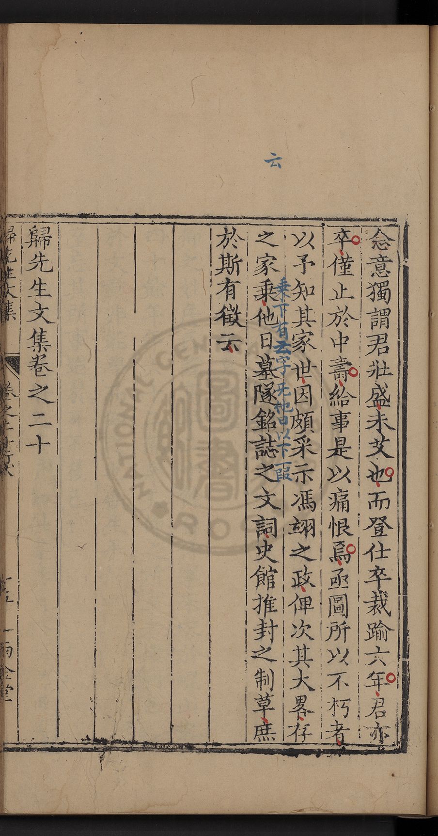 親筆批校前有汪琬及苕華書屋藏印已見著錄堯峯文鈔二十二卷