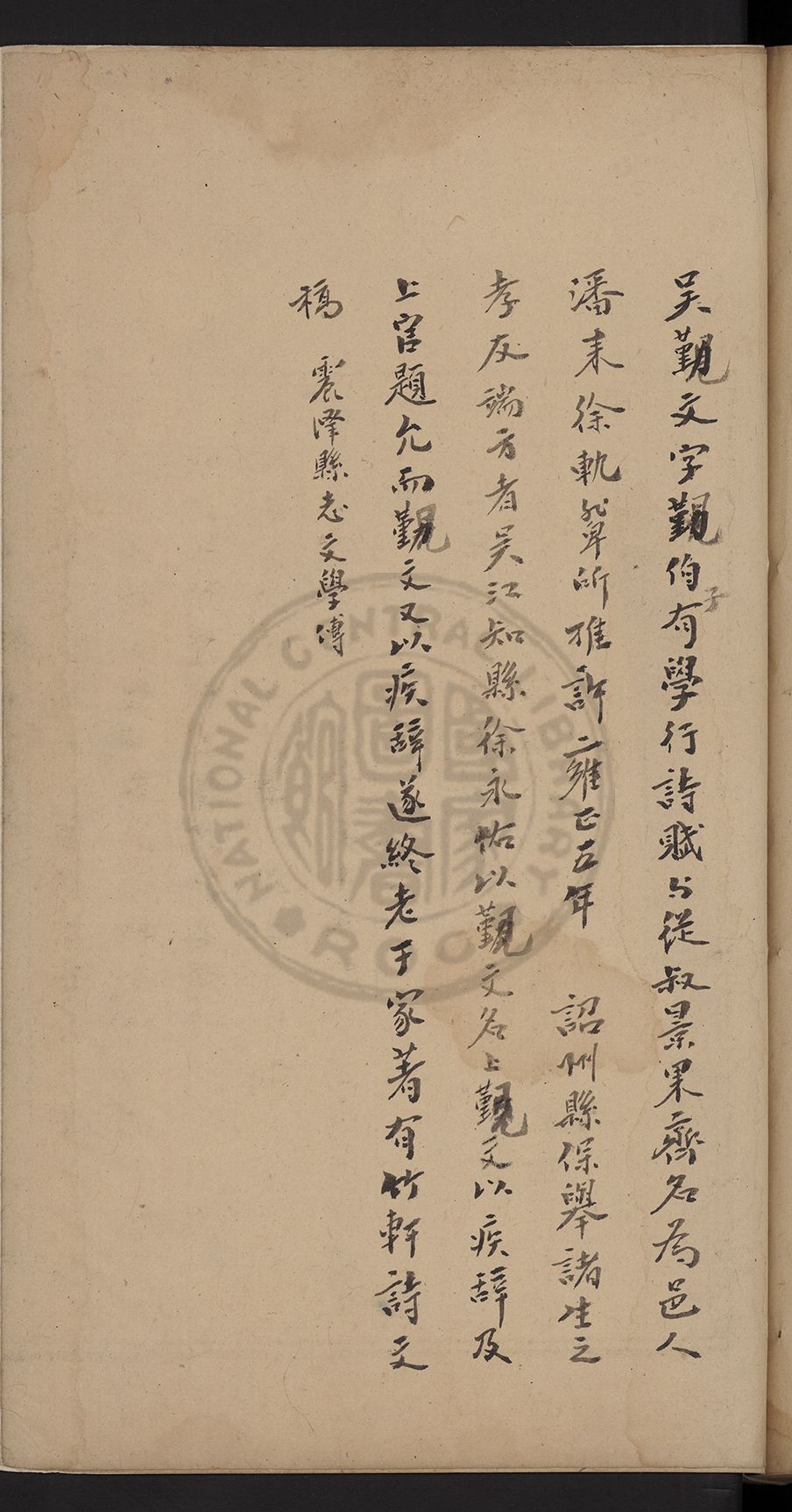 重著有竹軒詩文稿行於卋見震澤志文學傳前有吴覲文藏