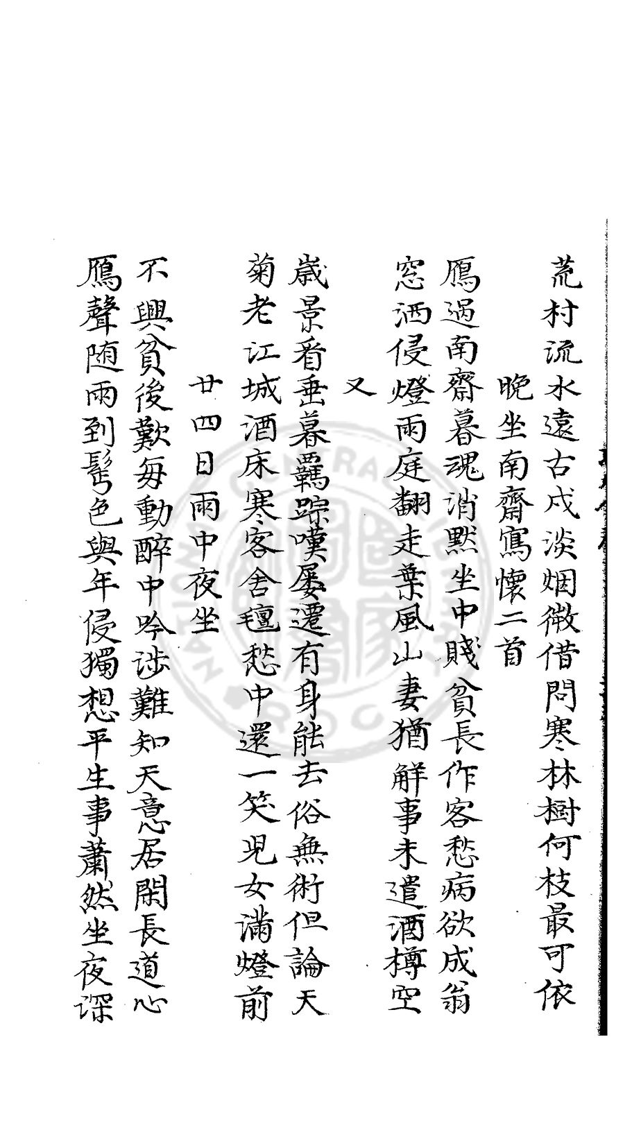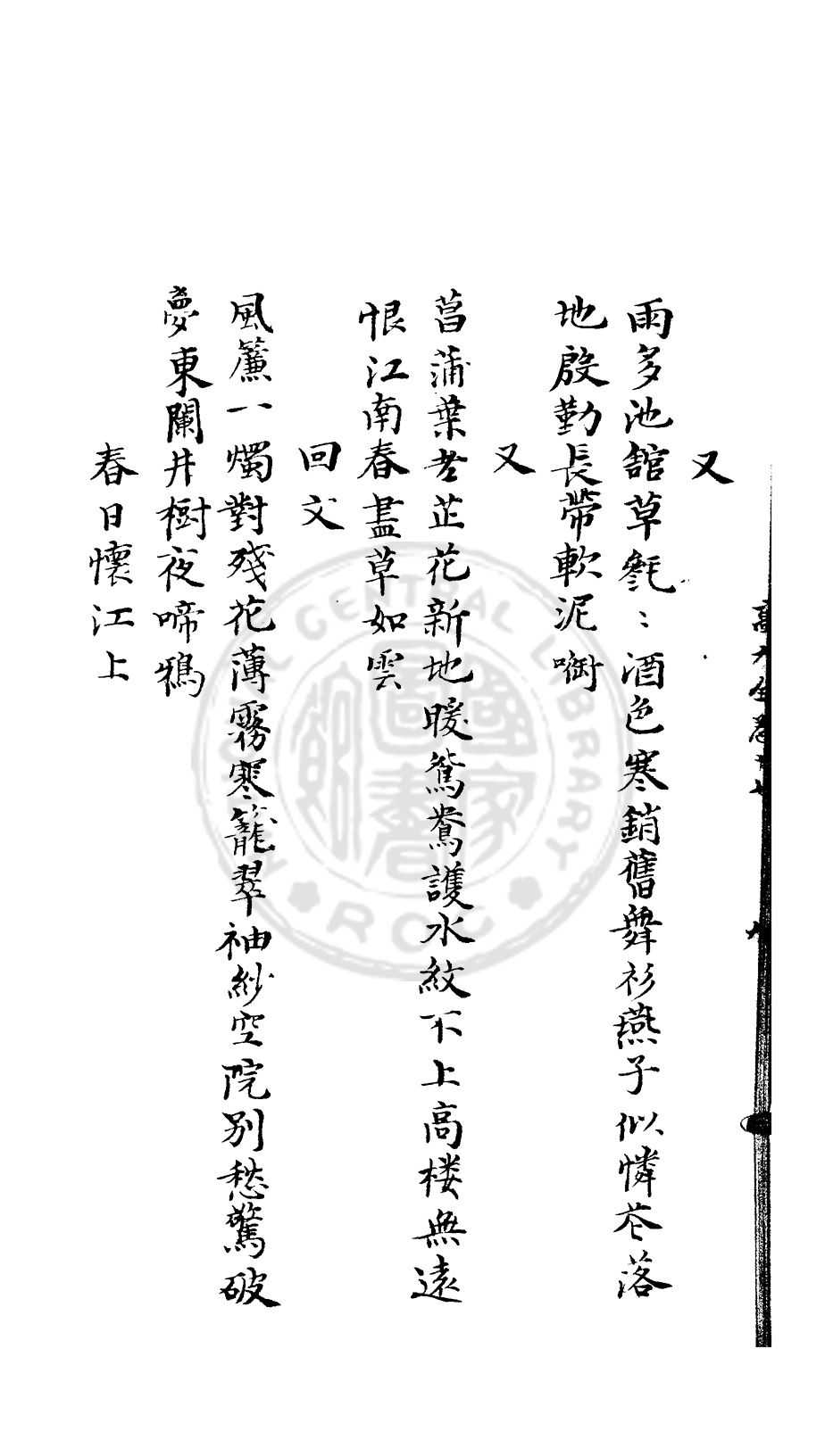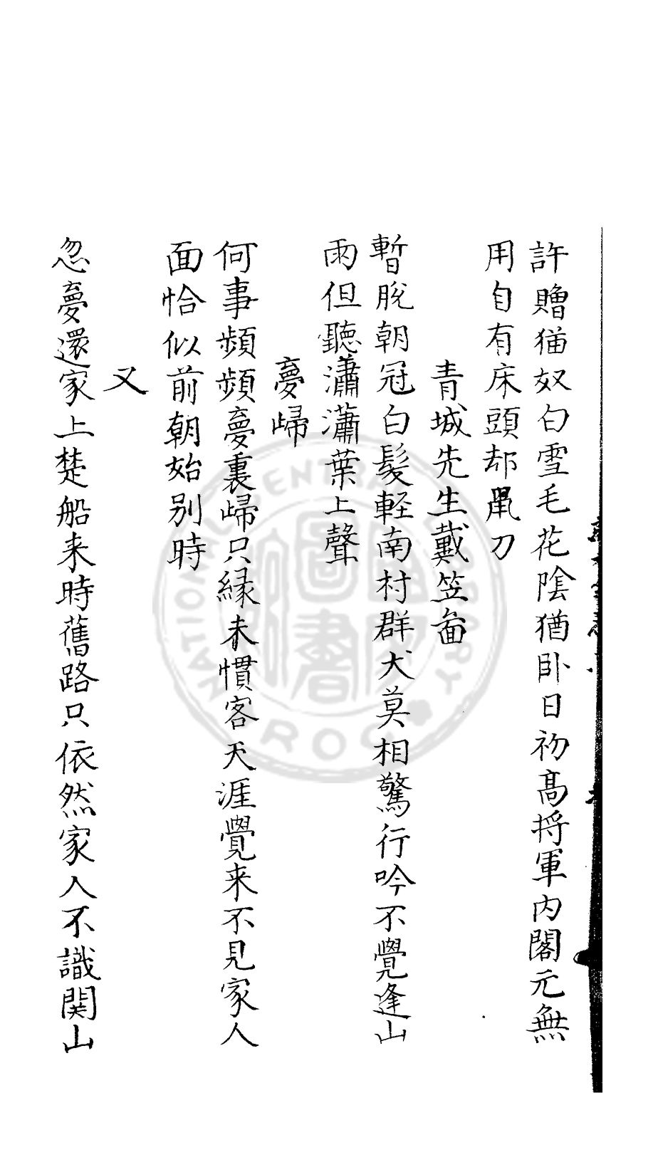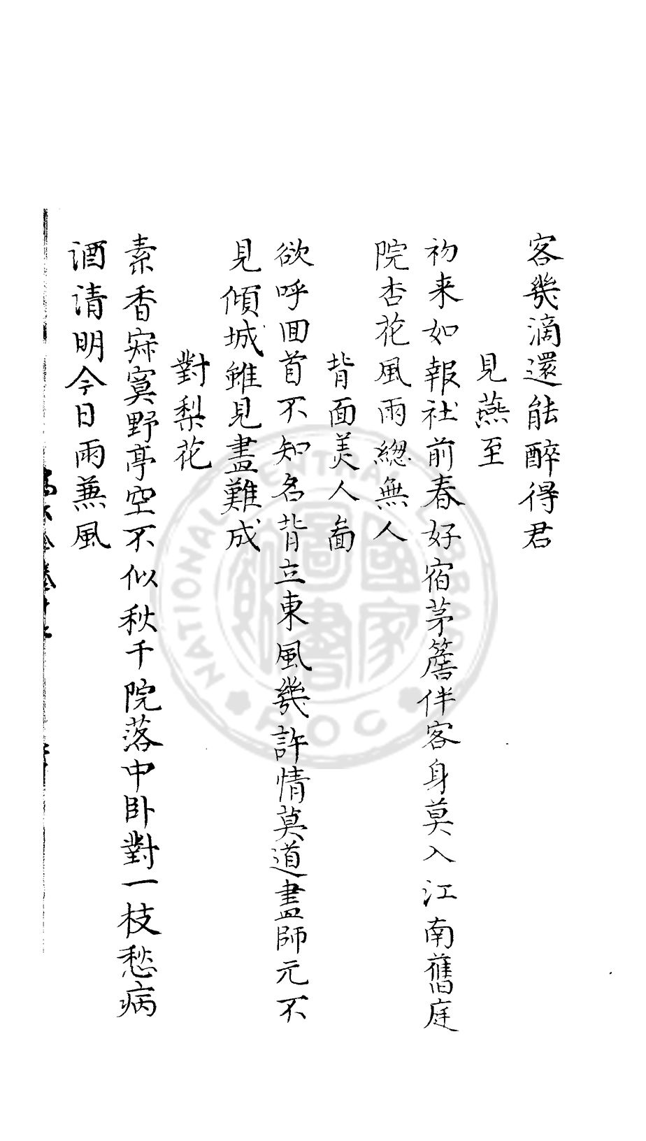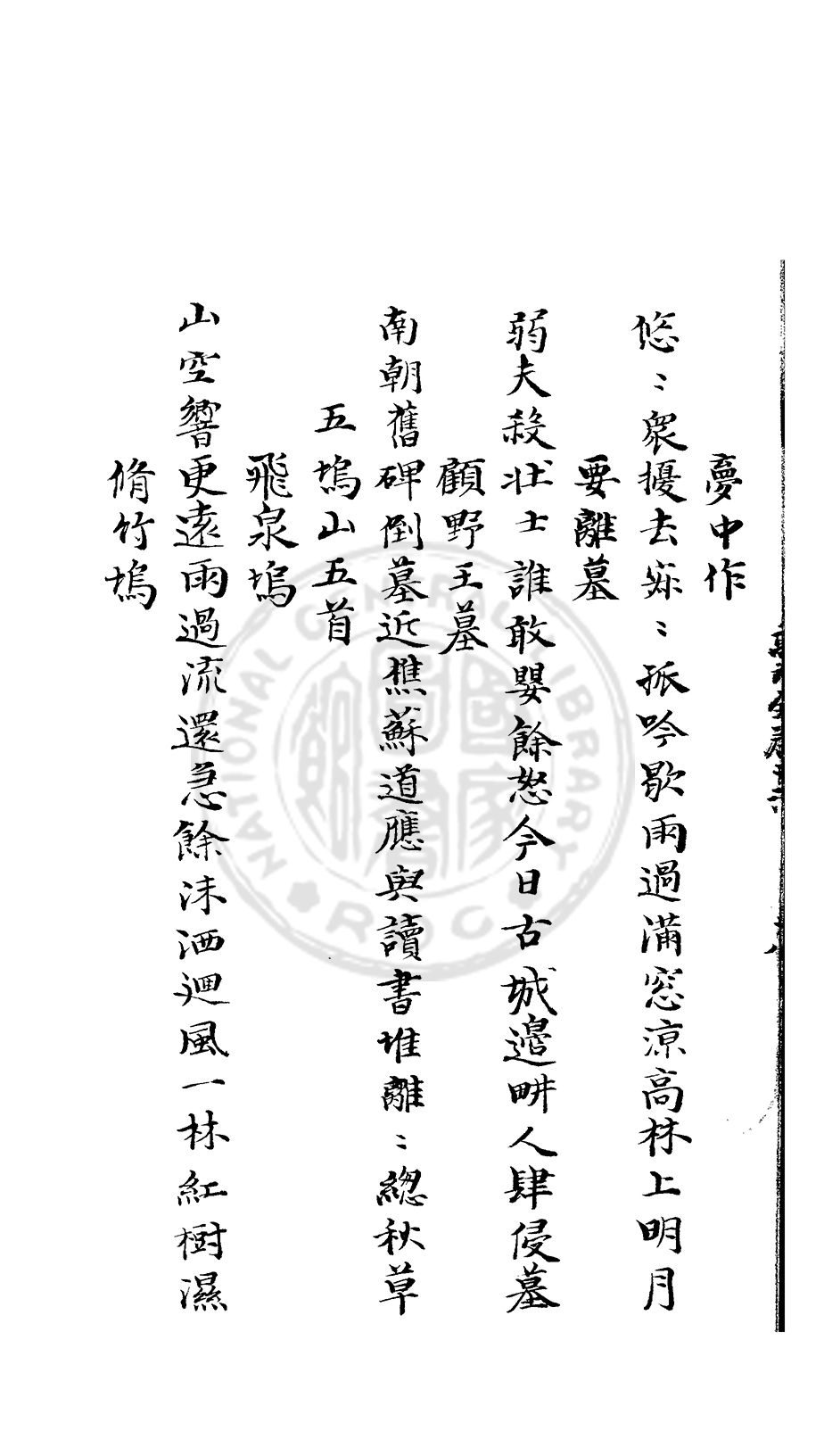 夜窓同聴雨中猿風物凄凉異故園舊事堪愁今懶