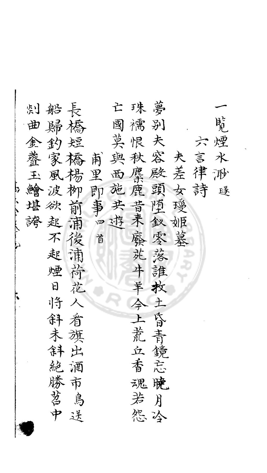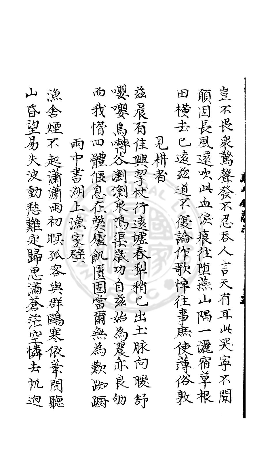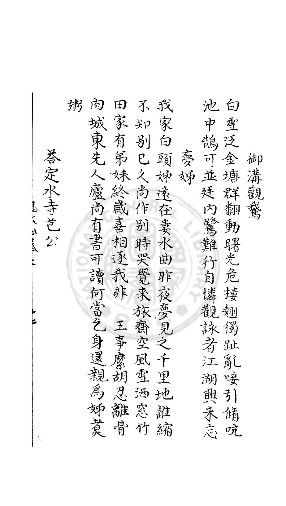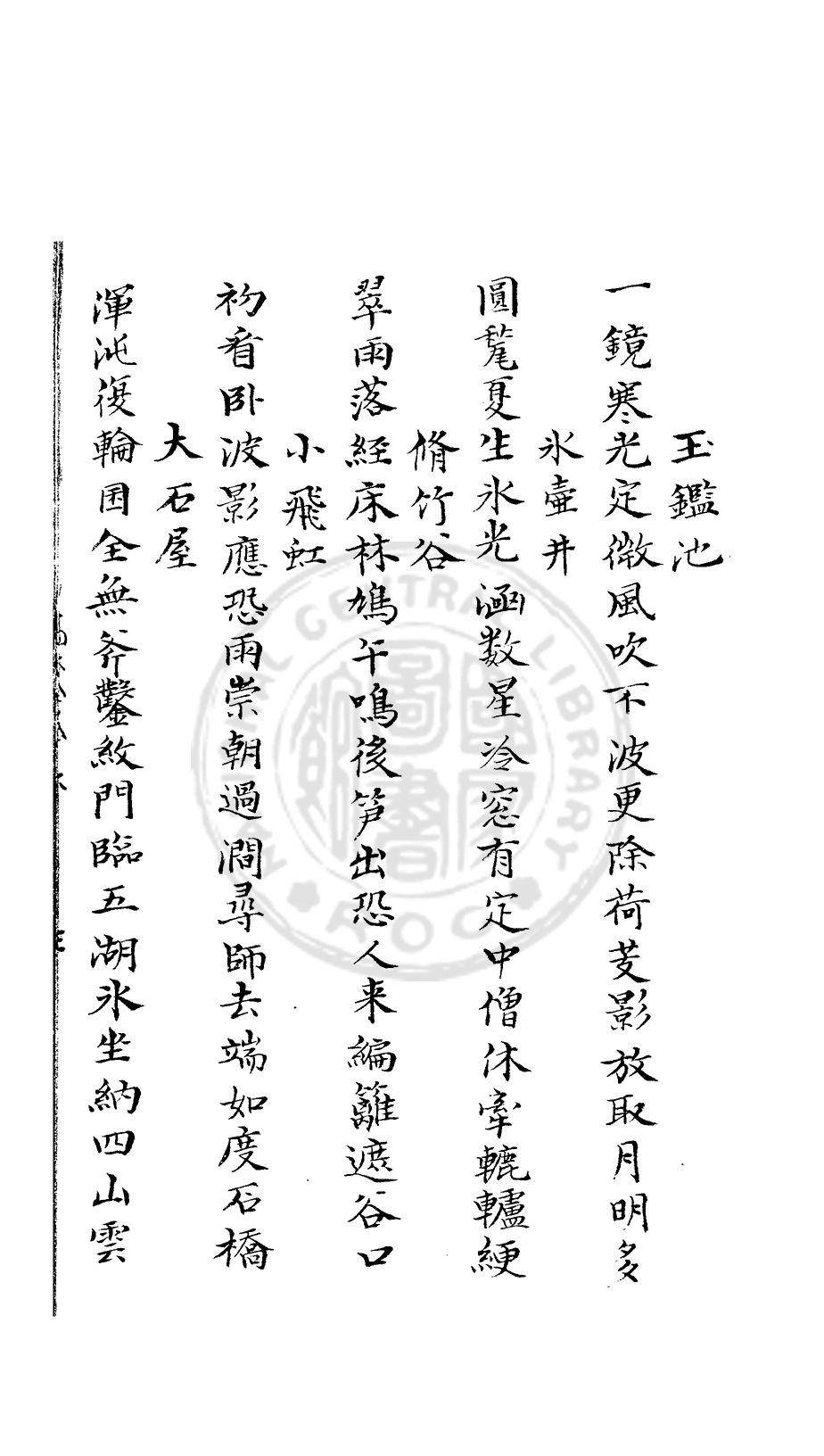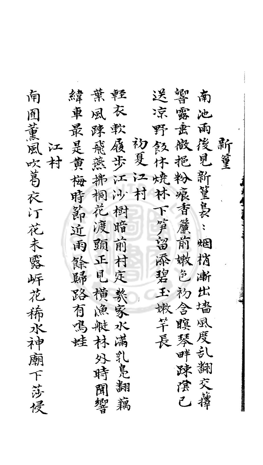 渺渺一逕兩陂間楊桞初發水潺湲驚魚忽散人影
