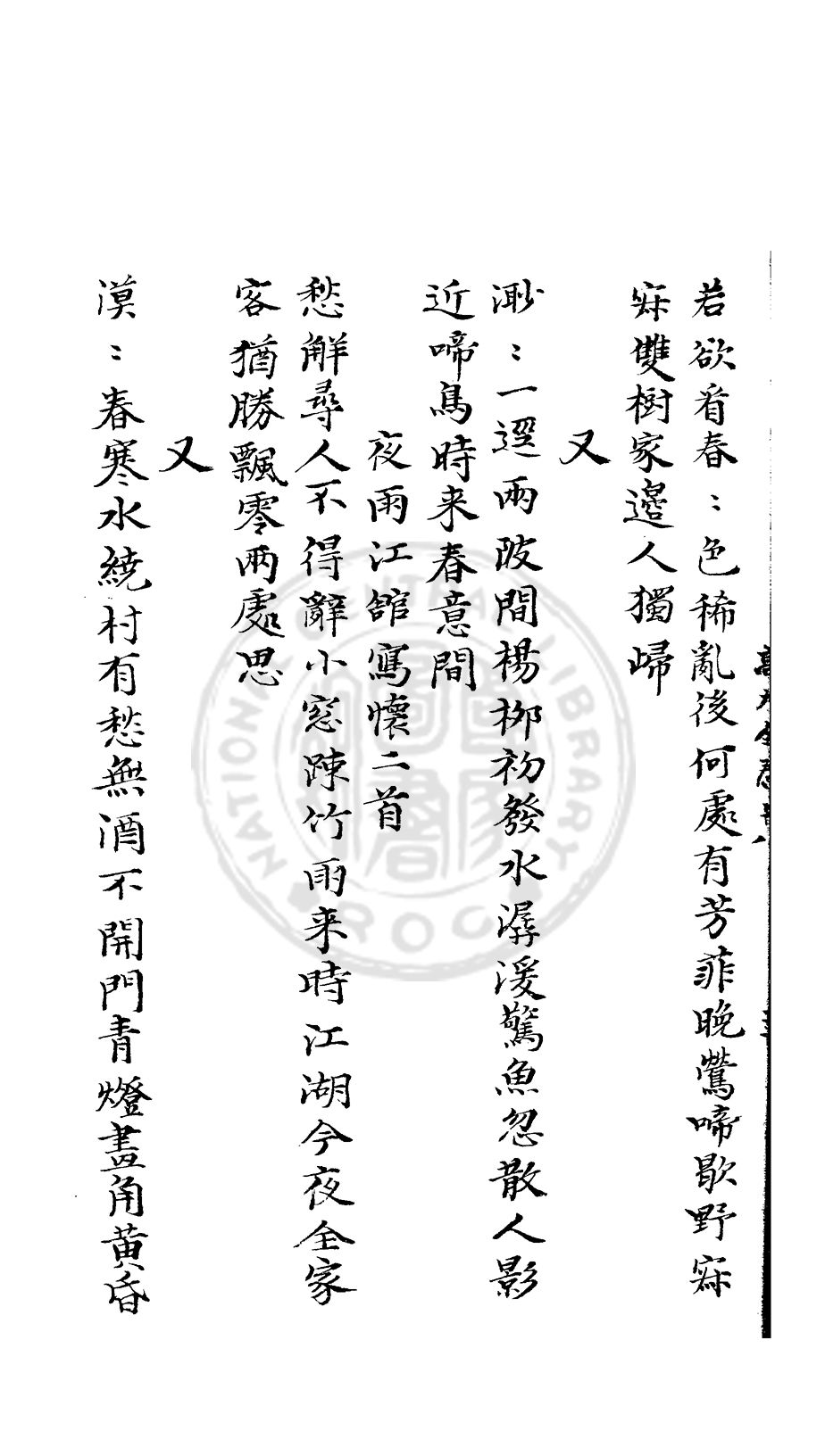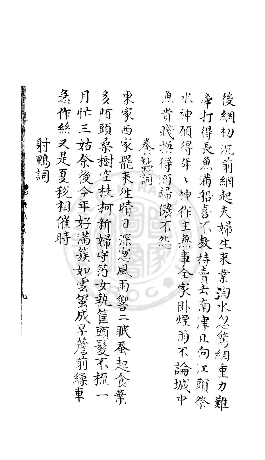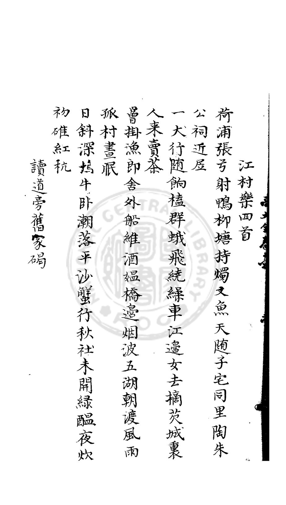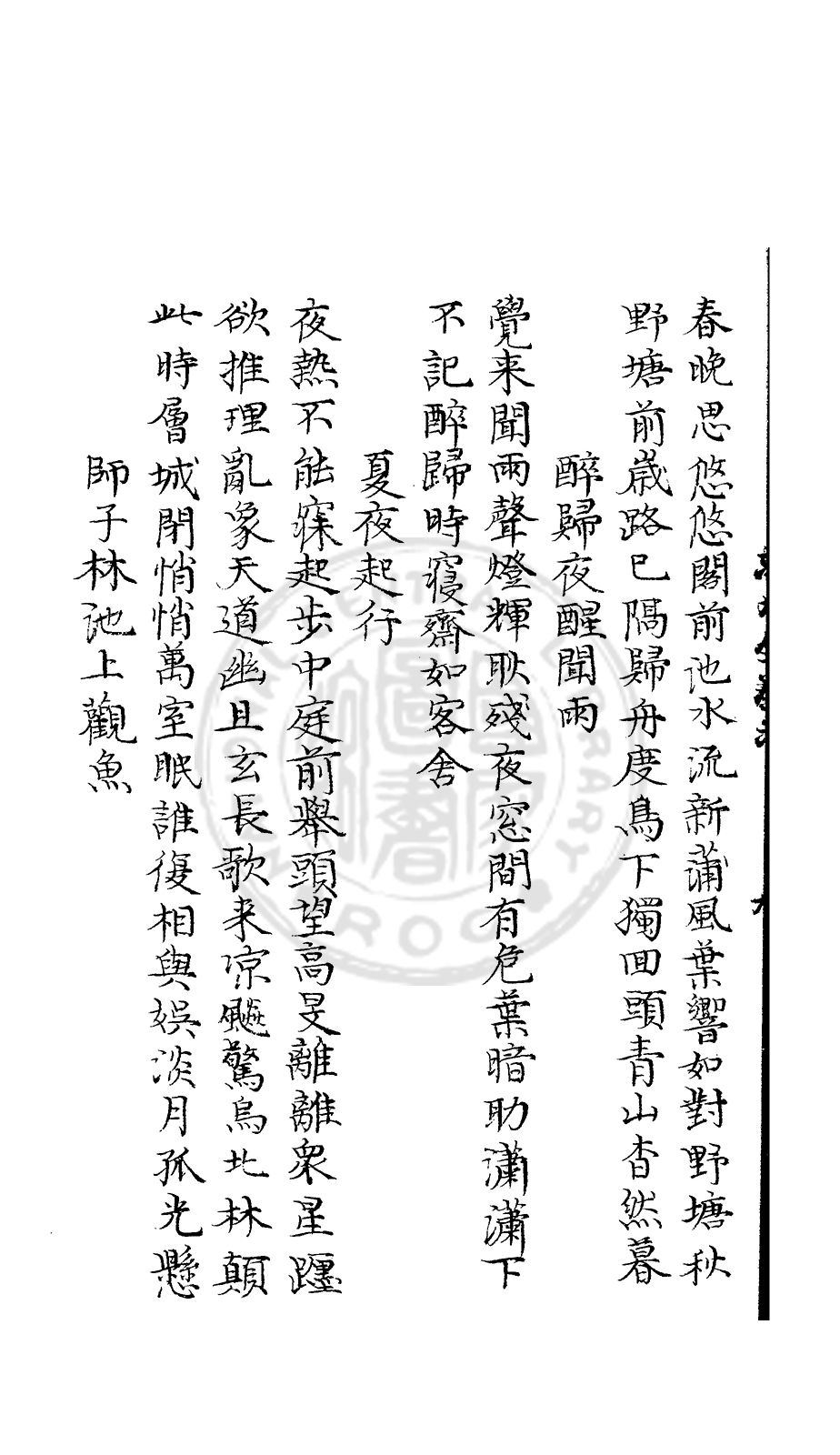 渺渺一逕兩陂間楊桞初發水潺湲驚魚忽散人影