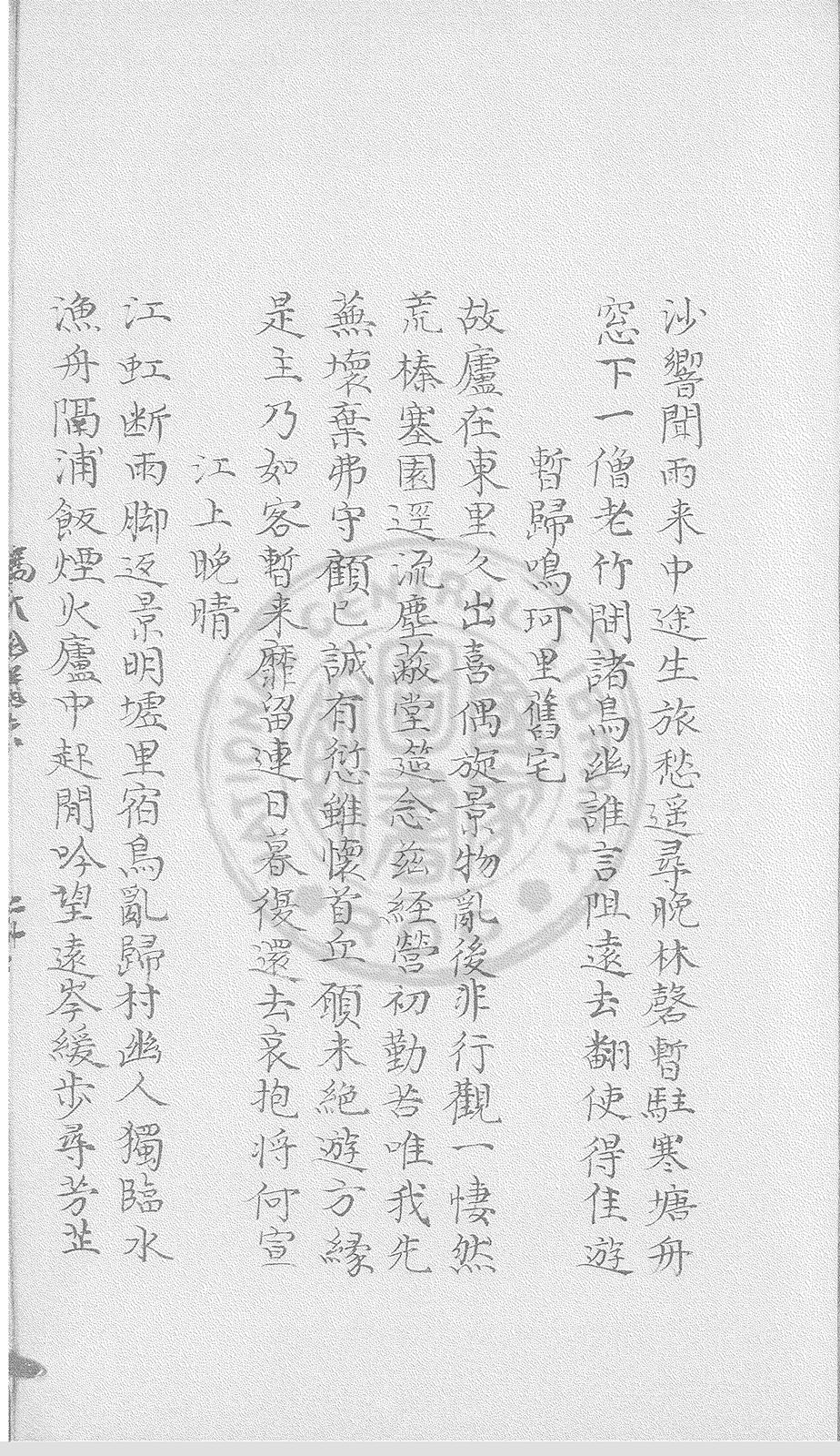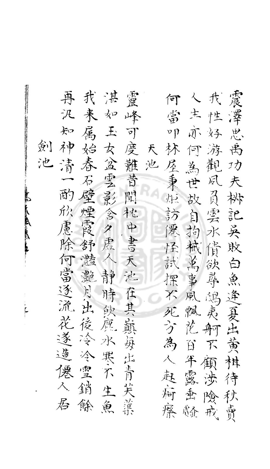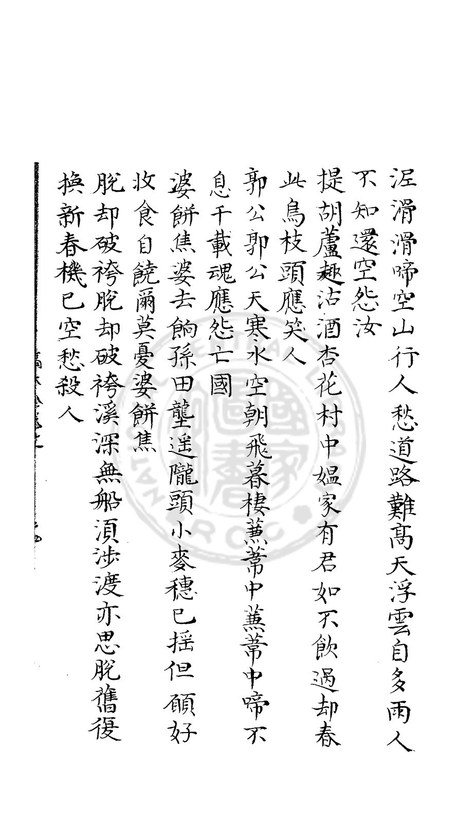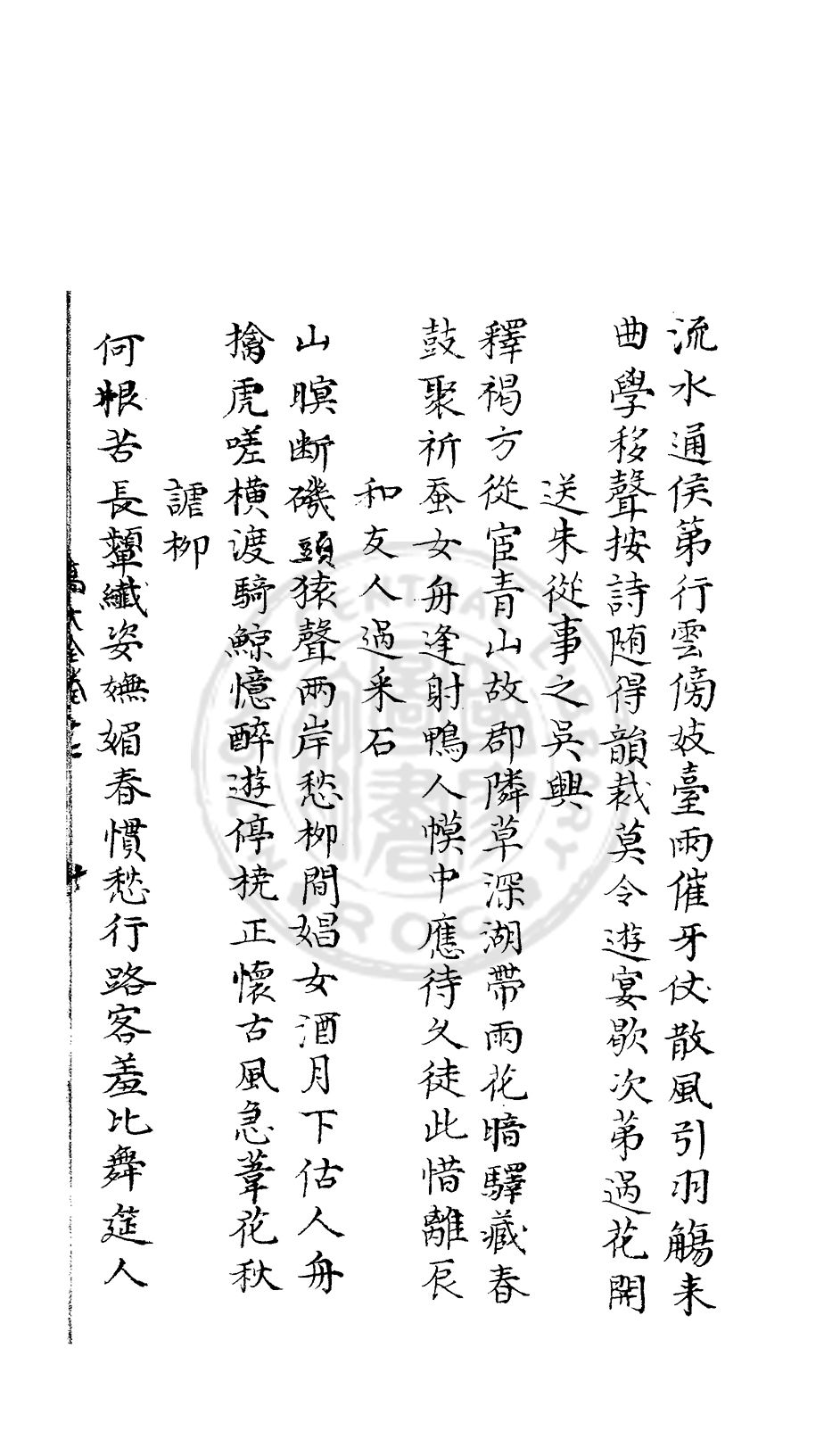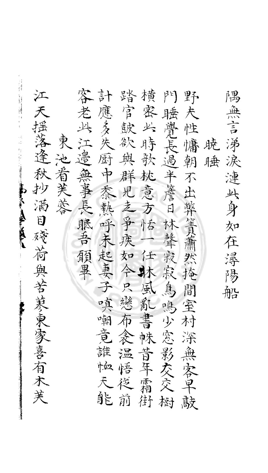渺渺一逕兩陂間楊桞初發水潺湲驚魚忽散人影