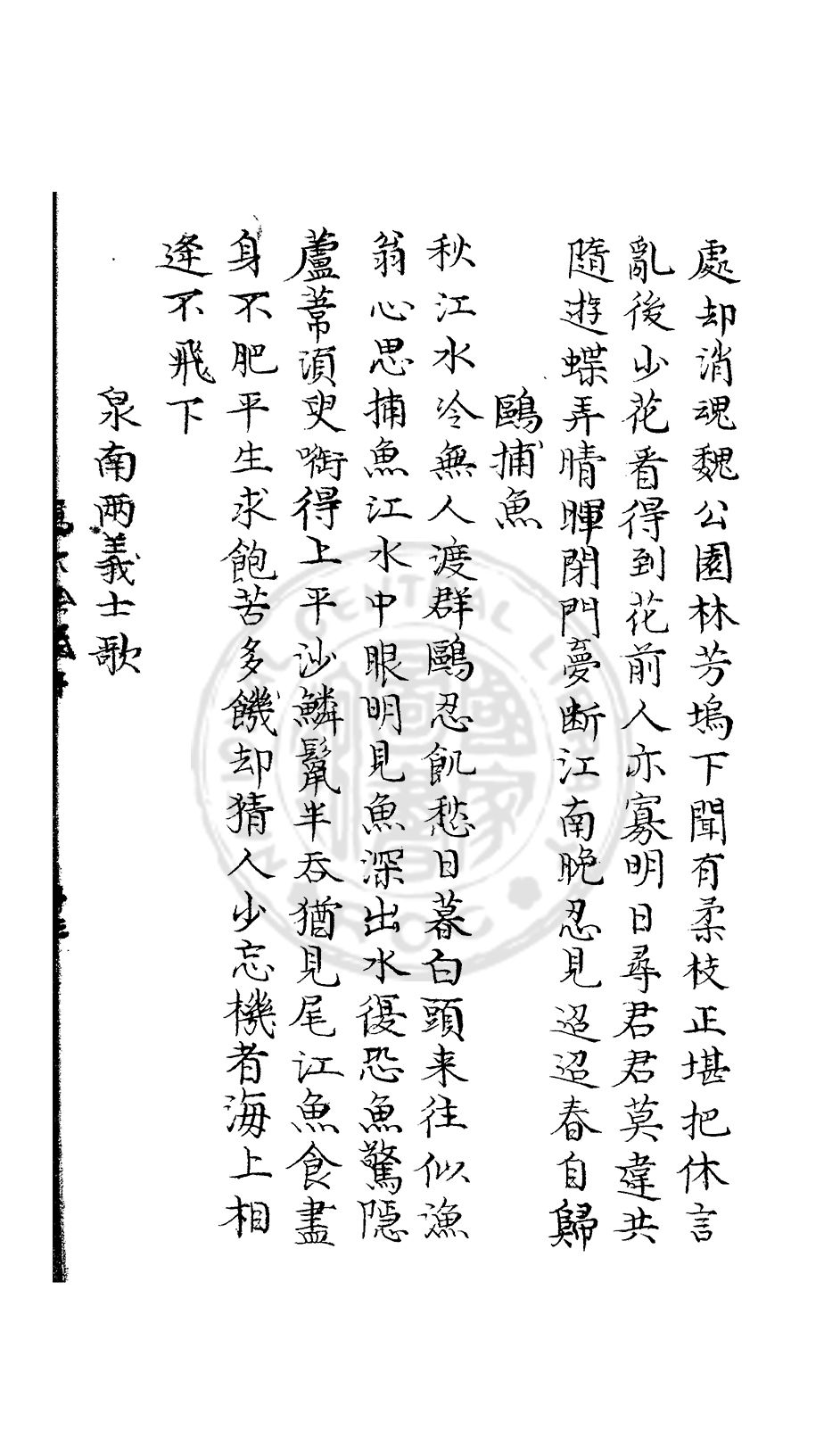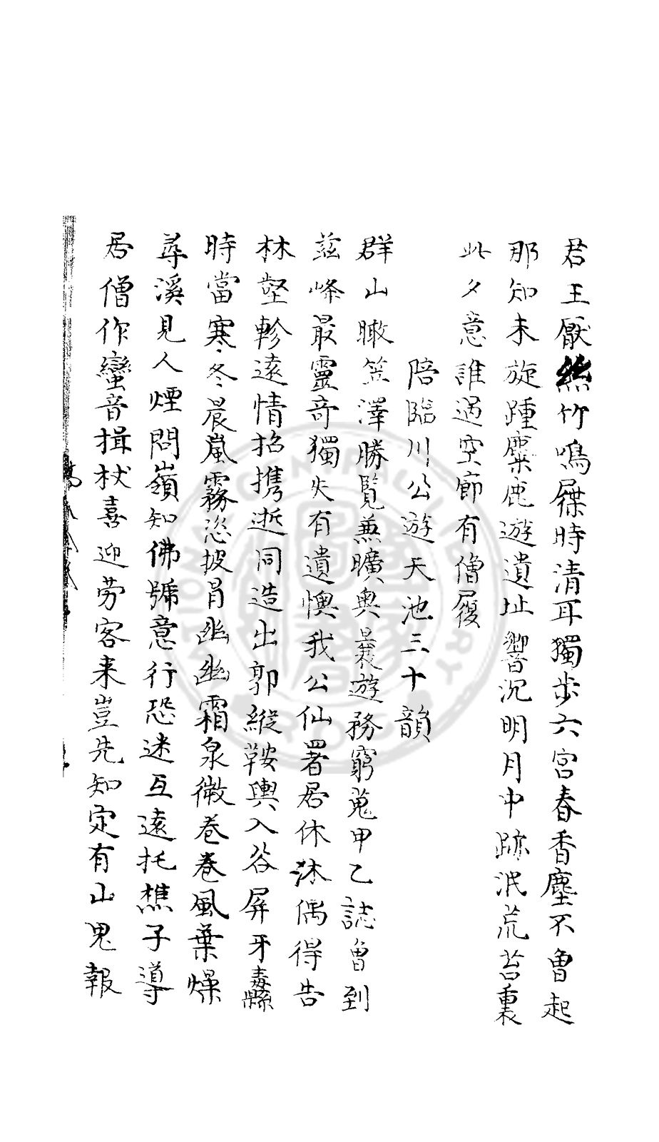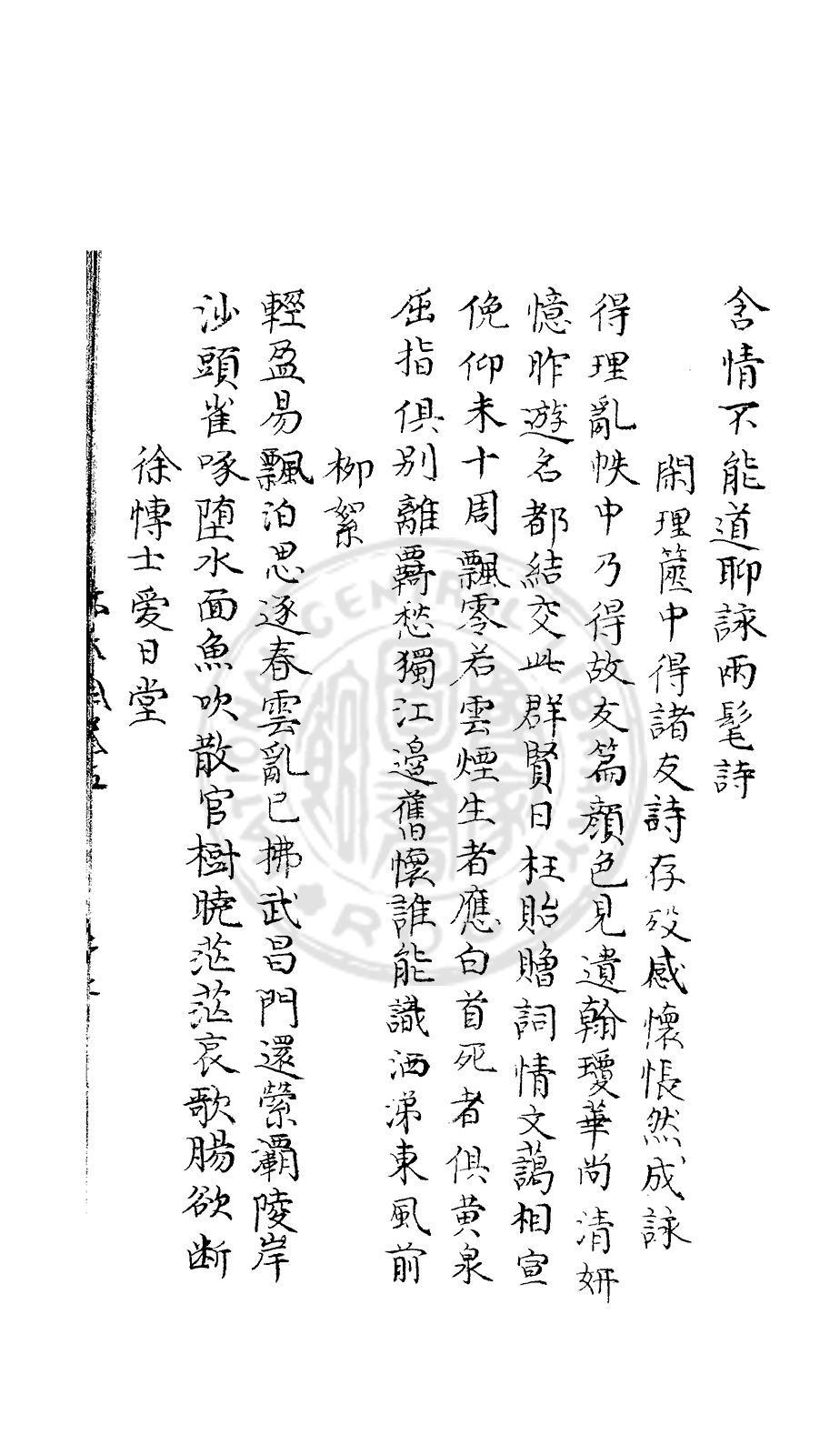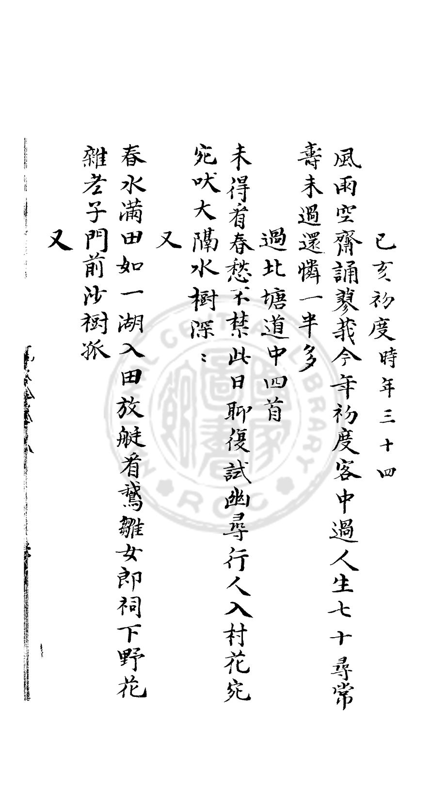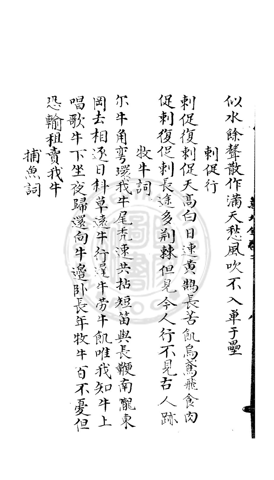 渺渺一逕兩陂間楊桞初發水潺湲驚魚忽散人影