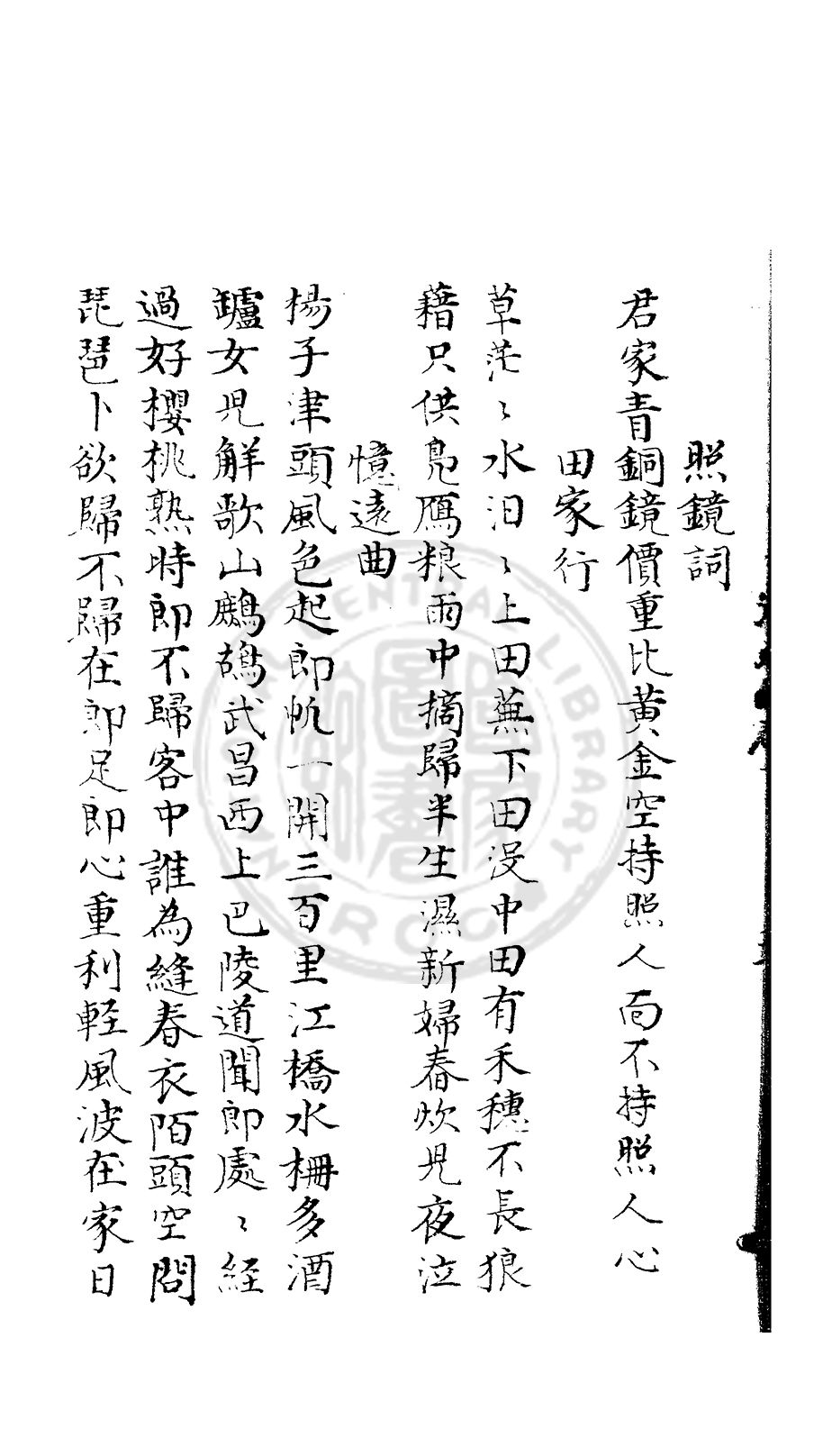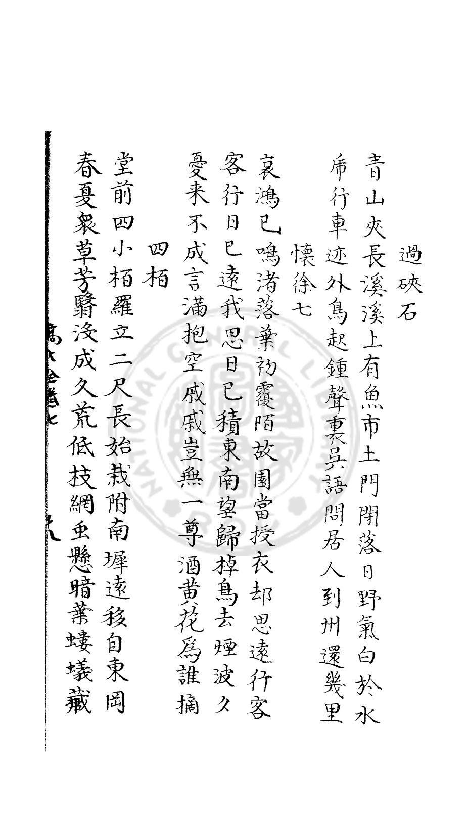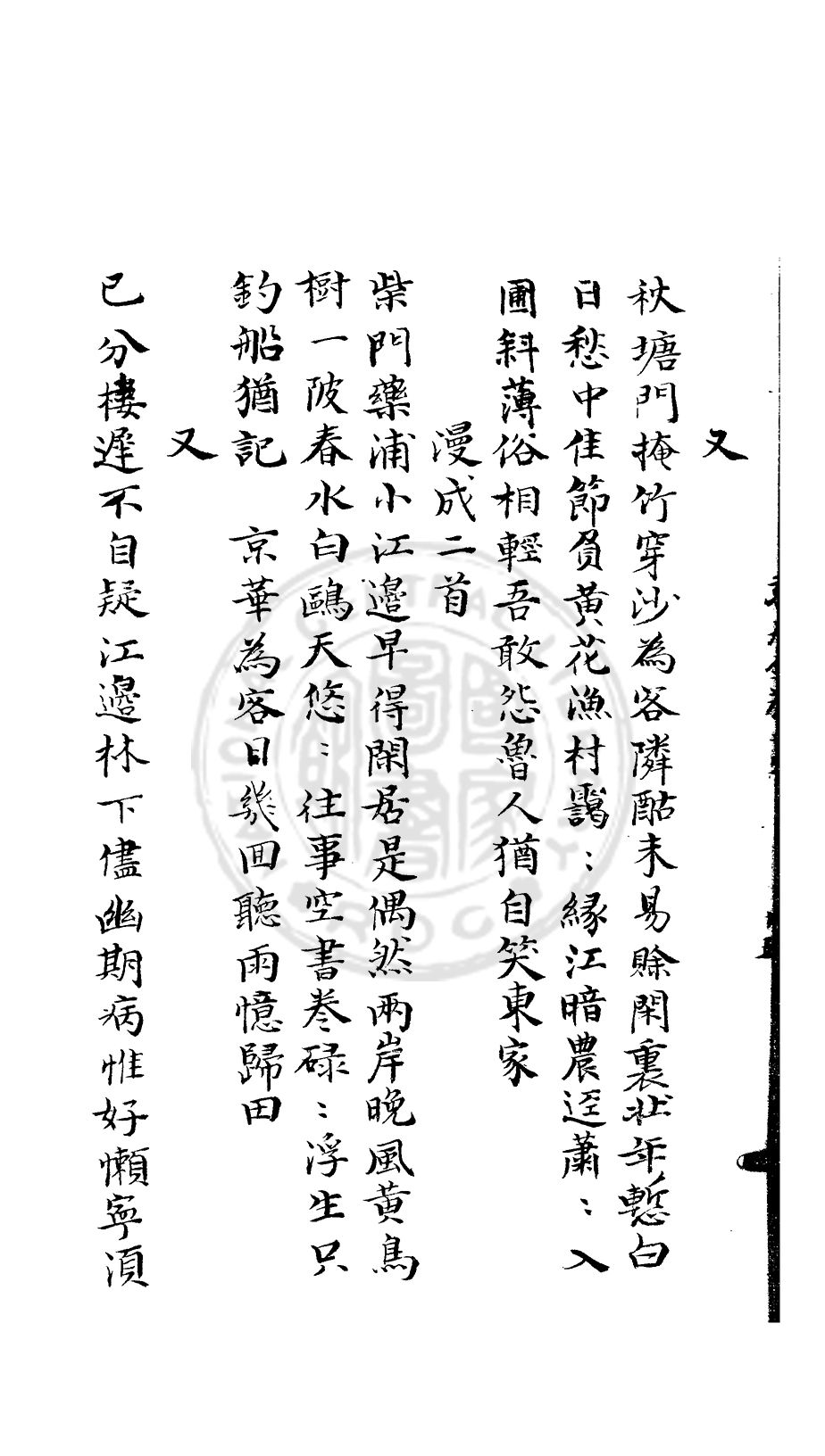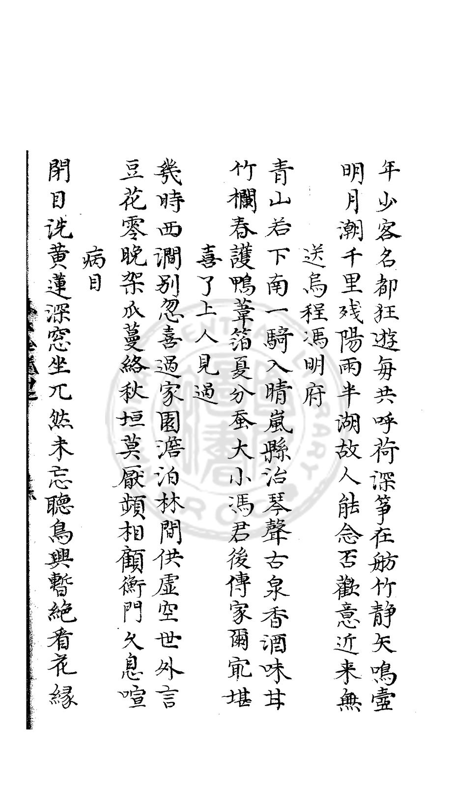渺渺一逕兩陂間楊桞初發水潺湲驚魚忽散人影