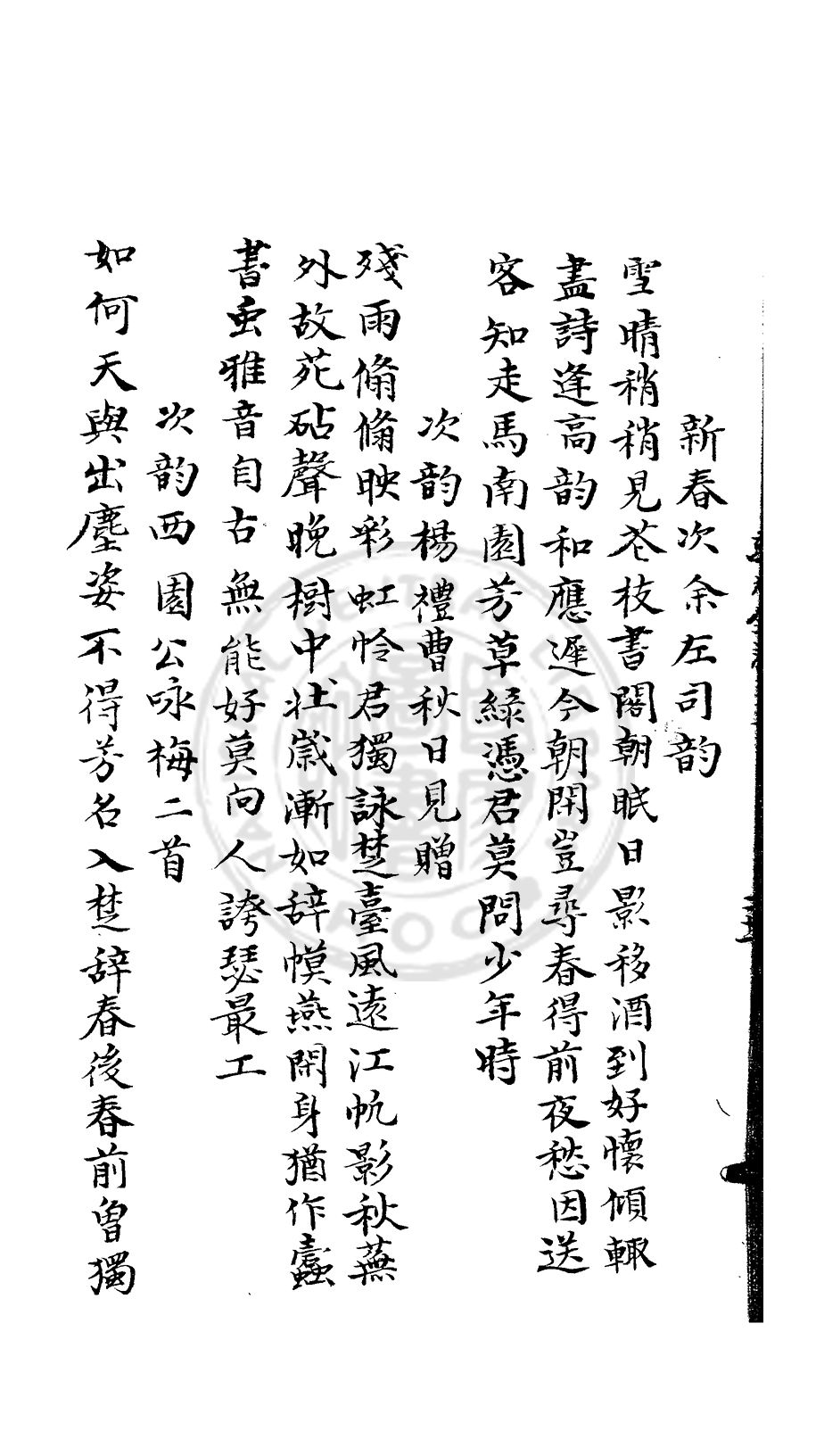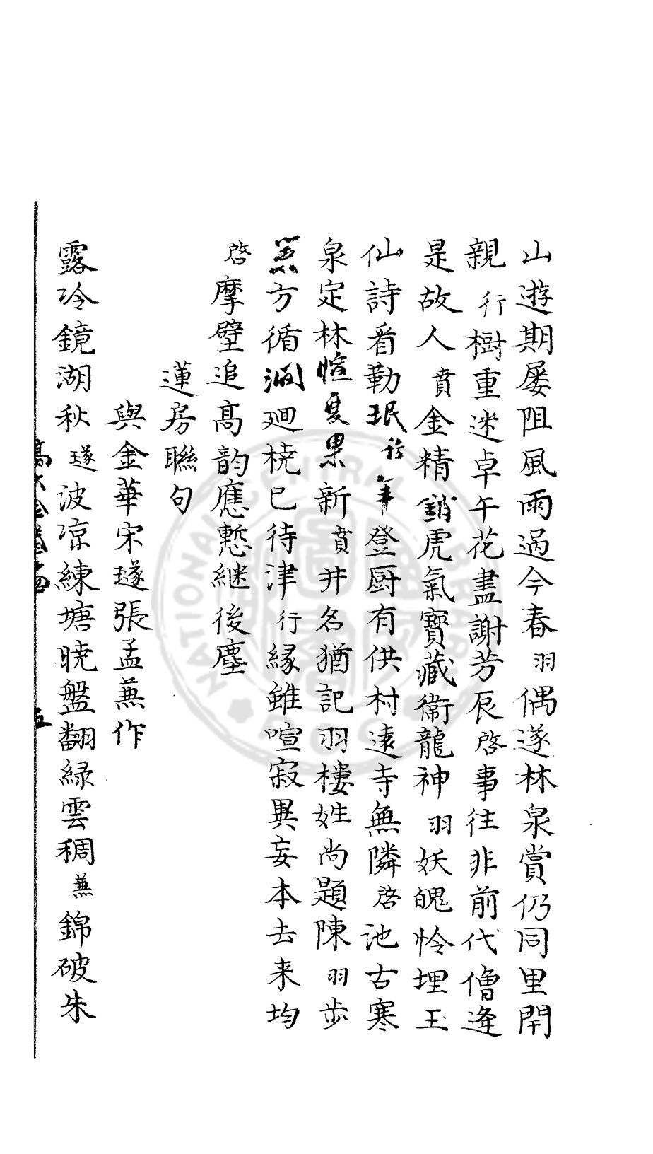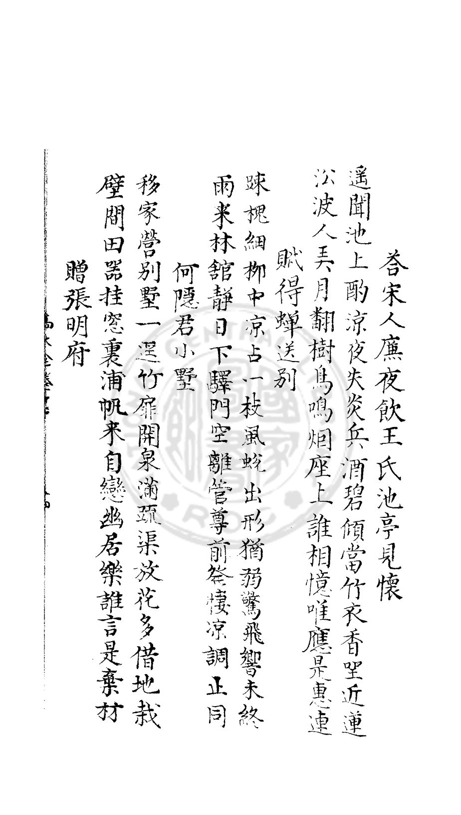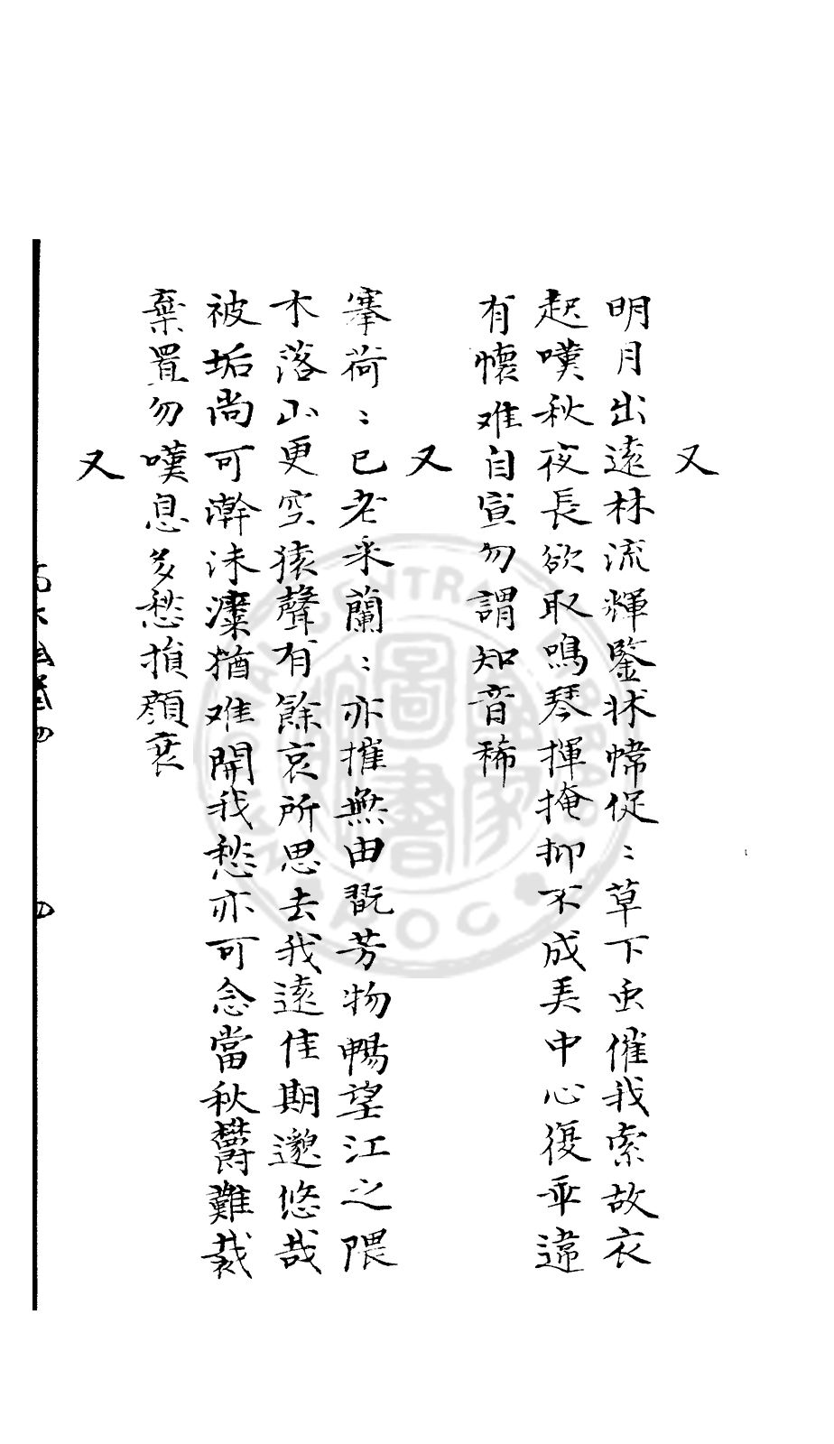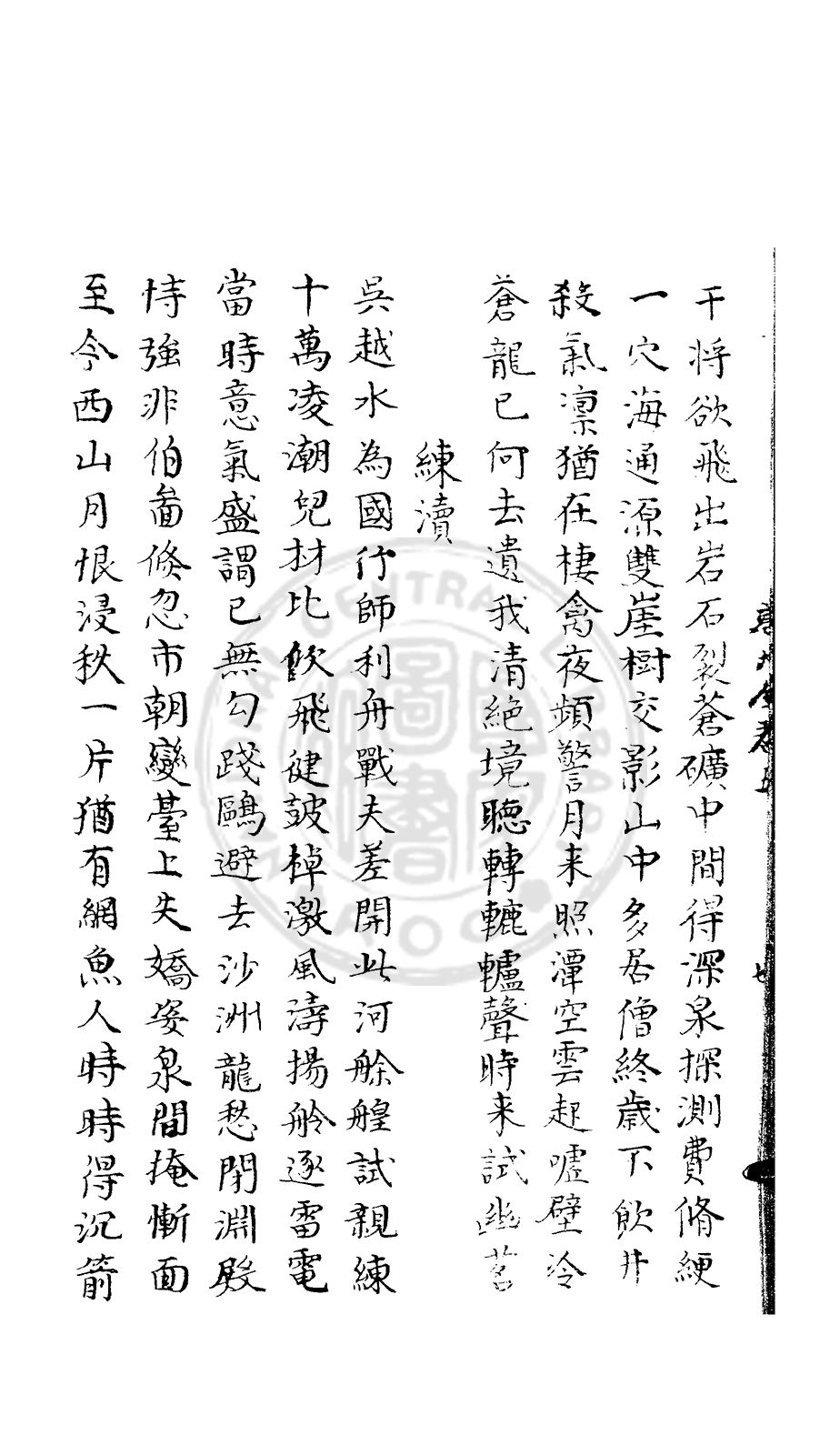 渺渺一逕兩陂間楊桞初發水潺湲驚魚忽散人影