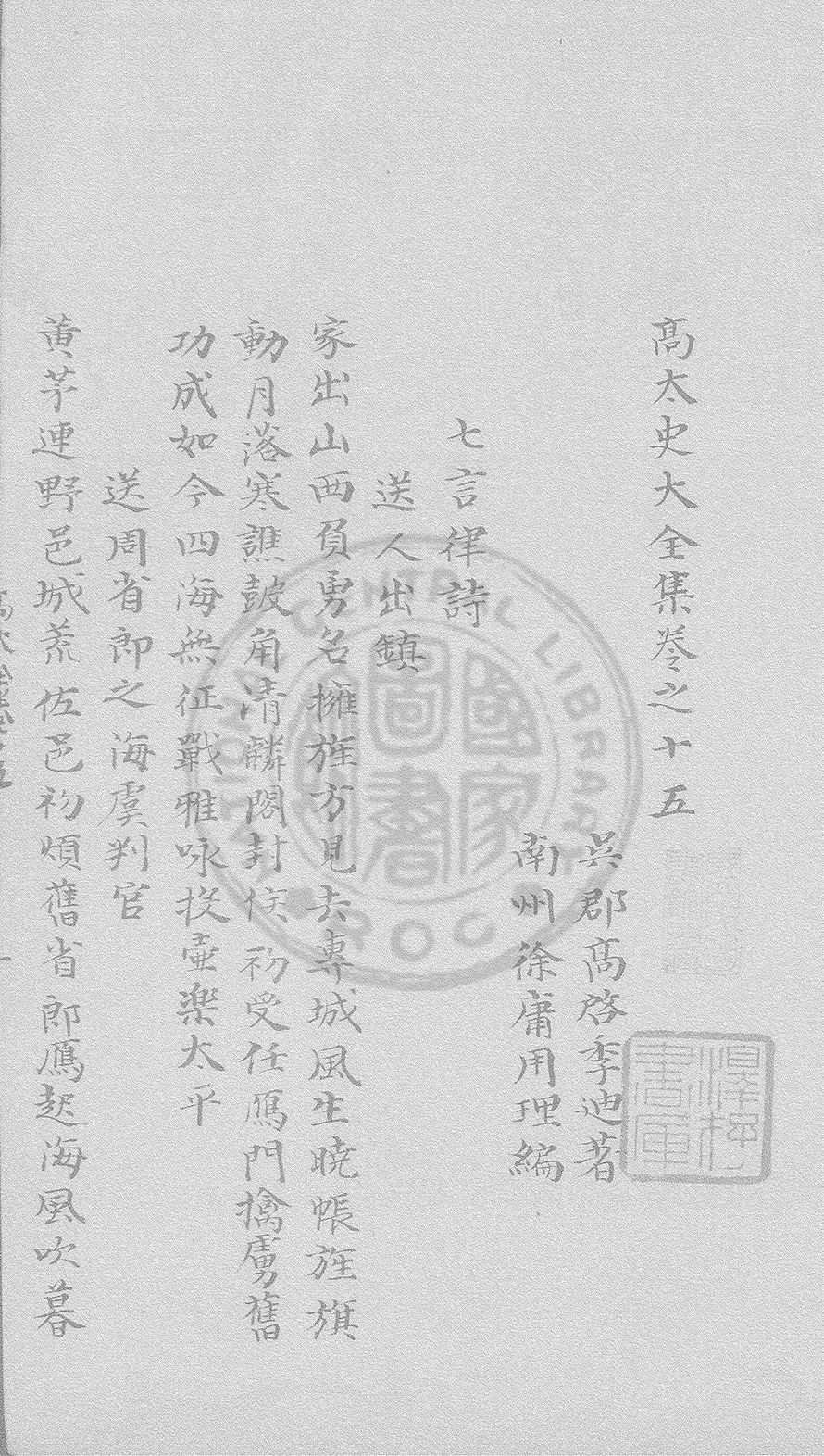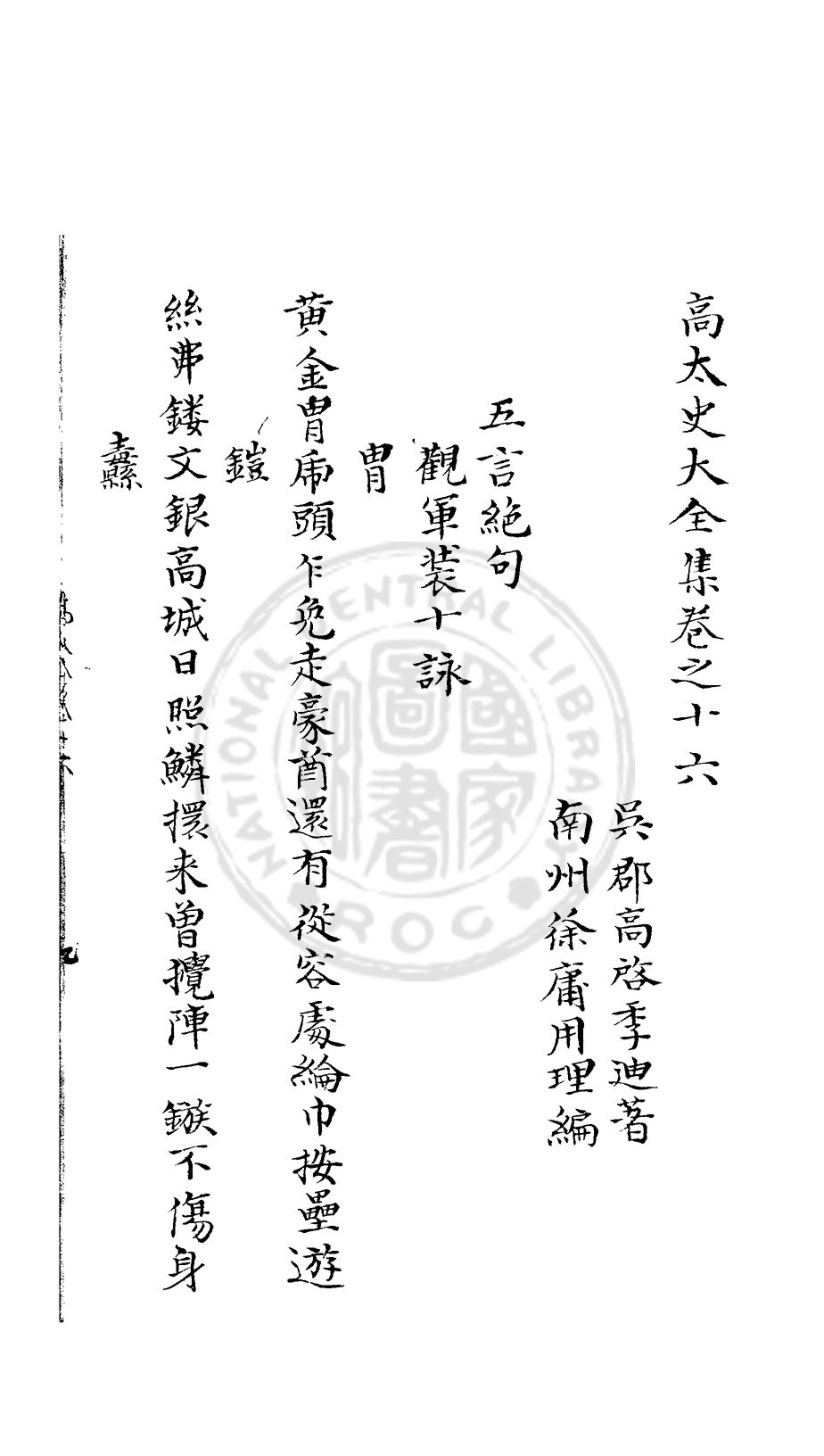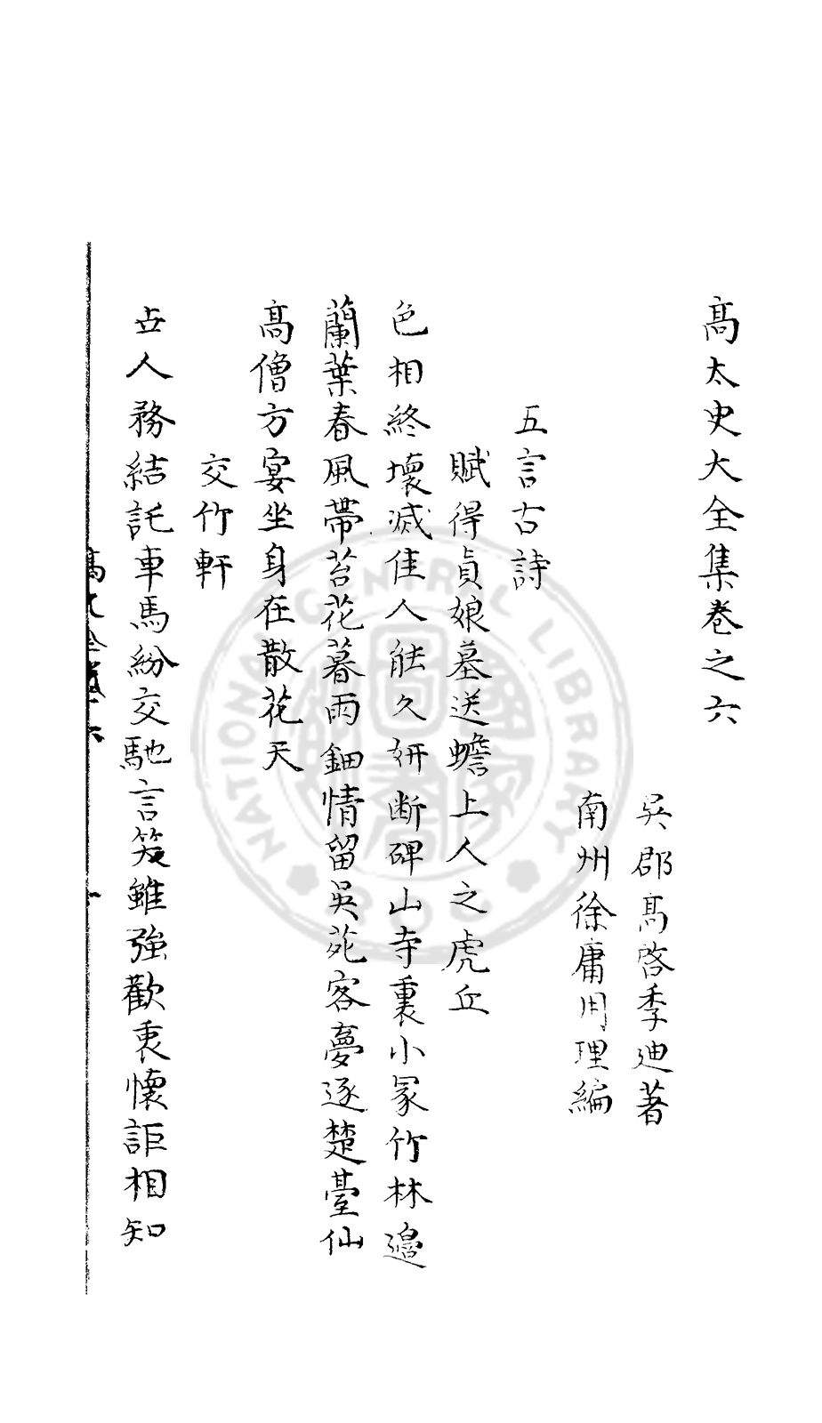 季迪之詩雋逸而清麗如秋空飛隼盤