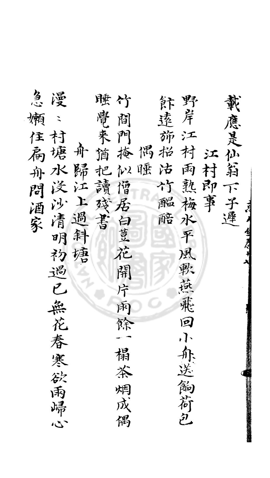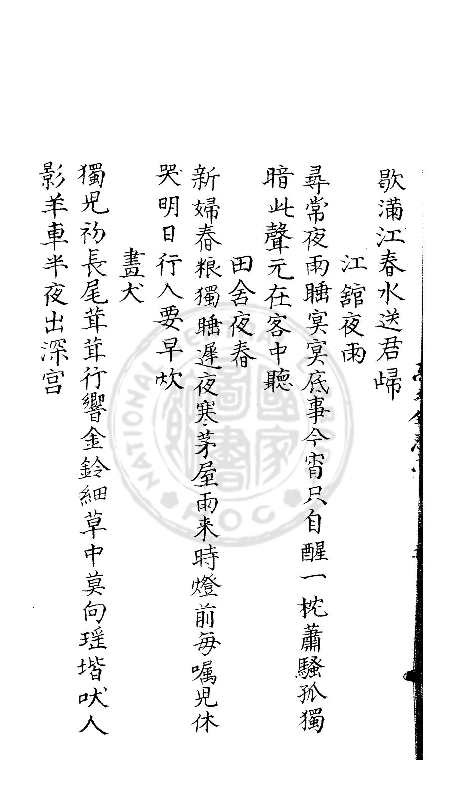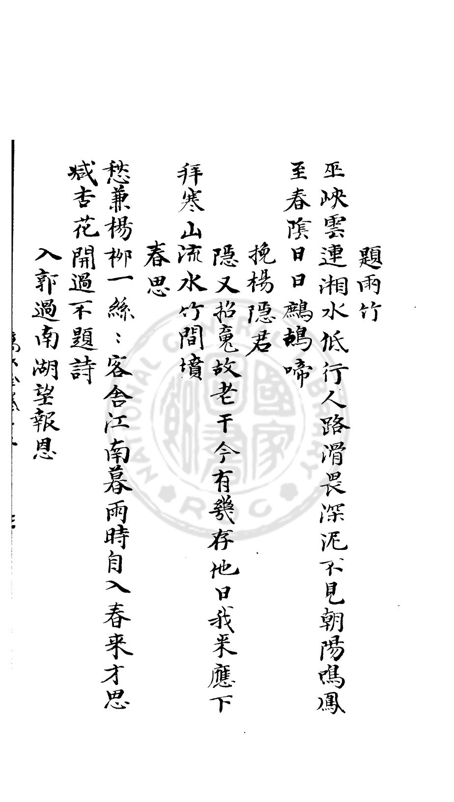 愁觧尋人不得辭小窓踈竹雨来時江湖今夜全家