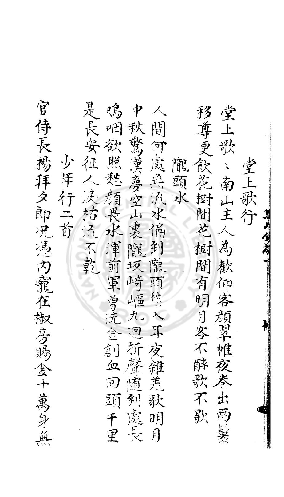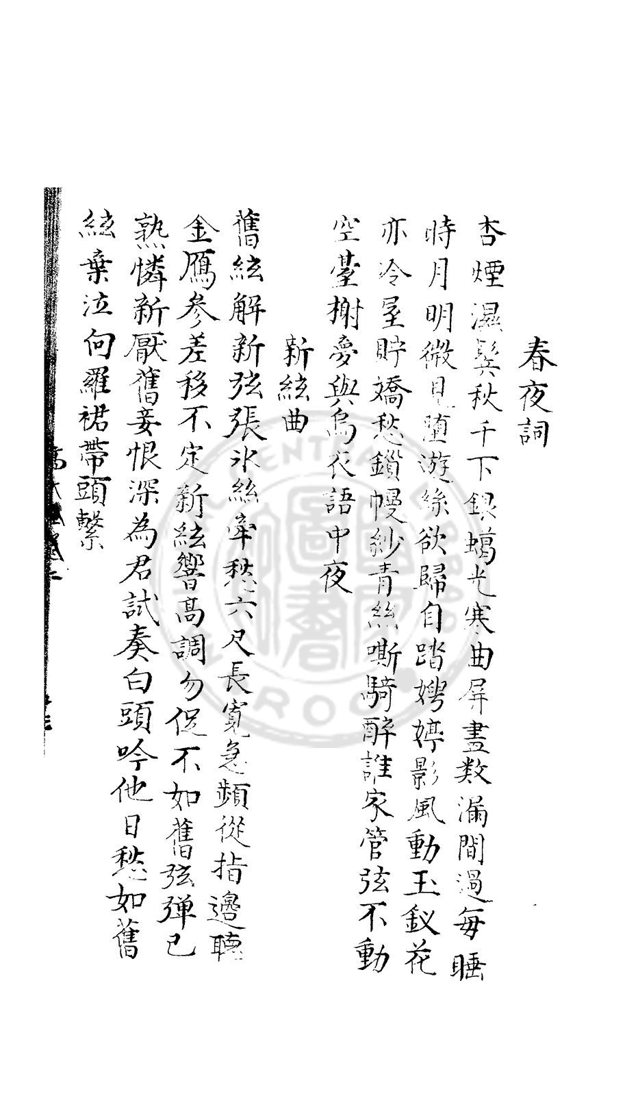 玉筝紅燭艶春羅慣向高堂聴汝歌今夕相逢爲重