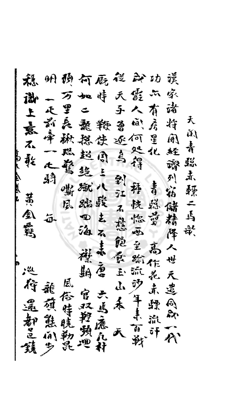 草草髯奴紺緑衣王家好馬詫新肥觧鞍閑立斜陽