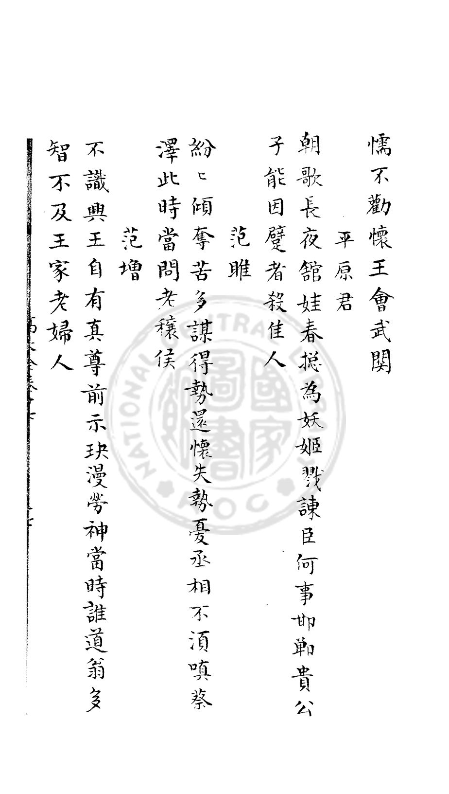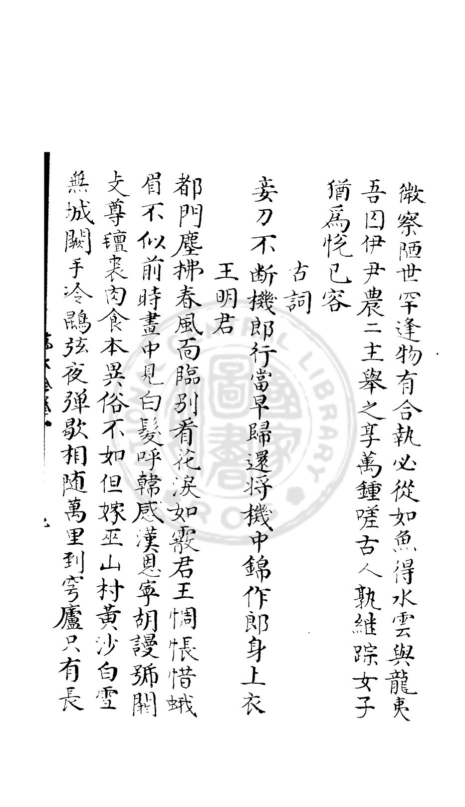 天上麒麟去莫覊千年亭上夕風悲勸君不用情鍾