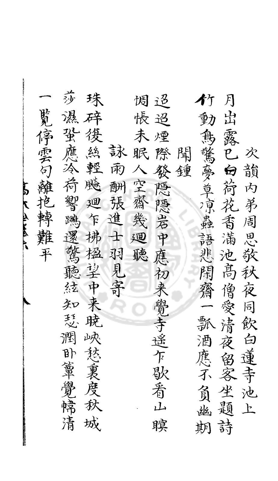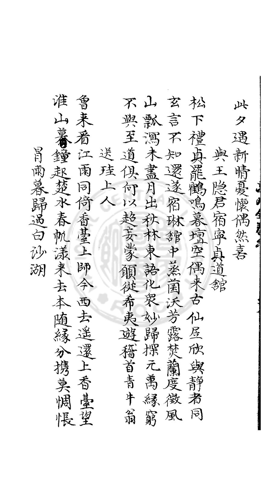東津渡頭初月輝南陵寺裏逺鍾微主人入夜門未
