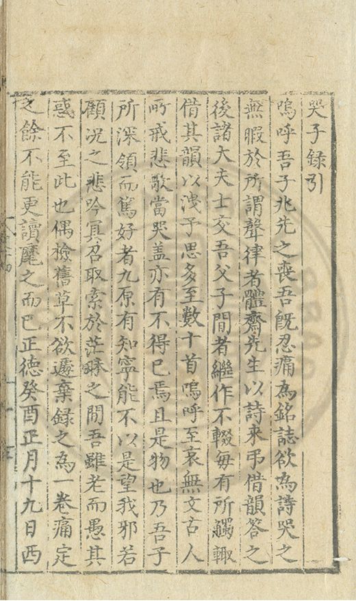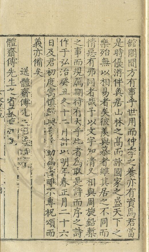 正德戊寅十二月朔旦門生京江