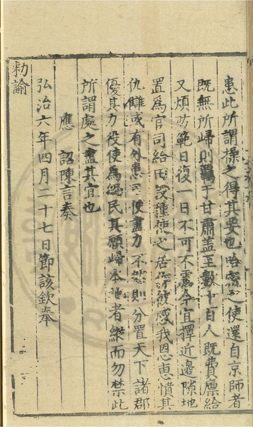 皇上遣内臣頒賜 勑諭一道新鈔三千貫銀五十