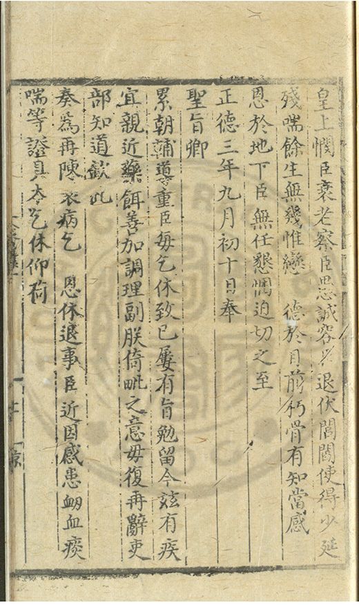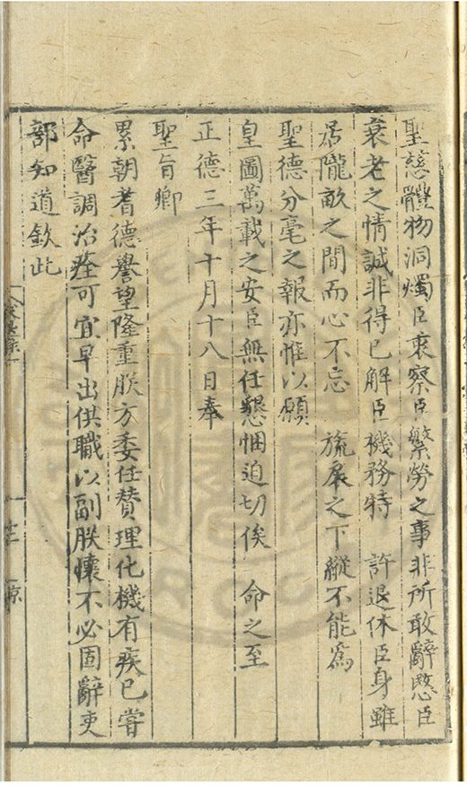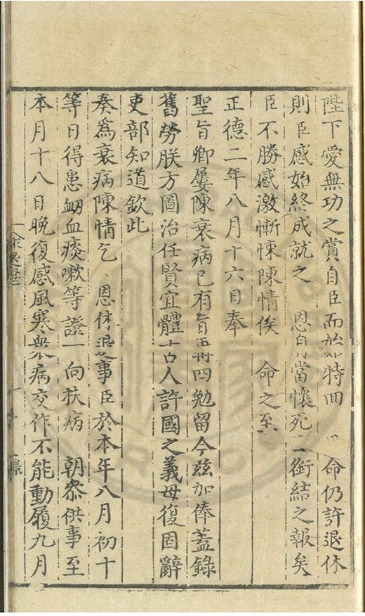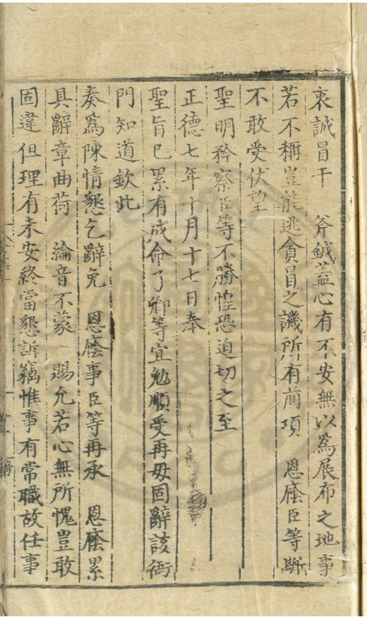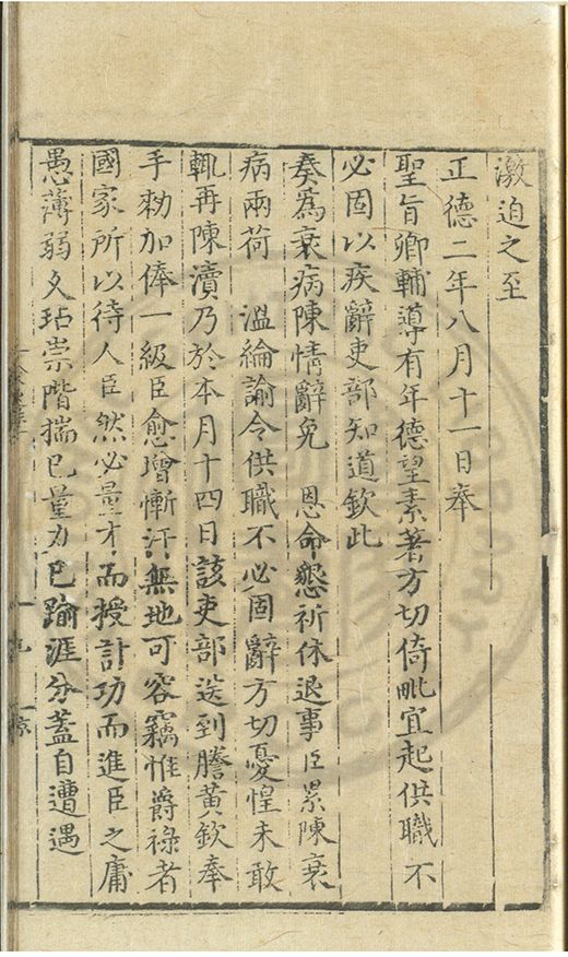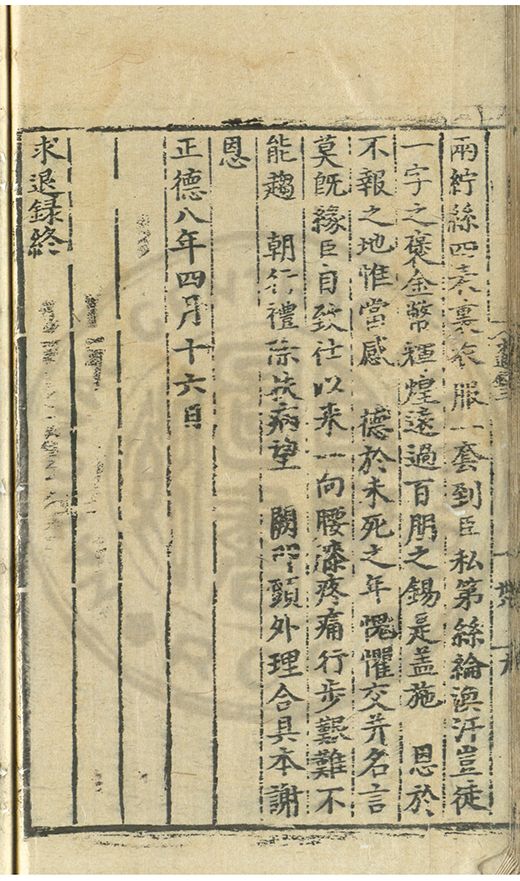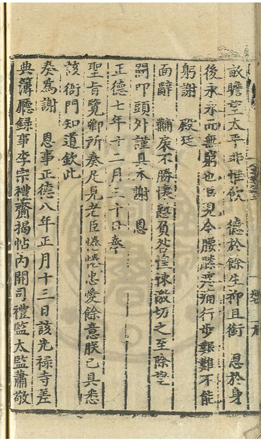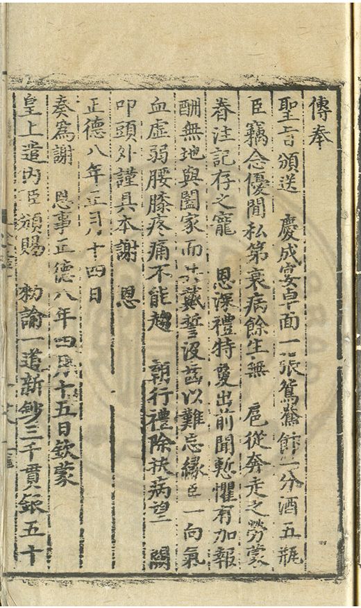 奏爲謝 恩事正德八年四月十五日欽蒙