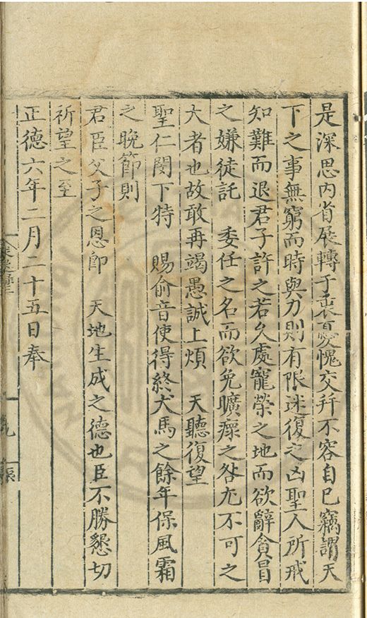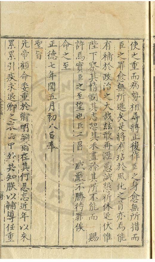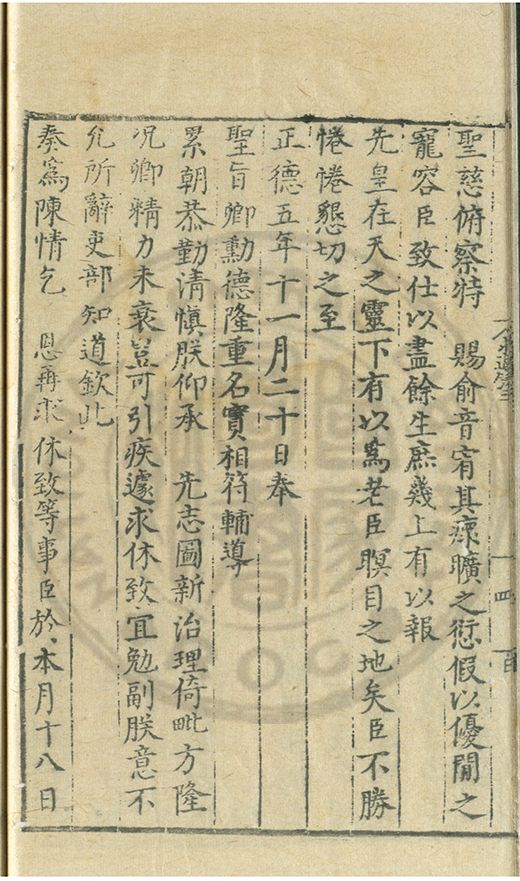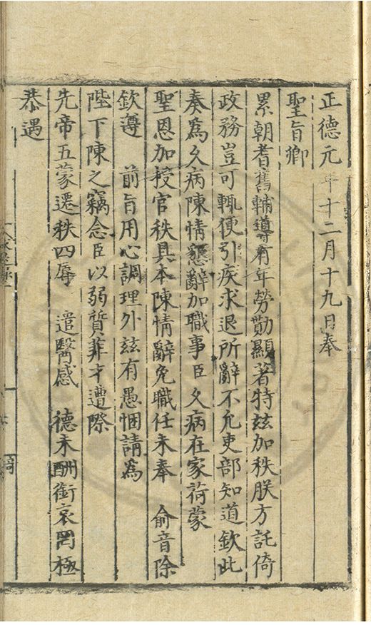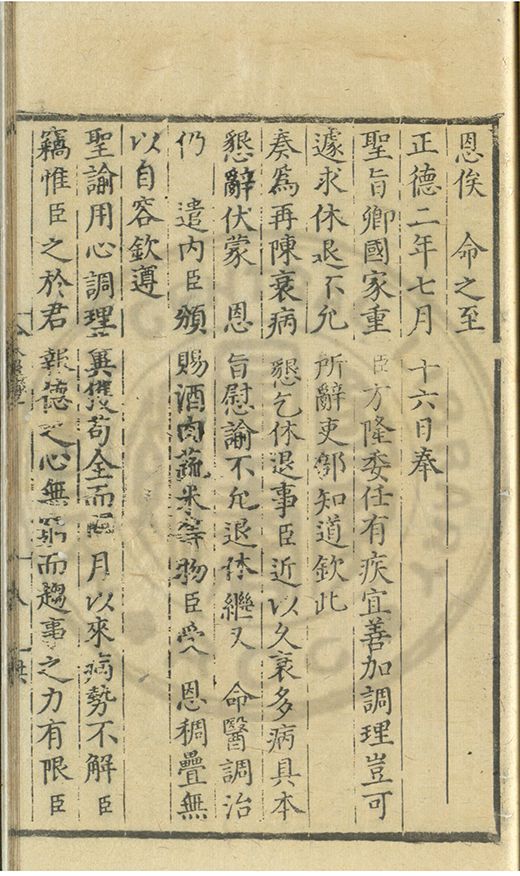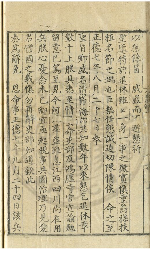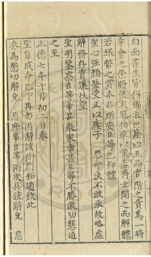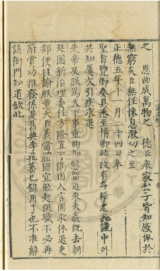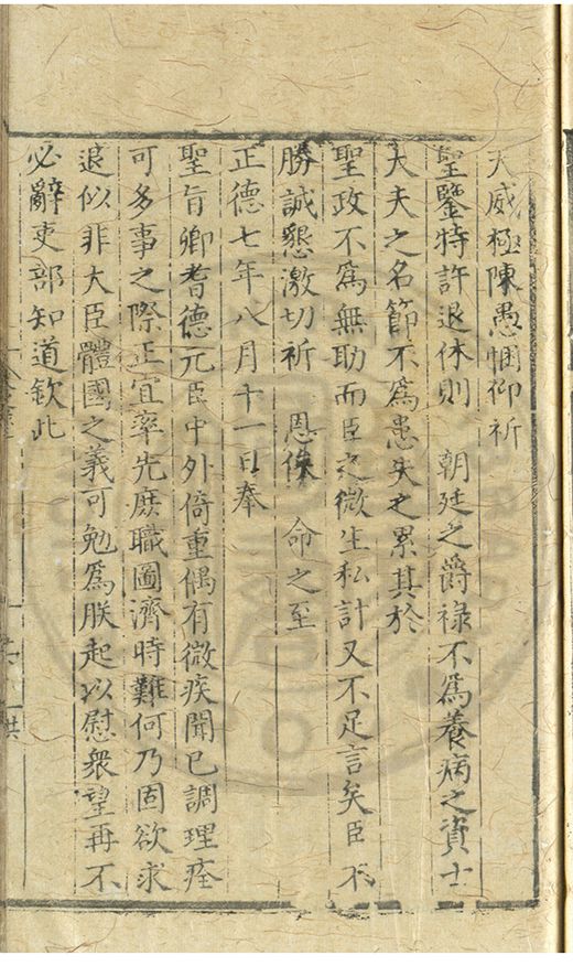 奏爲謝 恩事正德八年四月十五日欽蒙