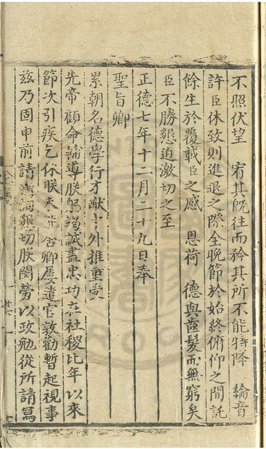 正德七年十二月三十日奉