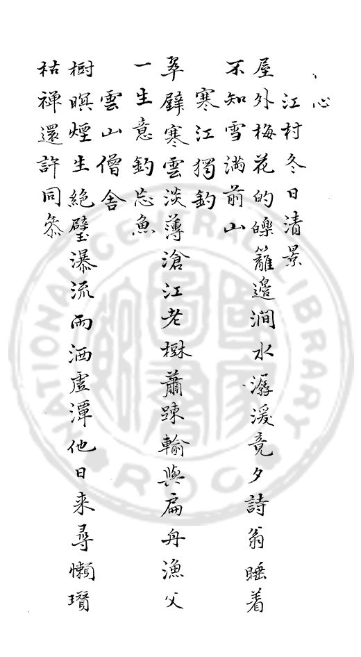 屋外梅花的皪籬邉澗水潺湲竟夕詩翁睡着