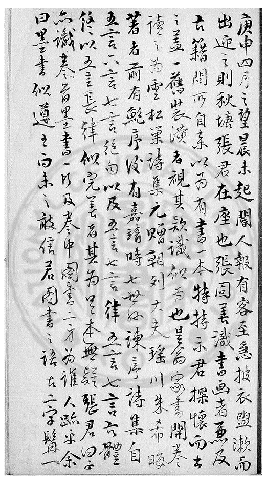 庚申四月之望晨未起閽人報有客至急披衣盥漱而