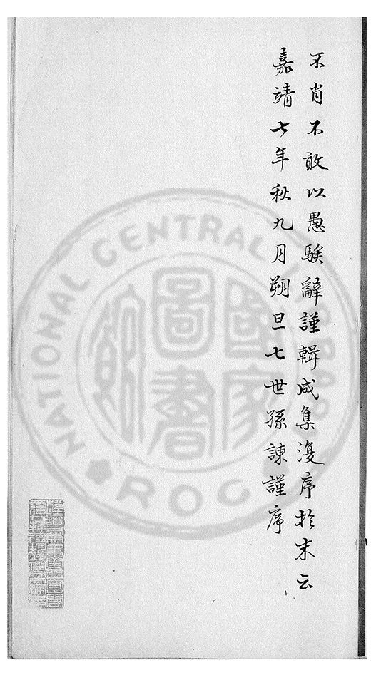 嘉靖七年秋九月朔旦七世孫諫謹序