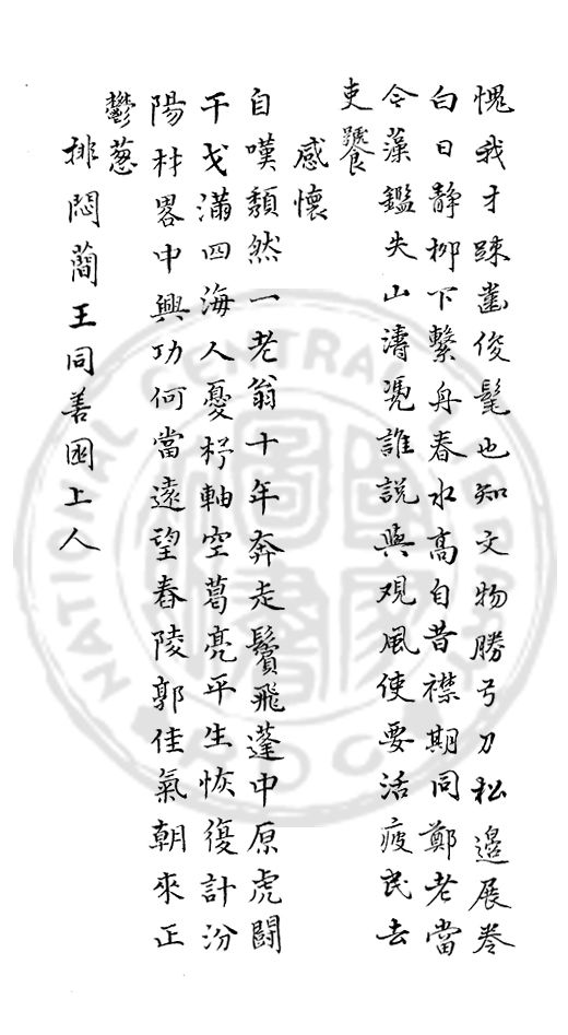灣詩八首而楮尾先生自署姓名惟予謹圭誦