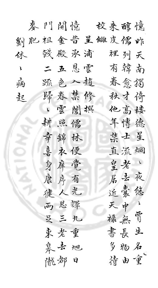廻膓公子多文翰天葩壓眾芳朝廷崇礼樂歌
