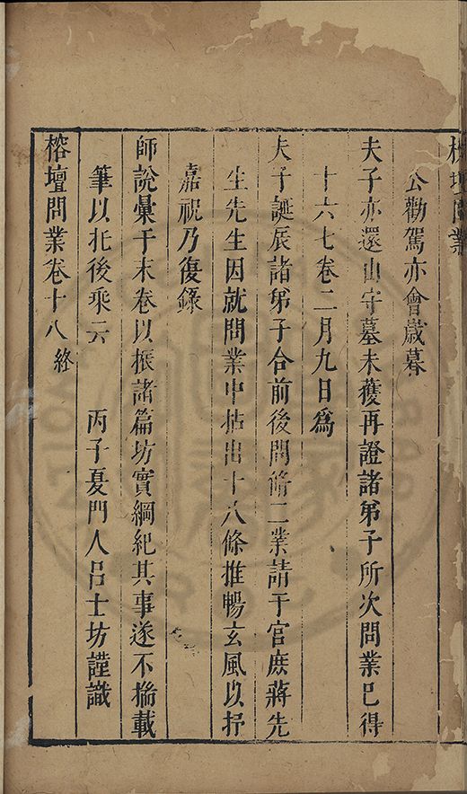 筆以托後乘云 丙子夏門人吕士坊謹識