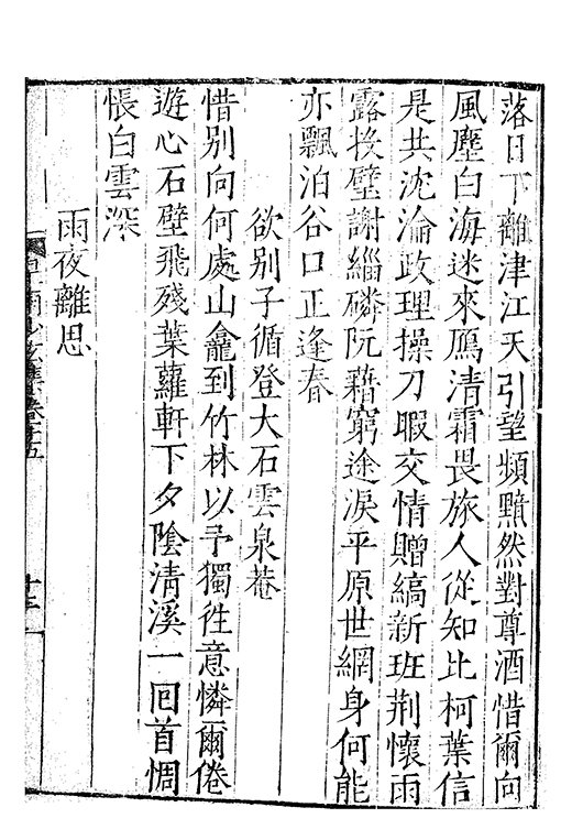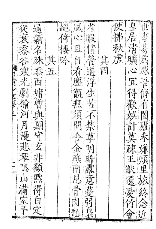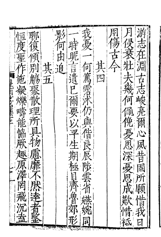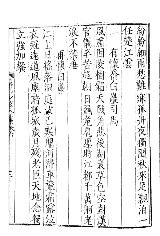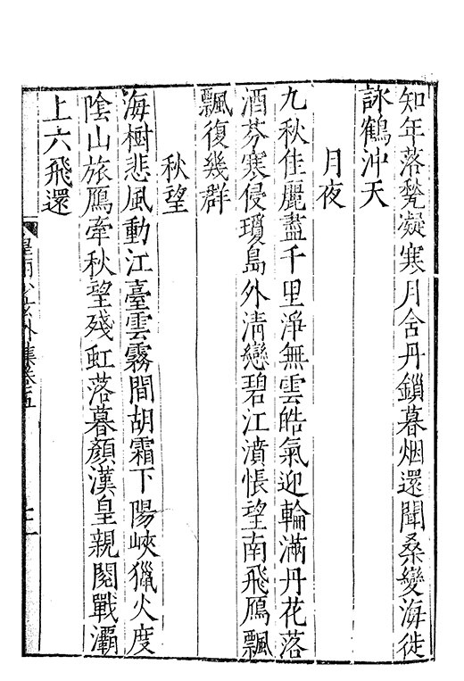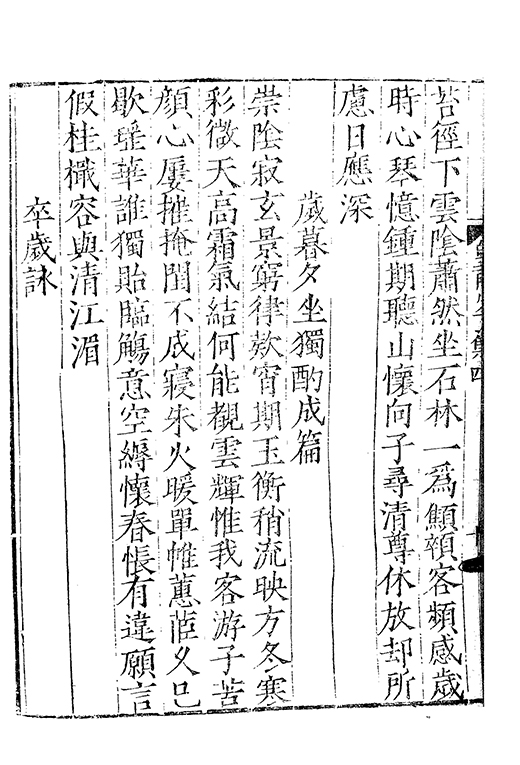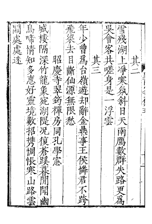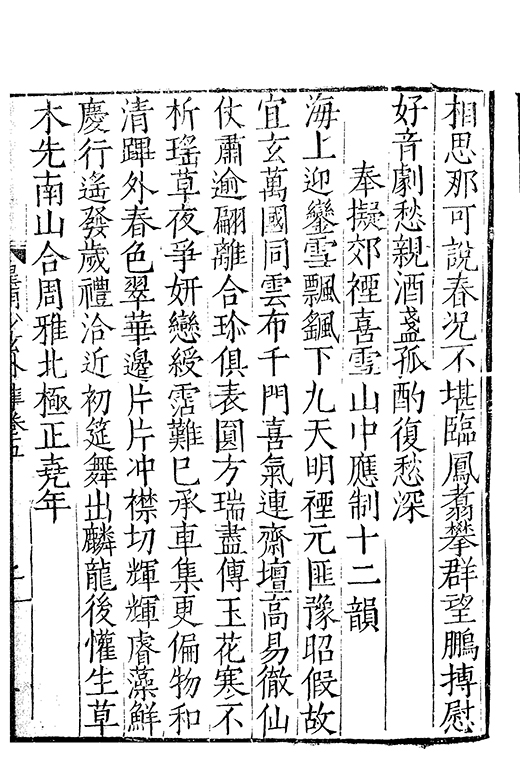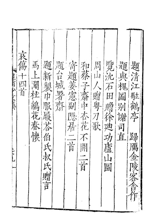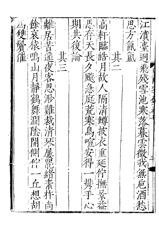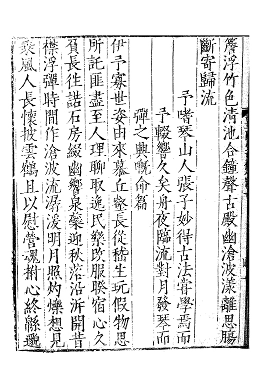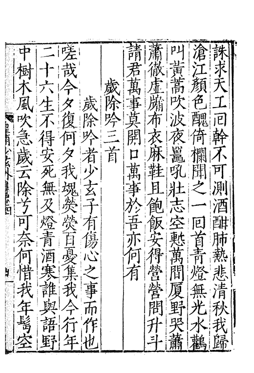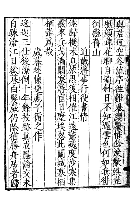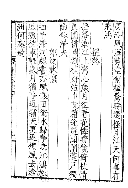 未有知者及既蒙嘉運矯迹崇賢稍與時軰相逐然終非其好盖自居先大夫憂巳盡詘時品而獨持上躅矣夫精于義者不繫乎物知所止者不同于流而彼竊小知以附閎議其奈之何今試舉其一二如雪意煩辭髪江流倩浣膓如啣魚上水鳥驚燕落橋花類皆少陵之靡妙雖集多不載猶可別傳兄嘗同為秋讌寒夜之作許與