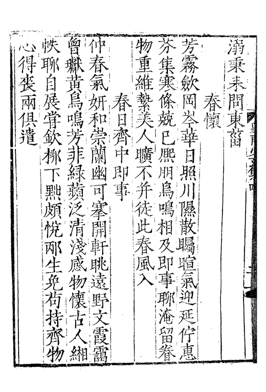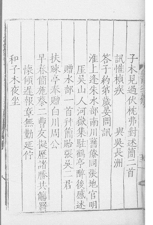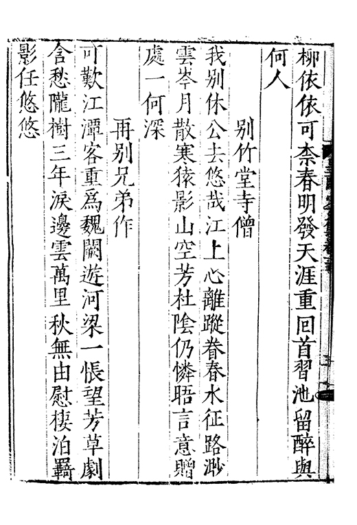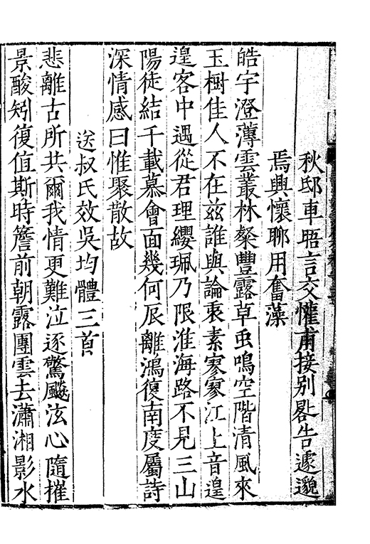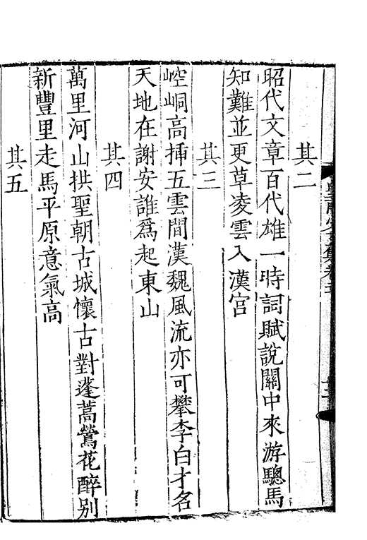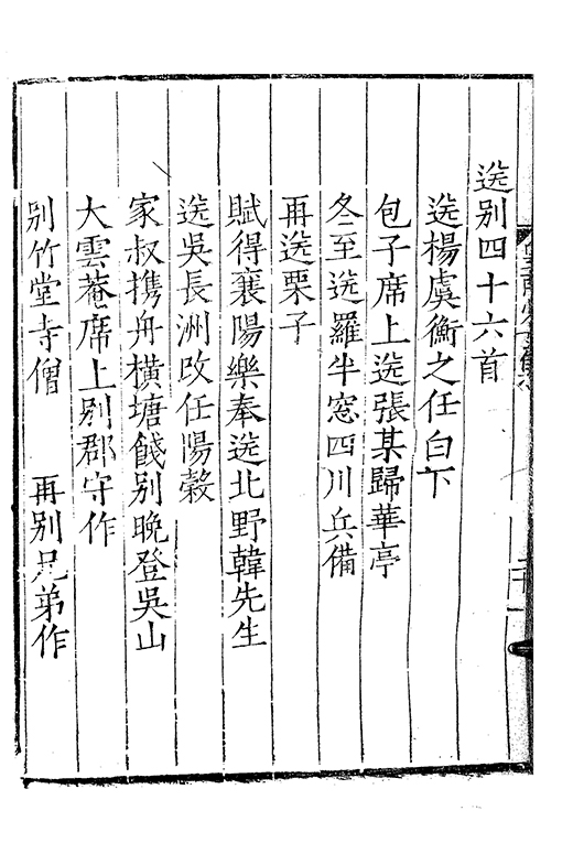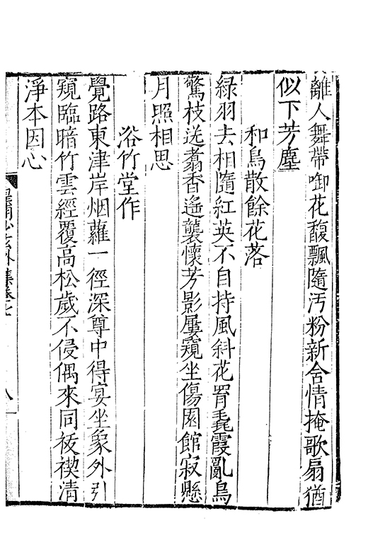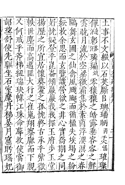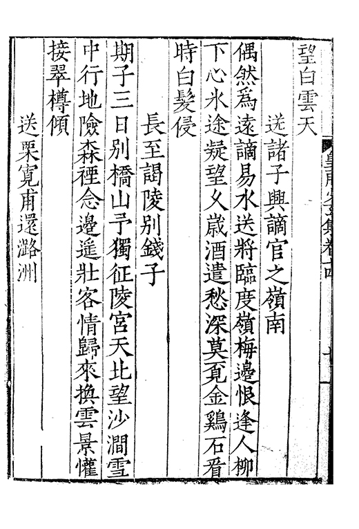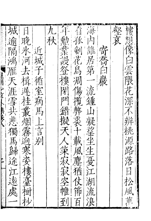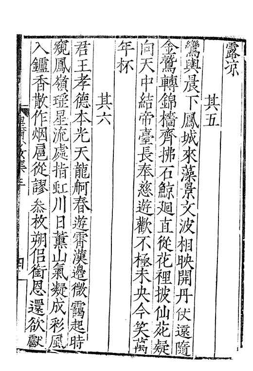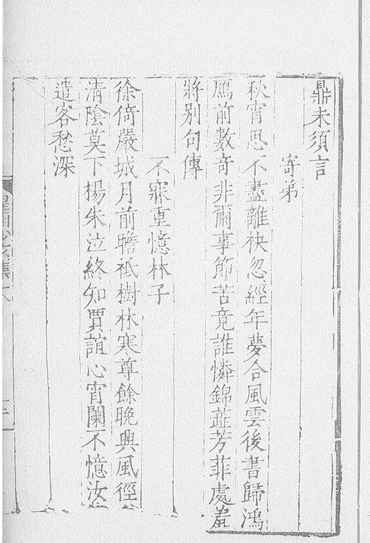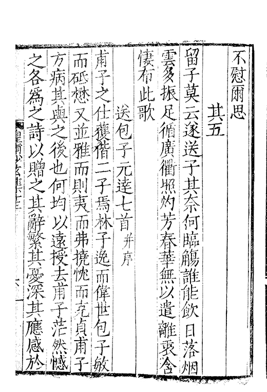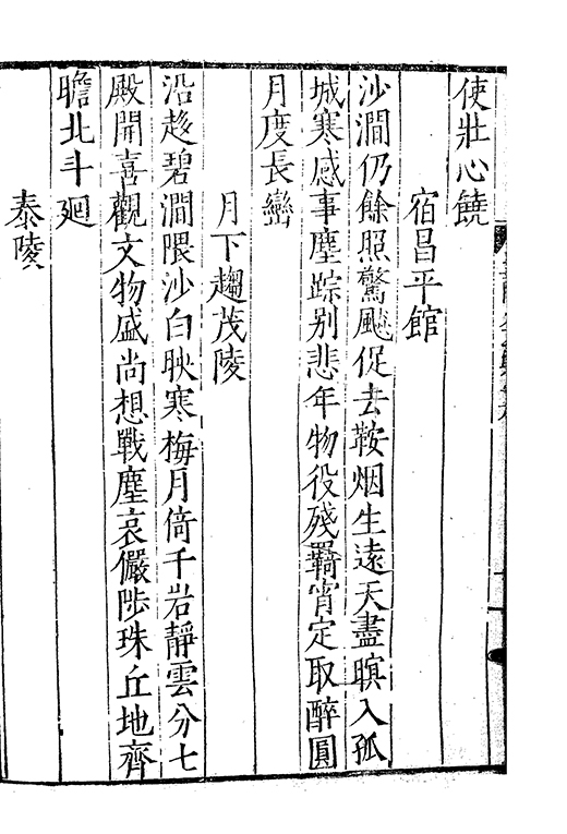 未有知者及既蒙嘉運矯迹崇賢稍與時軰相逐然終非其好盖自居先大夫憂巳盡詘時品而獨持上躅矣夫精于義者不繫乎物知所止者不同于流而彼竊小知以附閎議其奈之何今試舉其一二如雪意煩辭髪江流倩浣膓如啣魚上水鳥驚燕落橋花類皆少陵之靡妙雖集多不載猶可別傳兄嘗同為秋讌寒夜之作許與