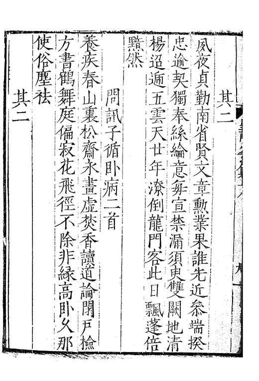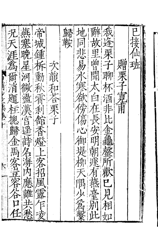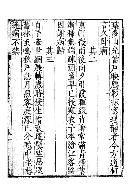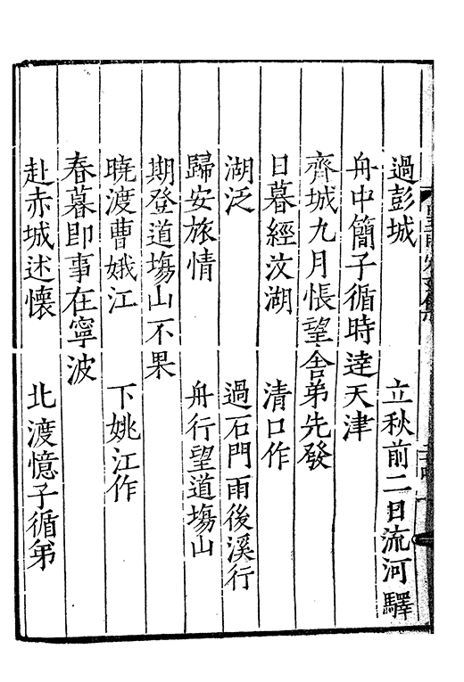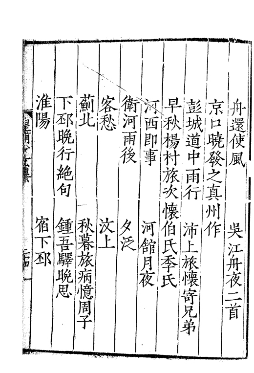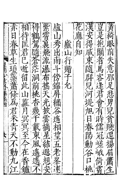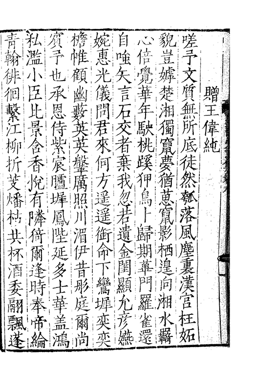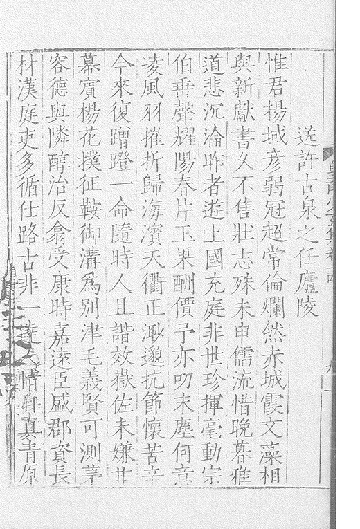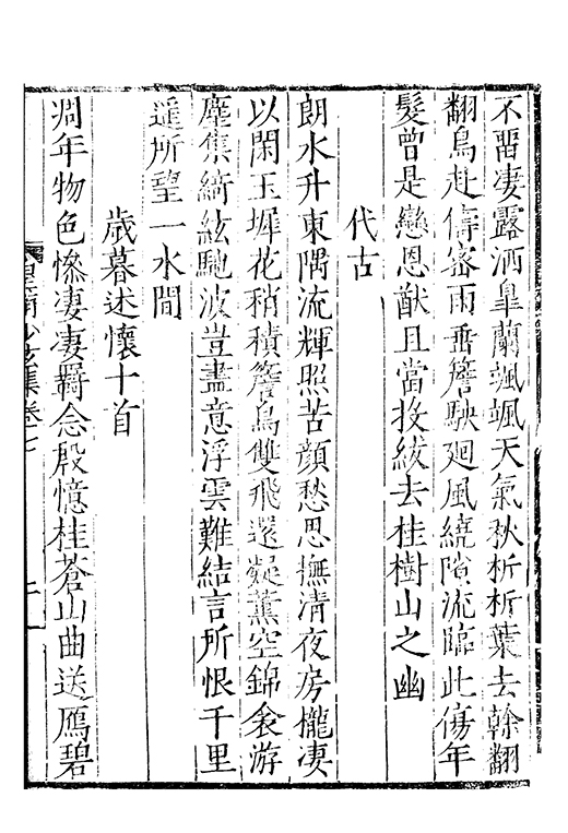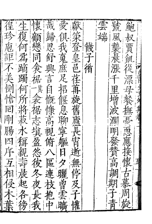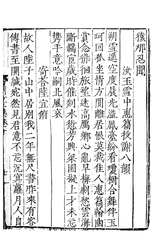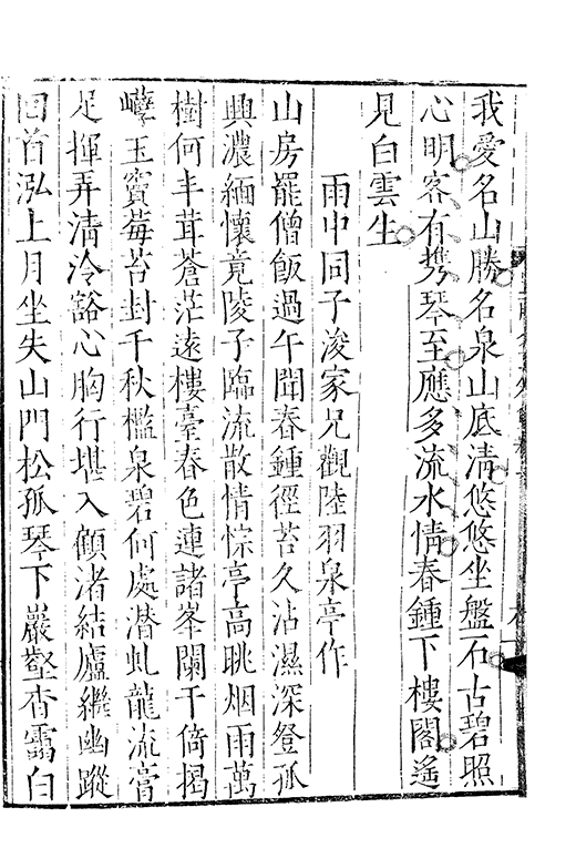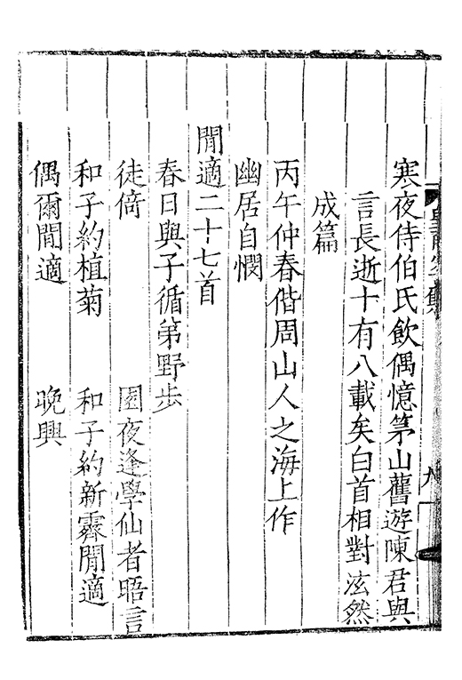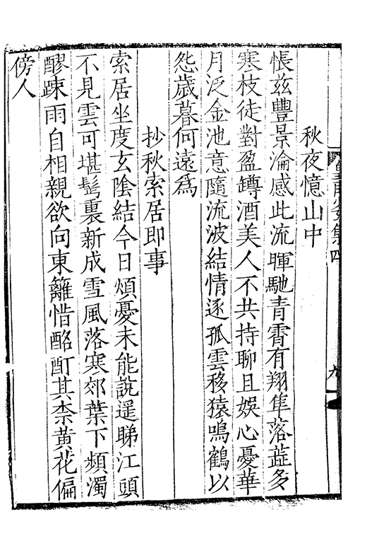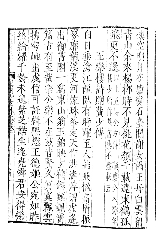 未有知者及既蒙嘉運矯迹崇賢稍與時軰相逐然終非其好盖自居先大夫憂巳盡詘時品而獨持上躅矣夫精于義者不繫乎物知所止者不同于流而彼竊小知以附閎議其奈之何今試舉其一二如雪意煩辭髪江流倩浣膓如啣魚上水鳥驚燕落橋花類皆少陵之靡妙雖集多不載猶可別傳兄嘗同為秋讌寒夜之作許與