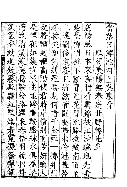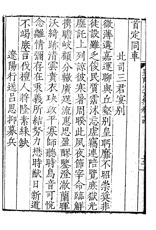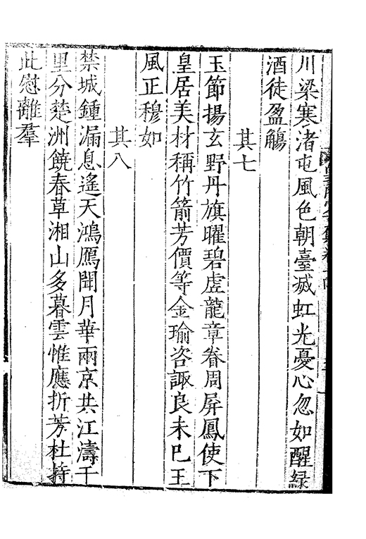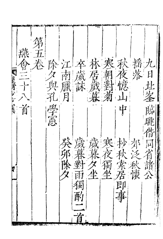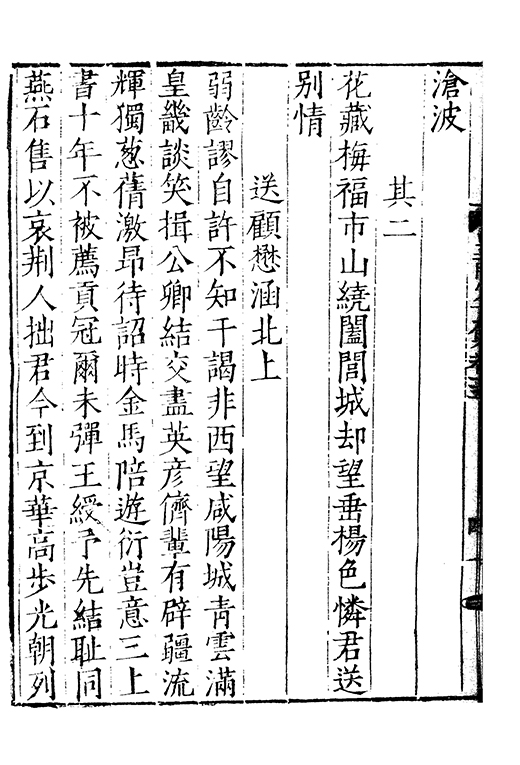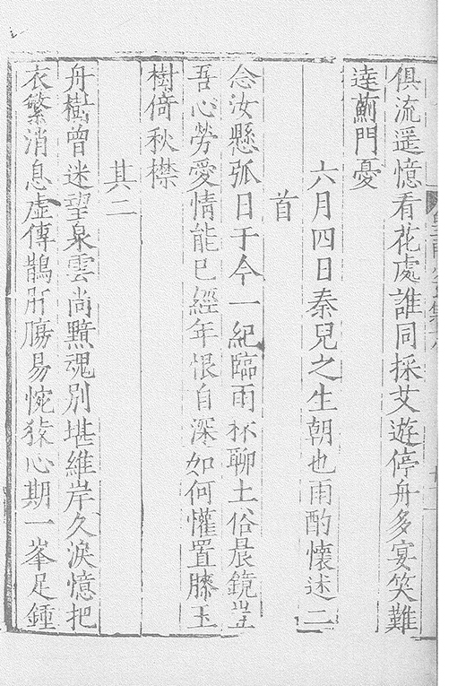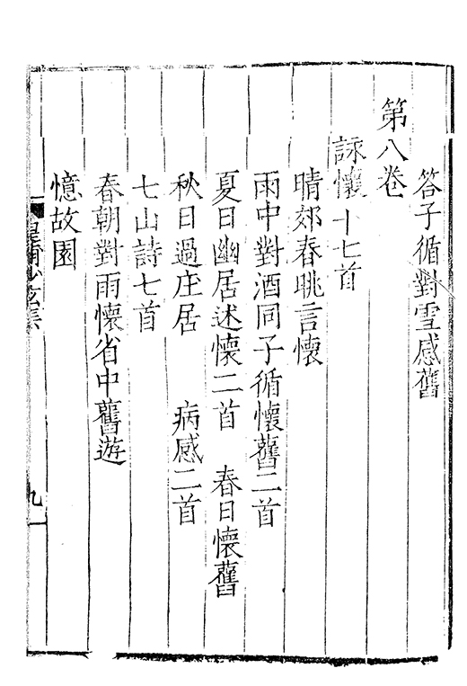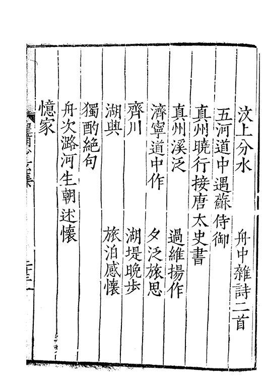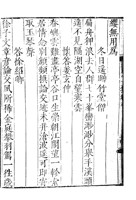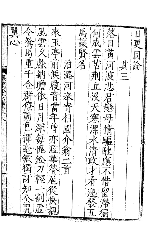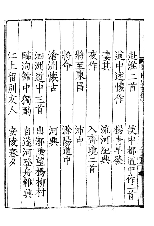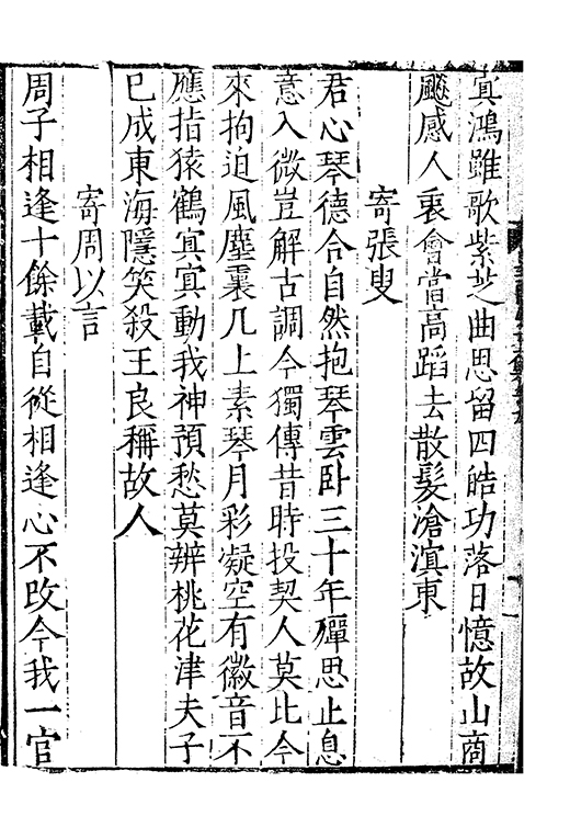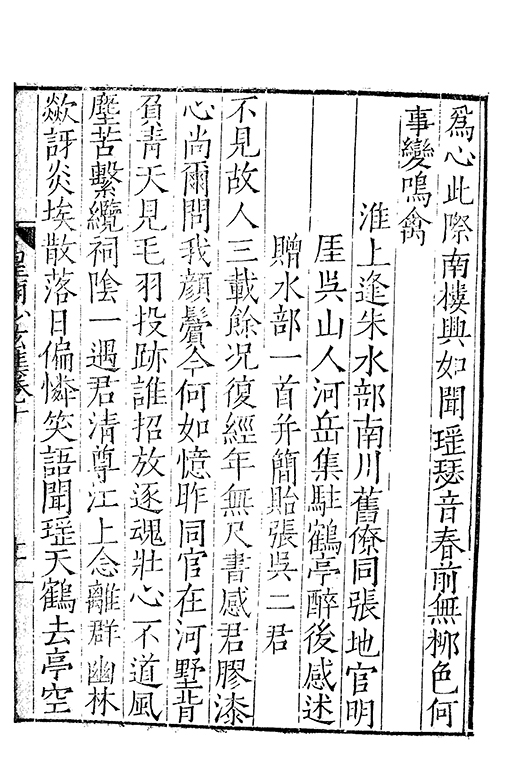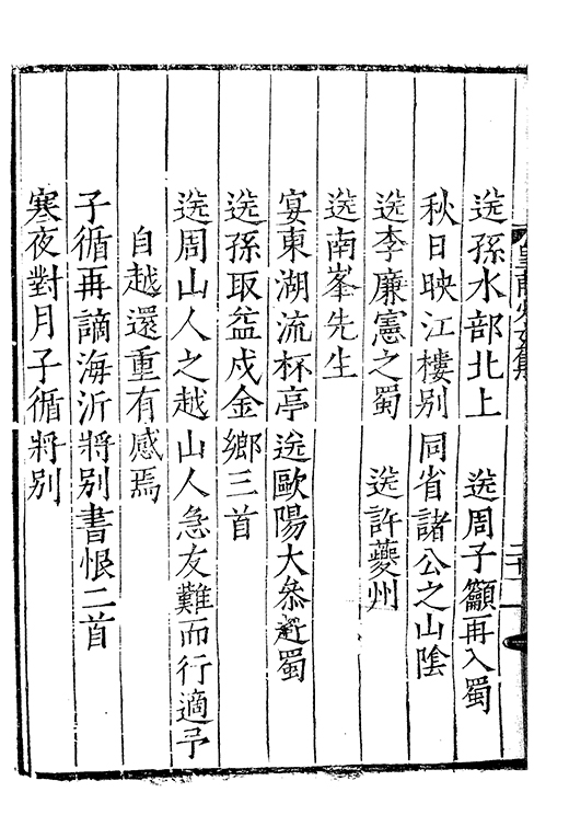 未有知者及既蒙嘉運矯迹崇賢稍與時軰相逐然終非其好盖自居先大夫憂巳盡詘時品而獨持上躅矣夫精于義者不繫乎物知所止者不同于流而彼竊小知以附閎議其奈之何今試舉其一二如雪意煩辭髪江流倩浣膓如啣魚上水鳥驚燕落橋花類皆少陵之靡妙雖集多不載猶可別傳兄嘗同為秋讌寒夜之作許與