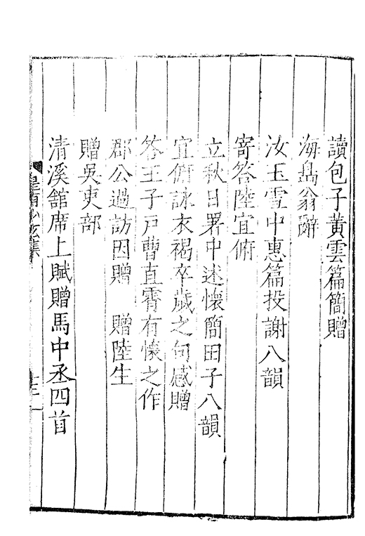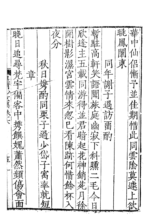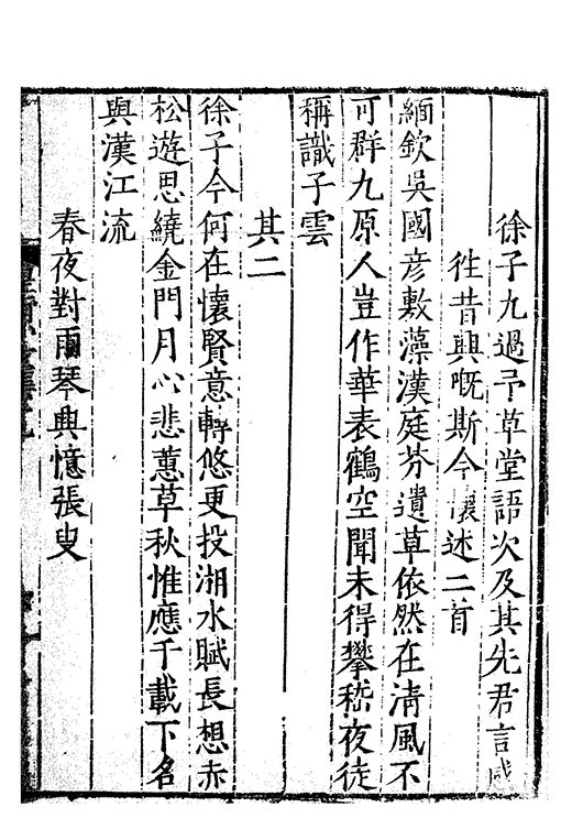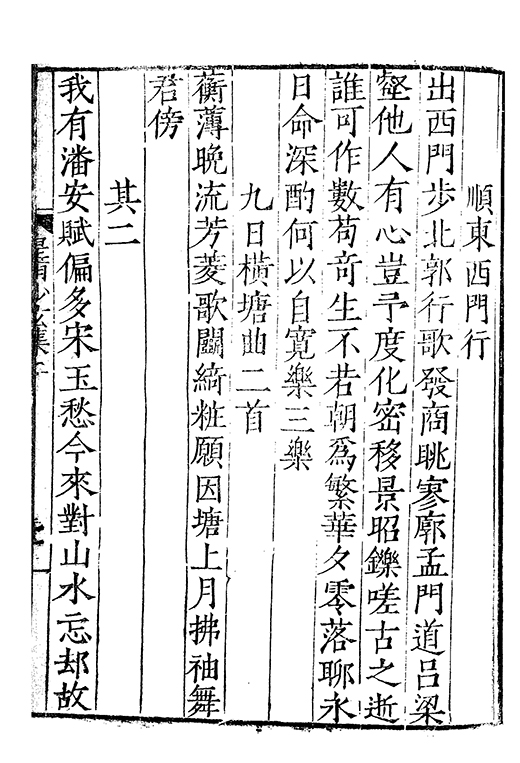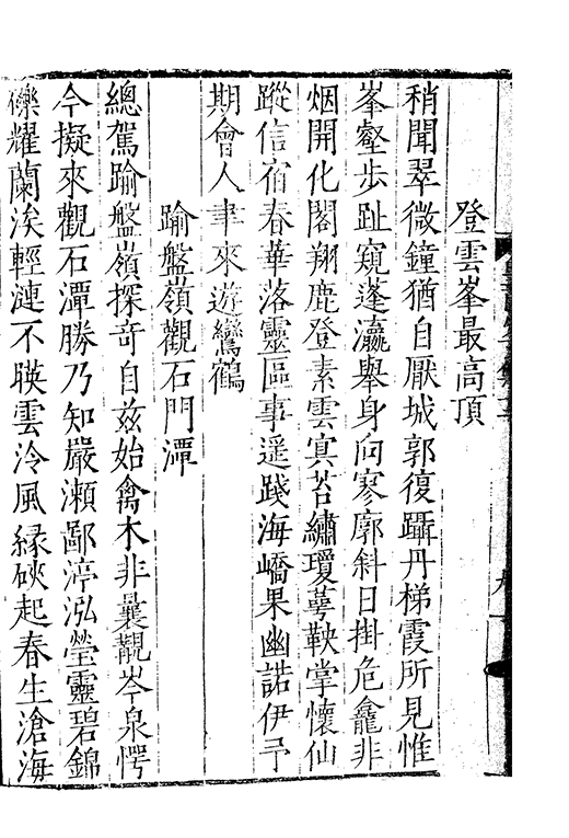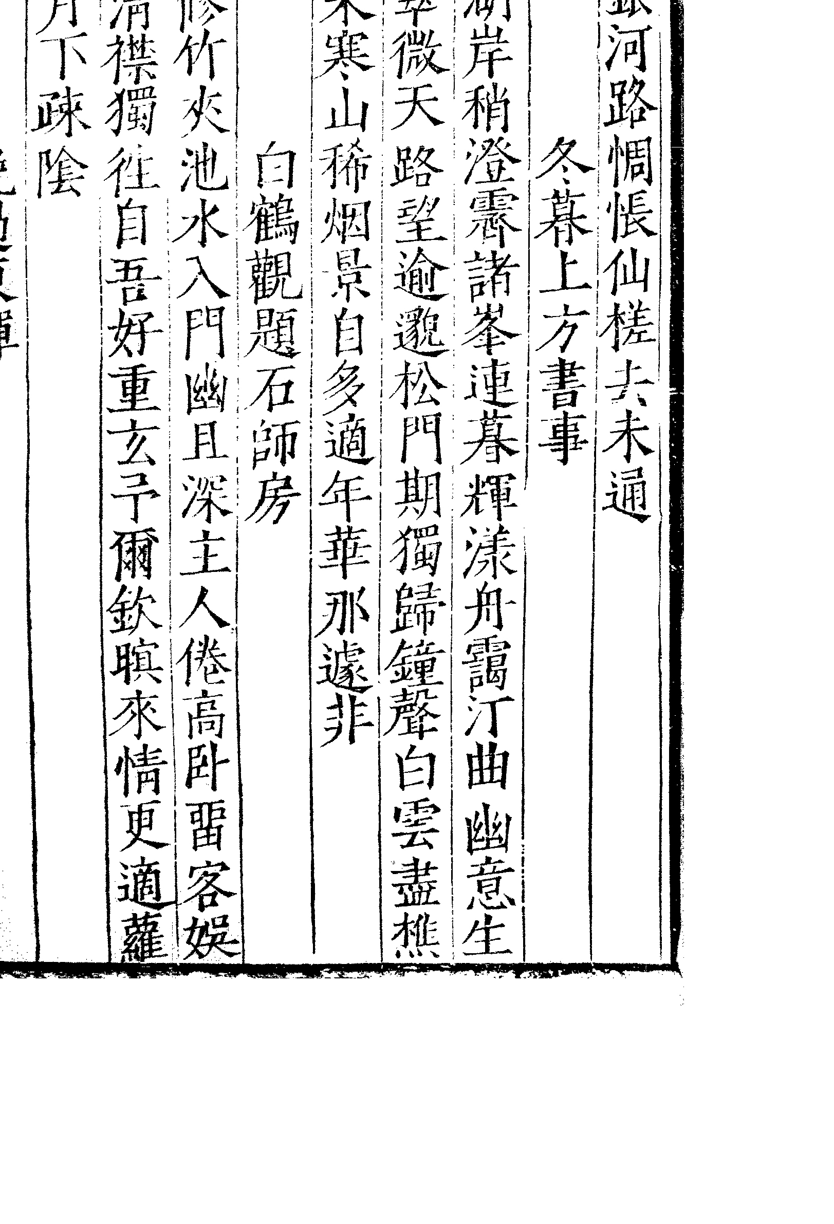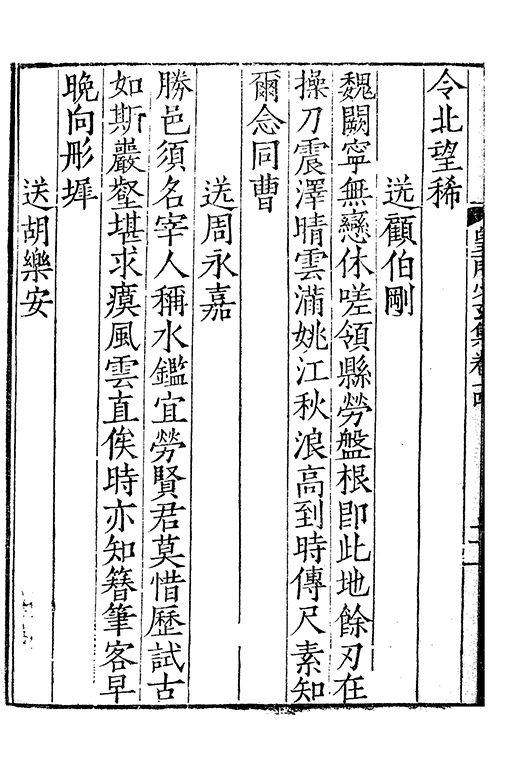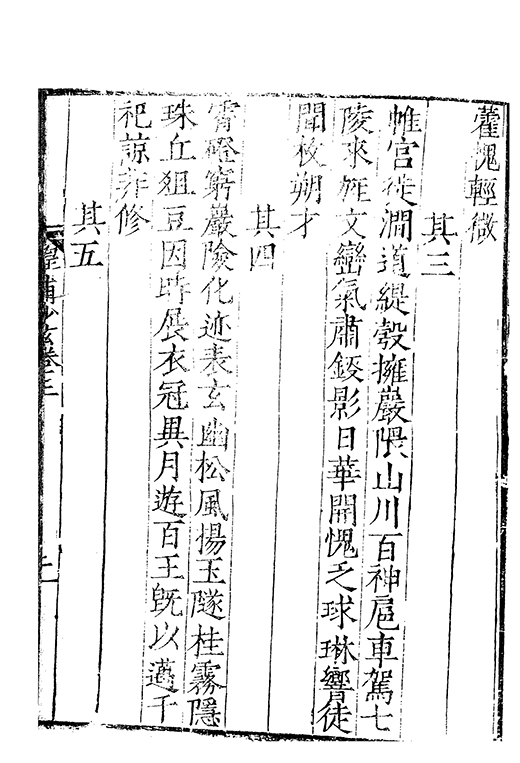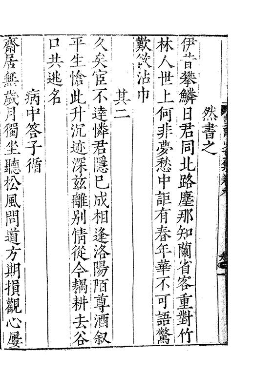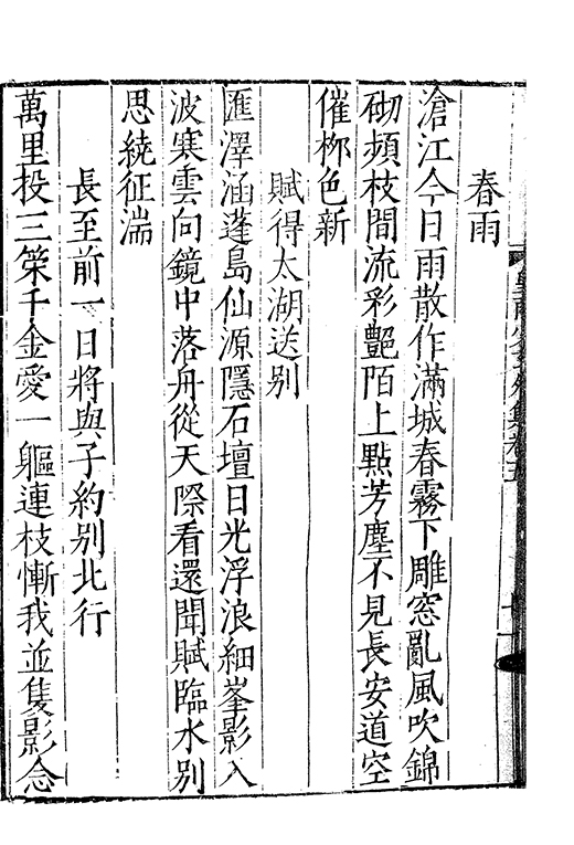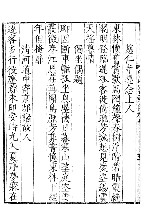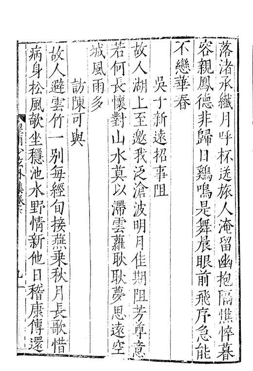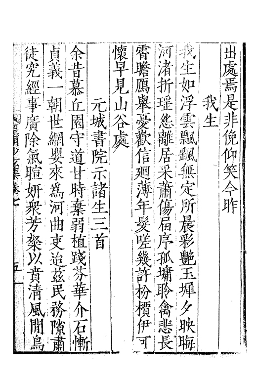 未有知者及既蒙嘉運矯迹崇賢稍與時軰相逐然終非其好盖自居先大夫憂巳盡詘時品而獨持上躅矣夫精于義者不繫乎物知所止者不同于流而彼竊小知以附閎議其奈之何今試舉其一二如雪意煩辭髪江流倩浣膓如啣魚上水鳥驚燕落橋花類皆少陵之靡妙雖集多不載猶可別傳兄嘗同為秋讌寒夜之作許與