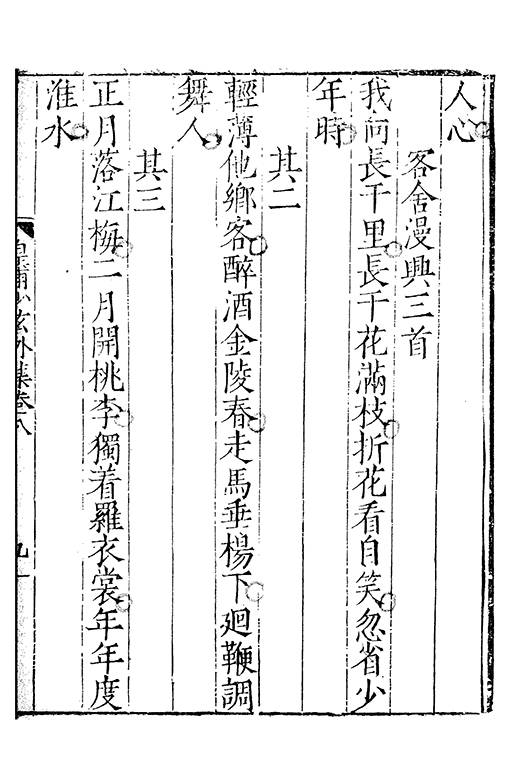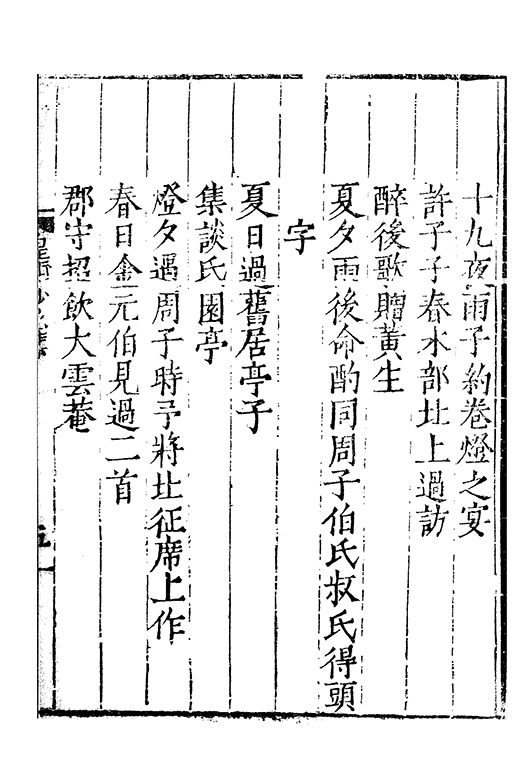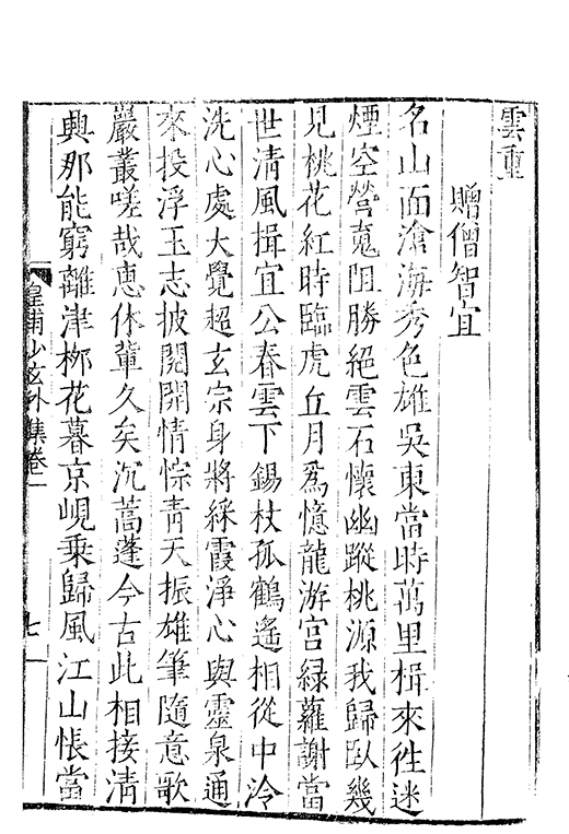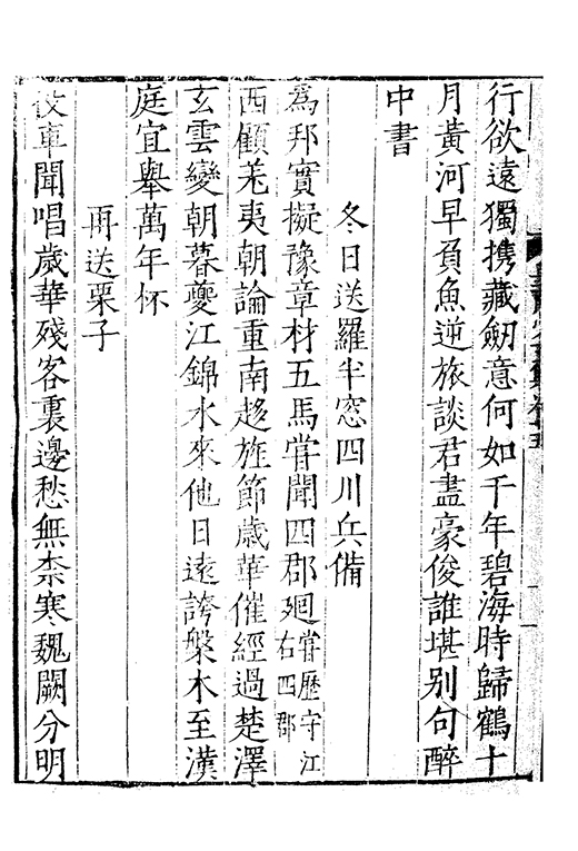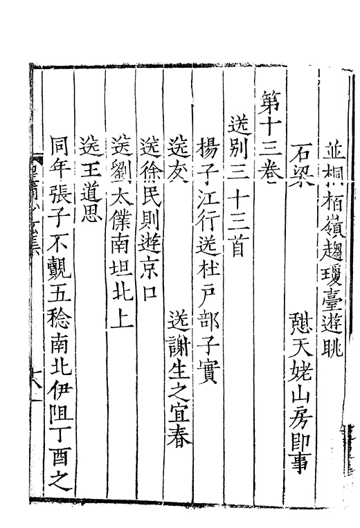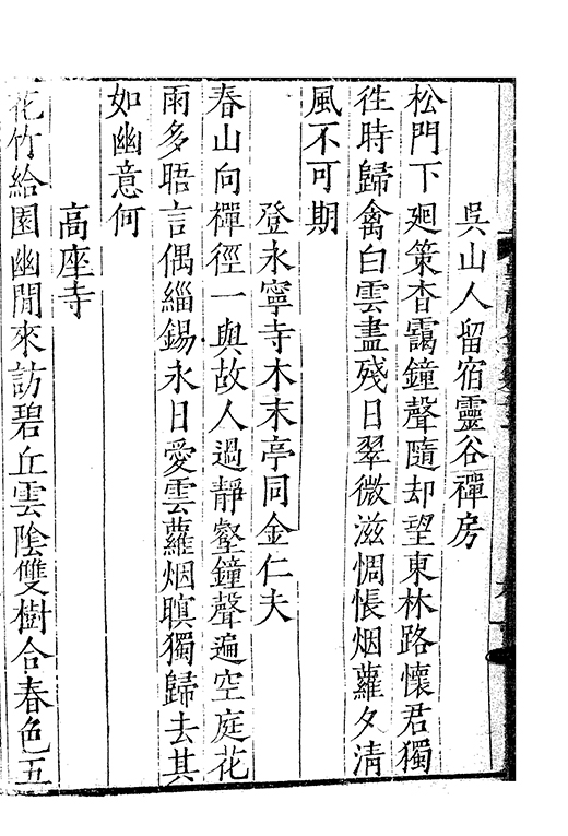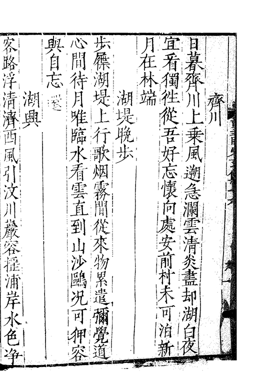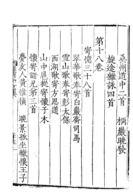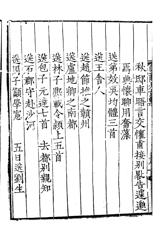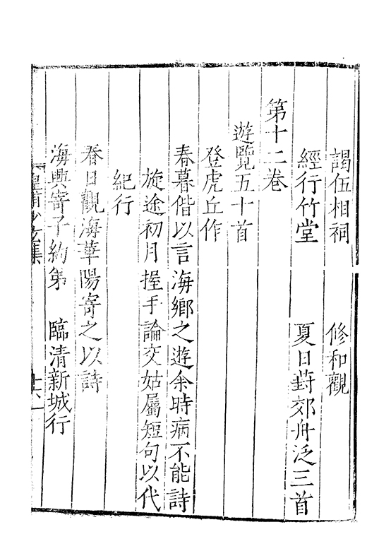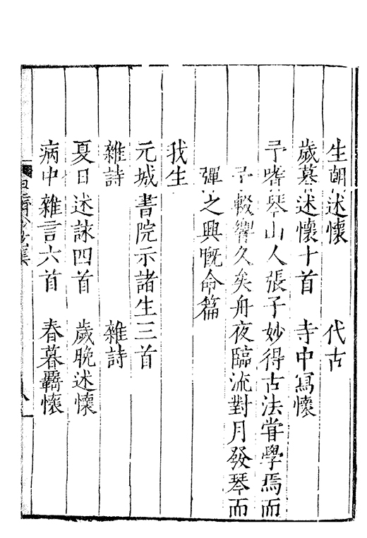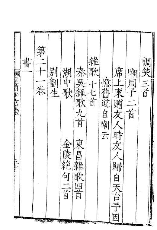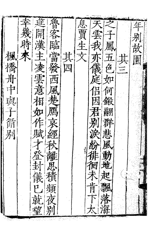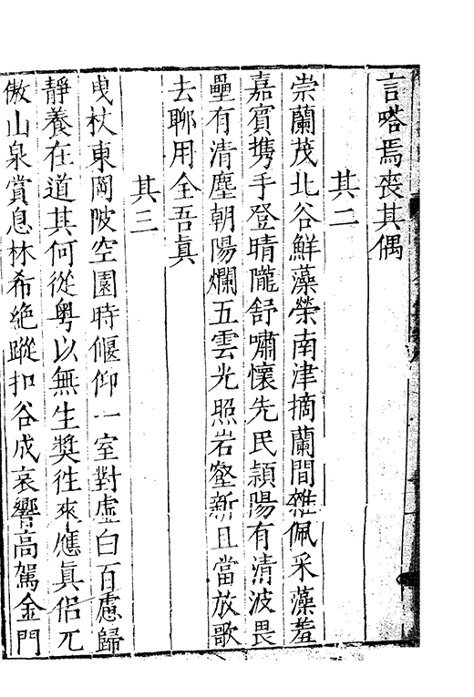 未有知者及既蒙嘉運矯迹崇賢稍與時軰相逐然終非其好盖自居先大夫憂巳盡詘時品而獨持上躅矣夫精于義者不繫乎物知所止者不同于流而彼竊小知以附閎議其奈之何今試舉其一二如雪意煩辭髪江流倩浣膓如啣魚上水鳥驚燕落橋花類皆少陵之靡妙雖集多不載猶可別傳兄嘗同為秋讌寒夜之作許與